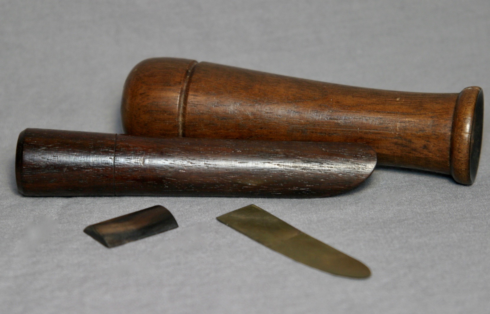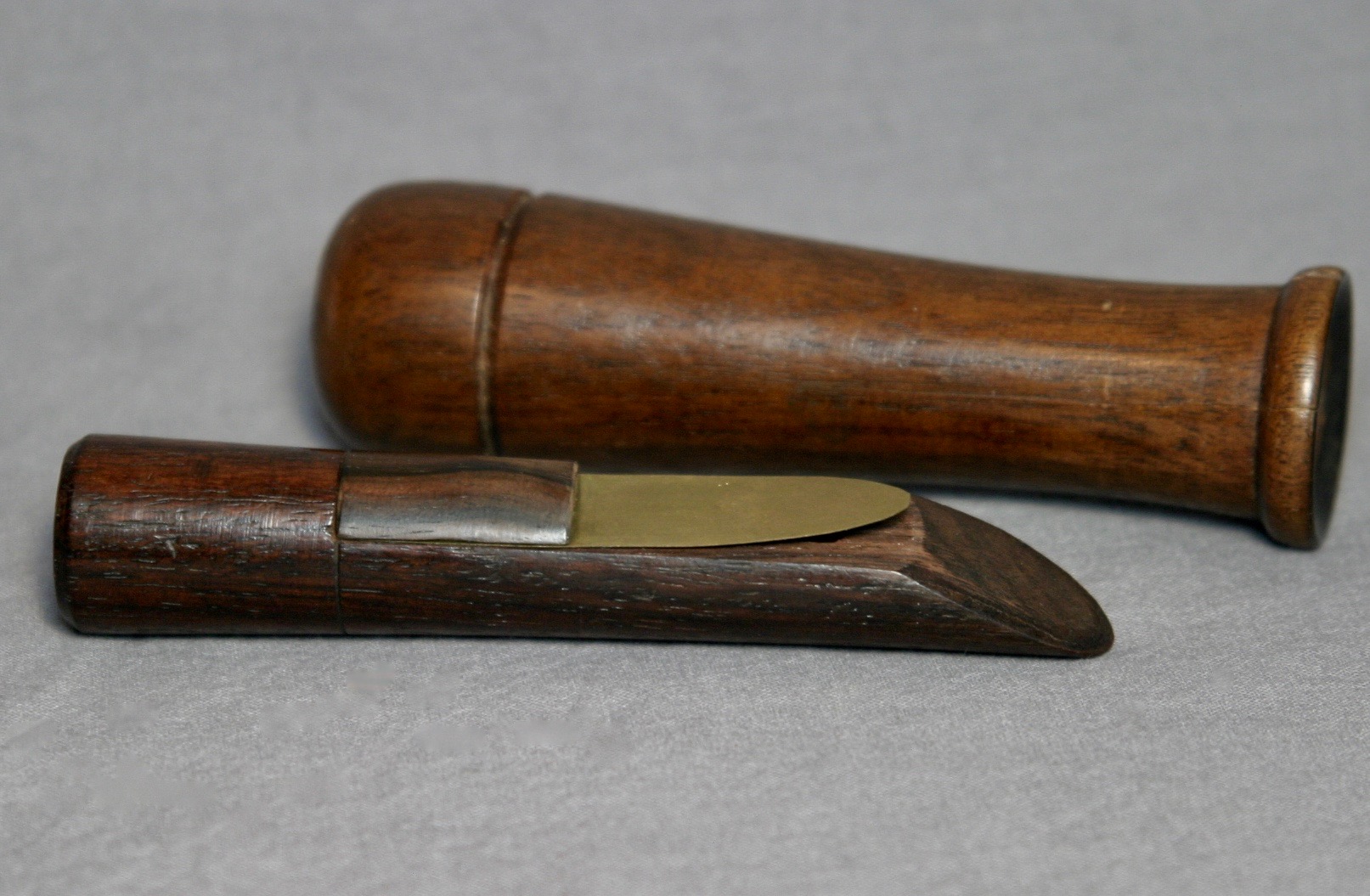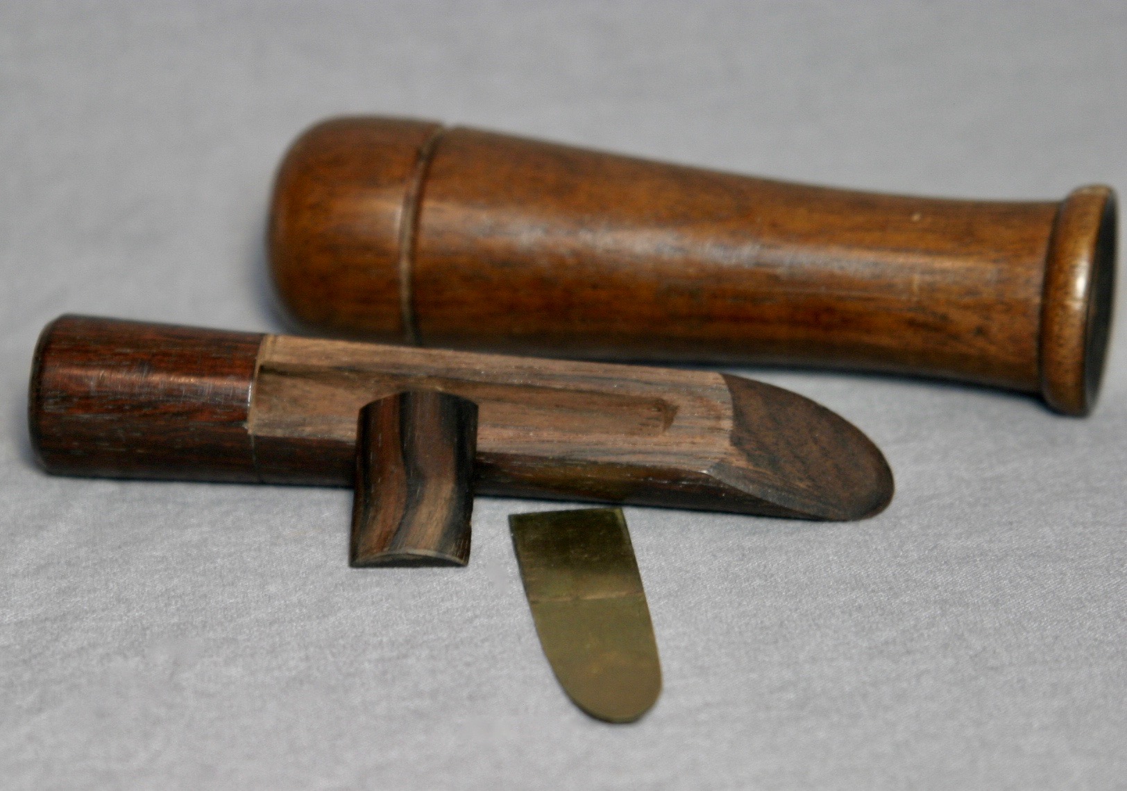 A nice call from Ralph True. The call has a chip at the base and season cracks along the barrel.
