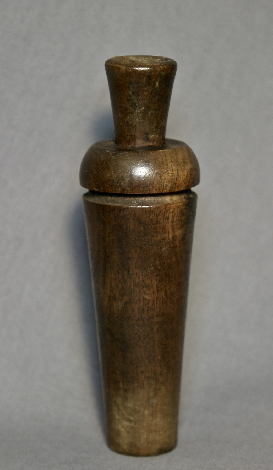 This is a great Arkansas style call from A.M. Bowles. The call was turned from walnut and has a nice patina.