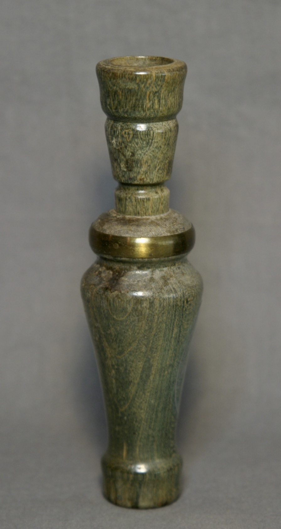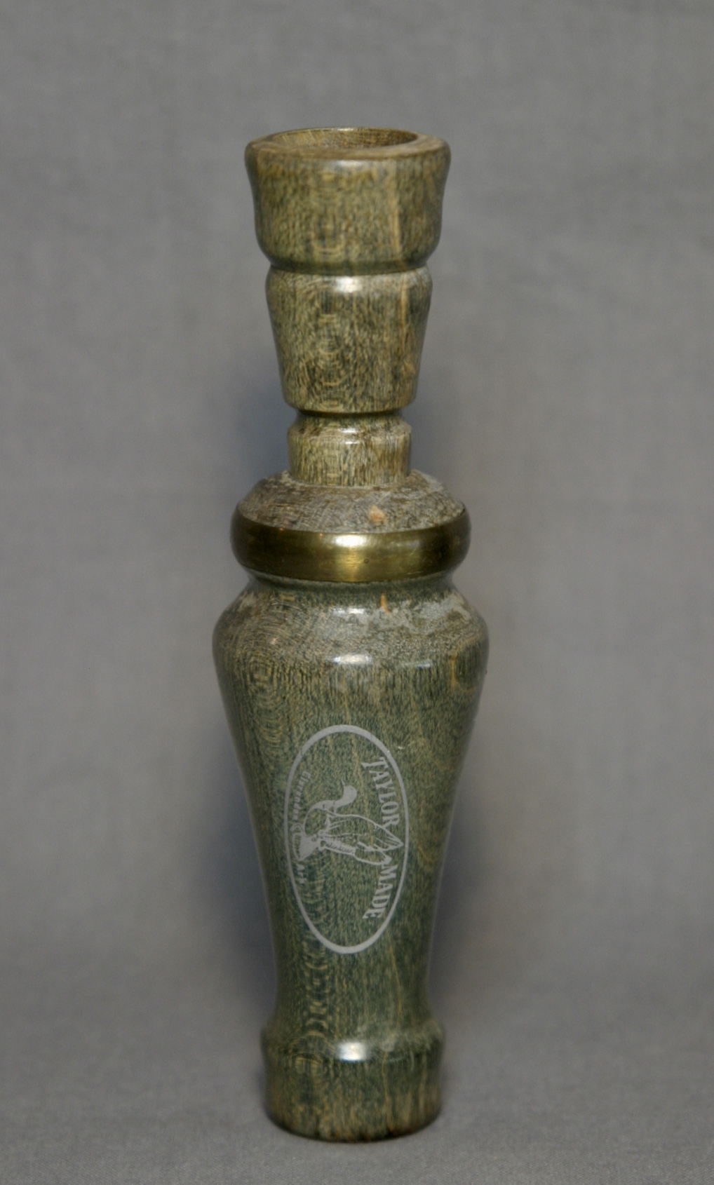 This is a beautiful call from Alvin Taylor of Taylor Made. The call has been stained green, then lacquered, bringing out the wood’s beautiful grain.
