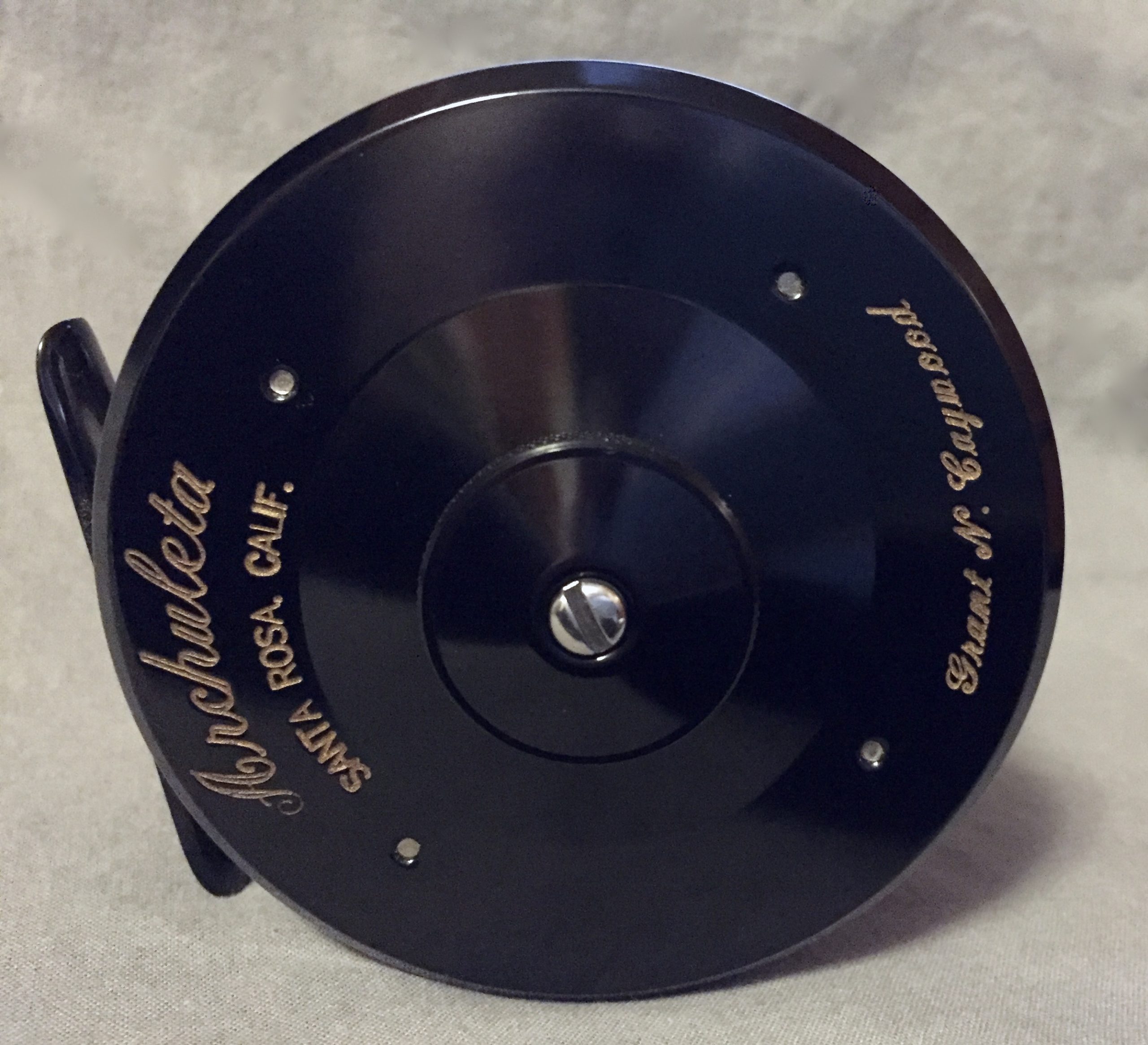 This is excellent salmon reel from Archuleta. The first salmon reel Bill made, made for Grant N. Caywood.