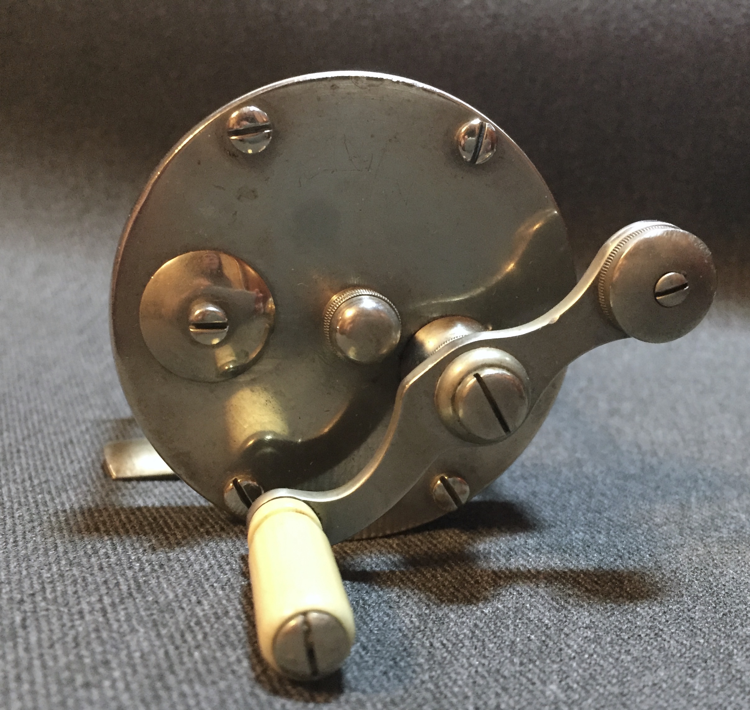 A rare B.F. Meek & Sons Bluegrass reel No 5 with a very smooth clicker. The owner’s initials B.R.B. are engraved into the face.
