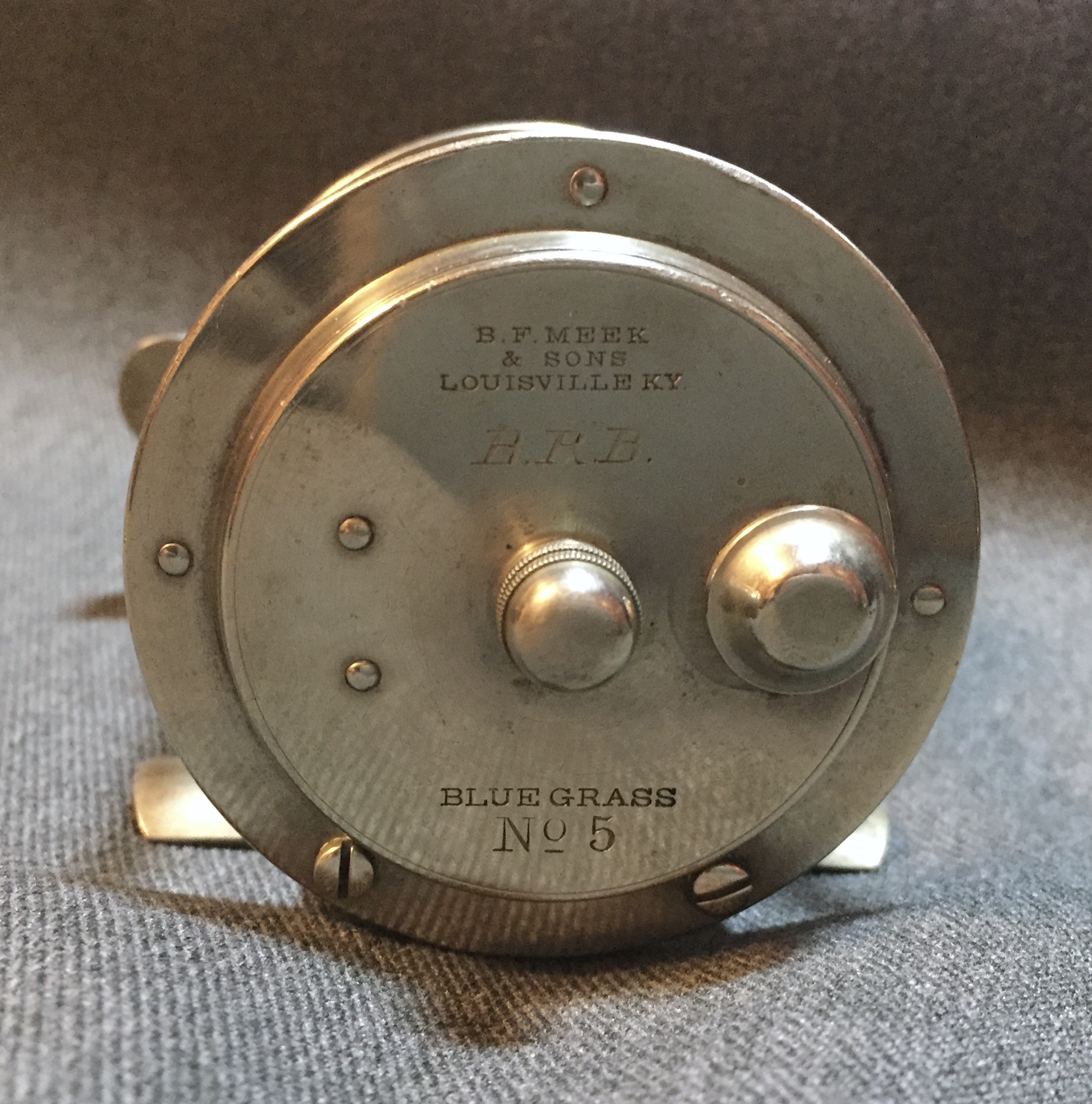 Stamped into back of reel: B.F. Meek & Sons, Louisville KY., (initials) B.R.B., Bluegrass No 5