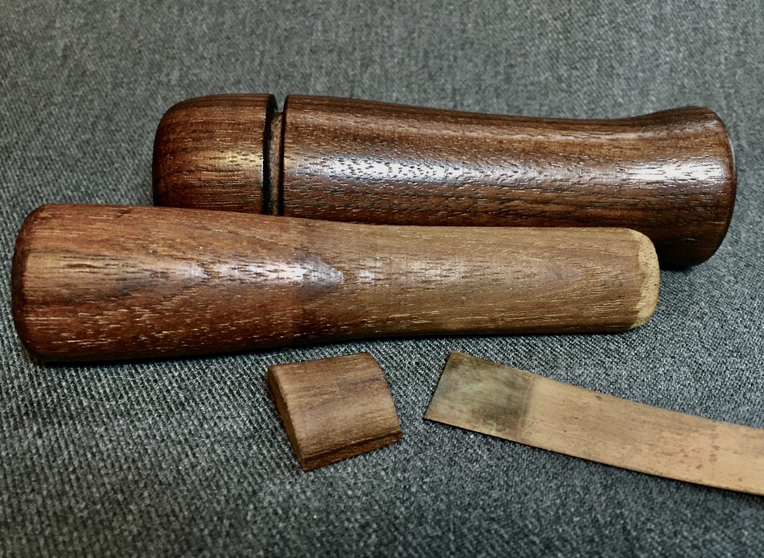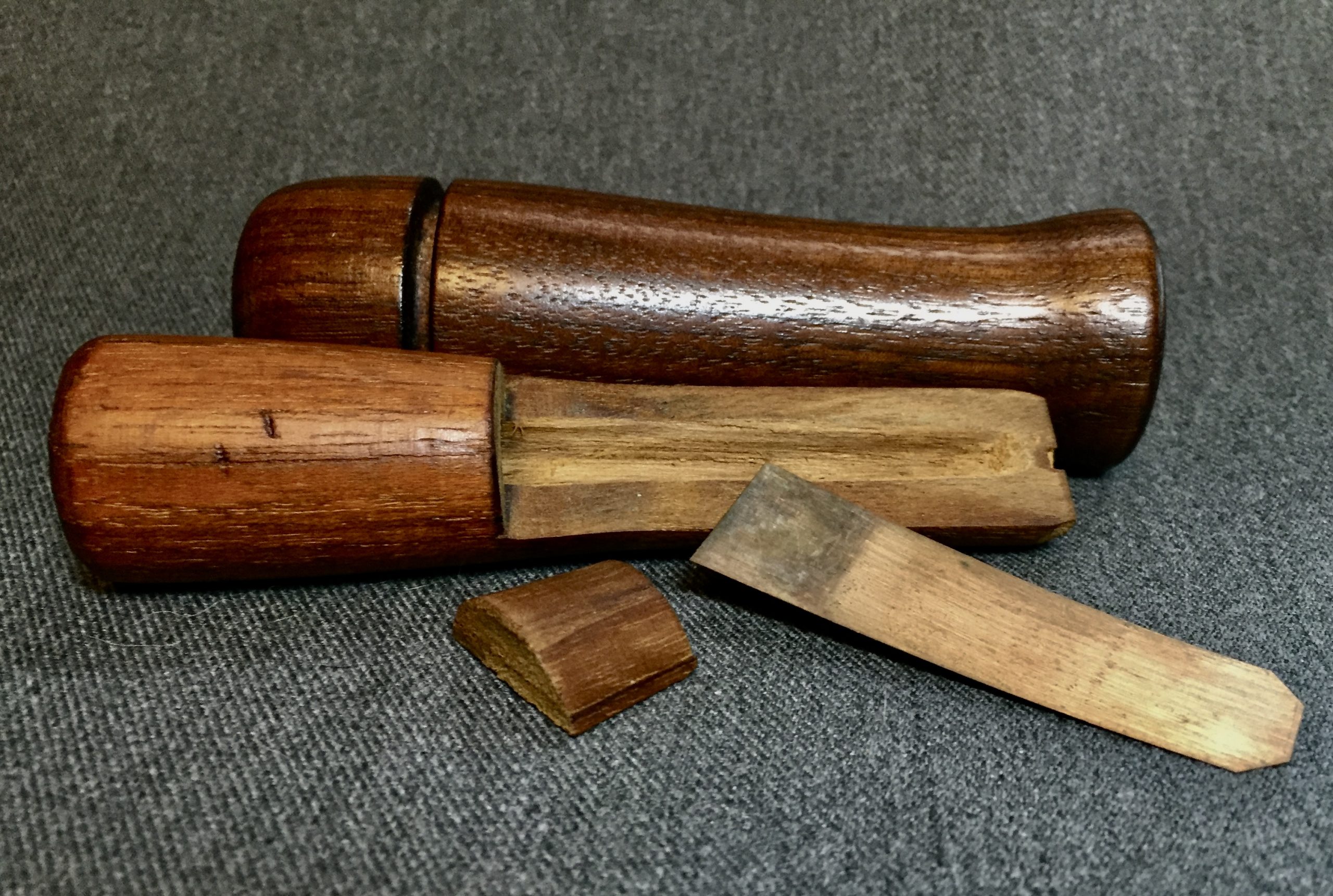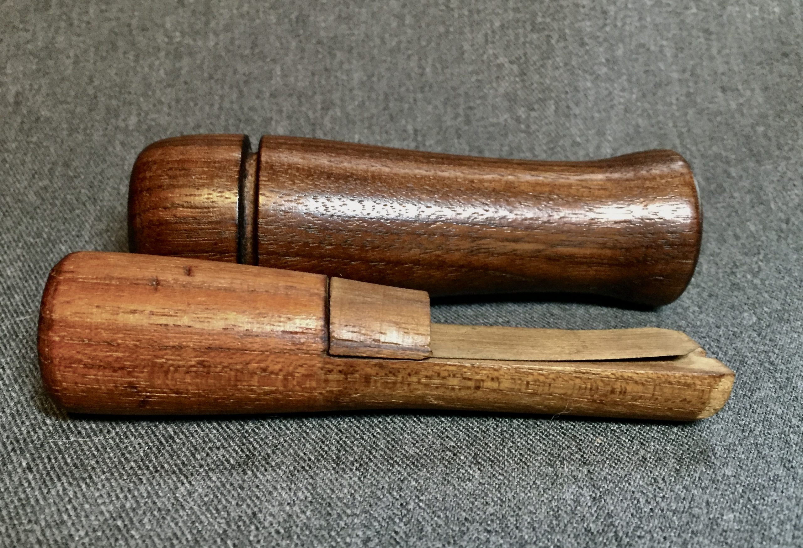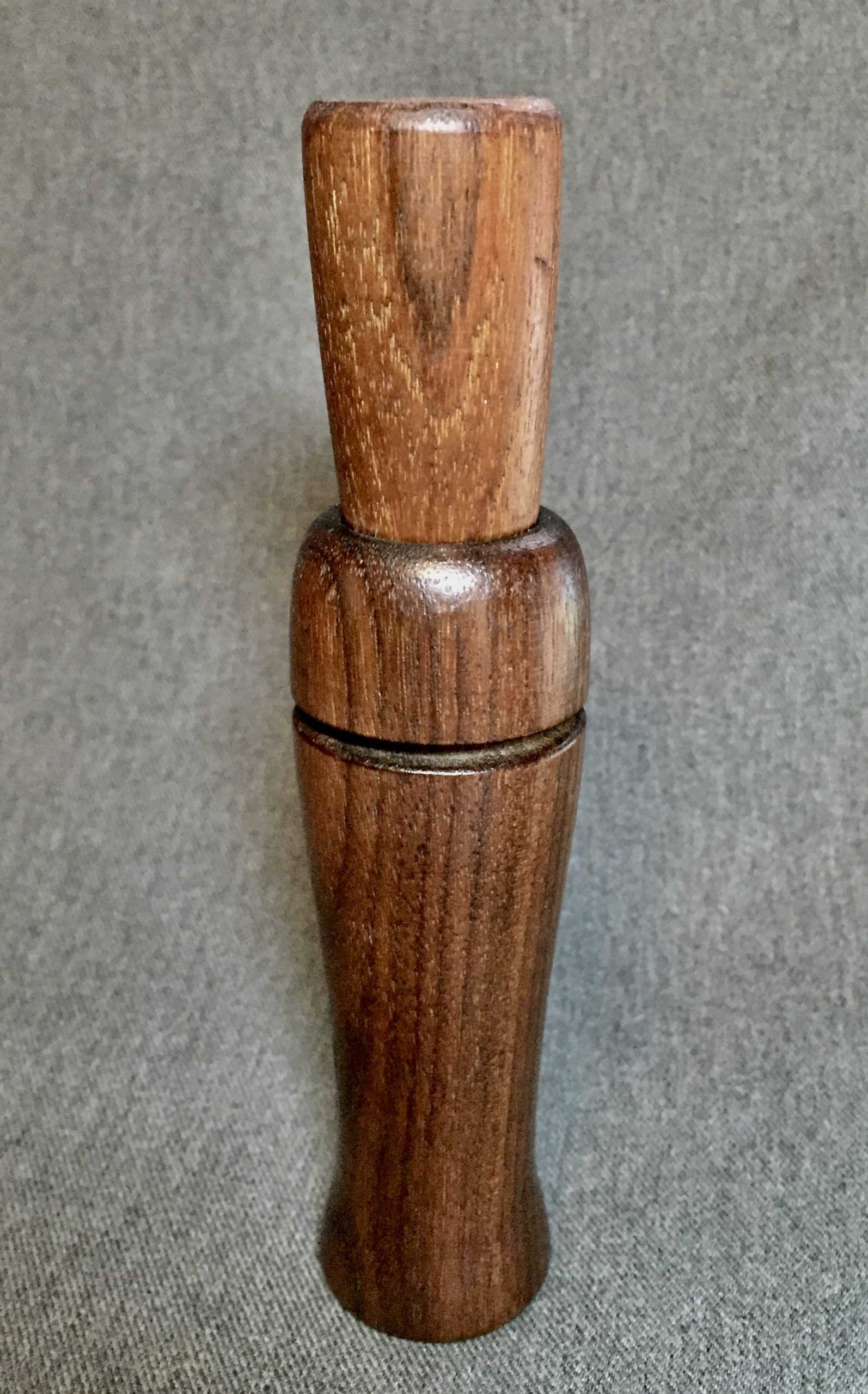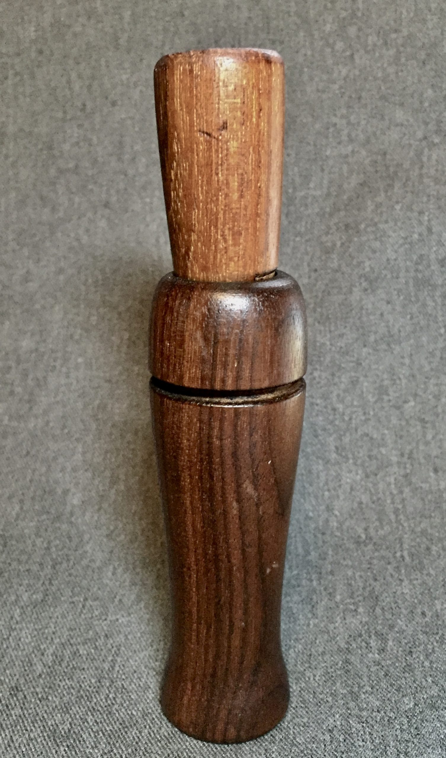 This is a really nice call made by Bill Barnett in the Reelfoot style with a brass reed. It’s a very early call by Barnett from when he still worked with Tom Turpin. It doesn’t have the red tipped wedge block making it very early and rare.