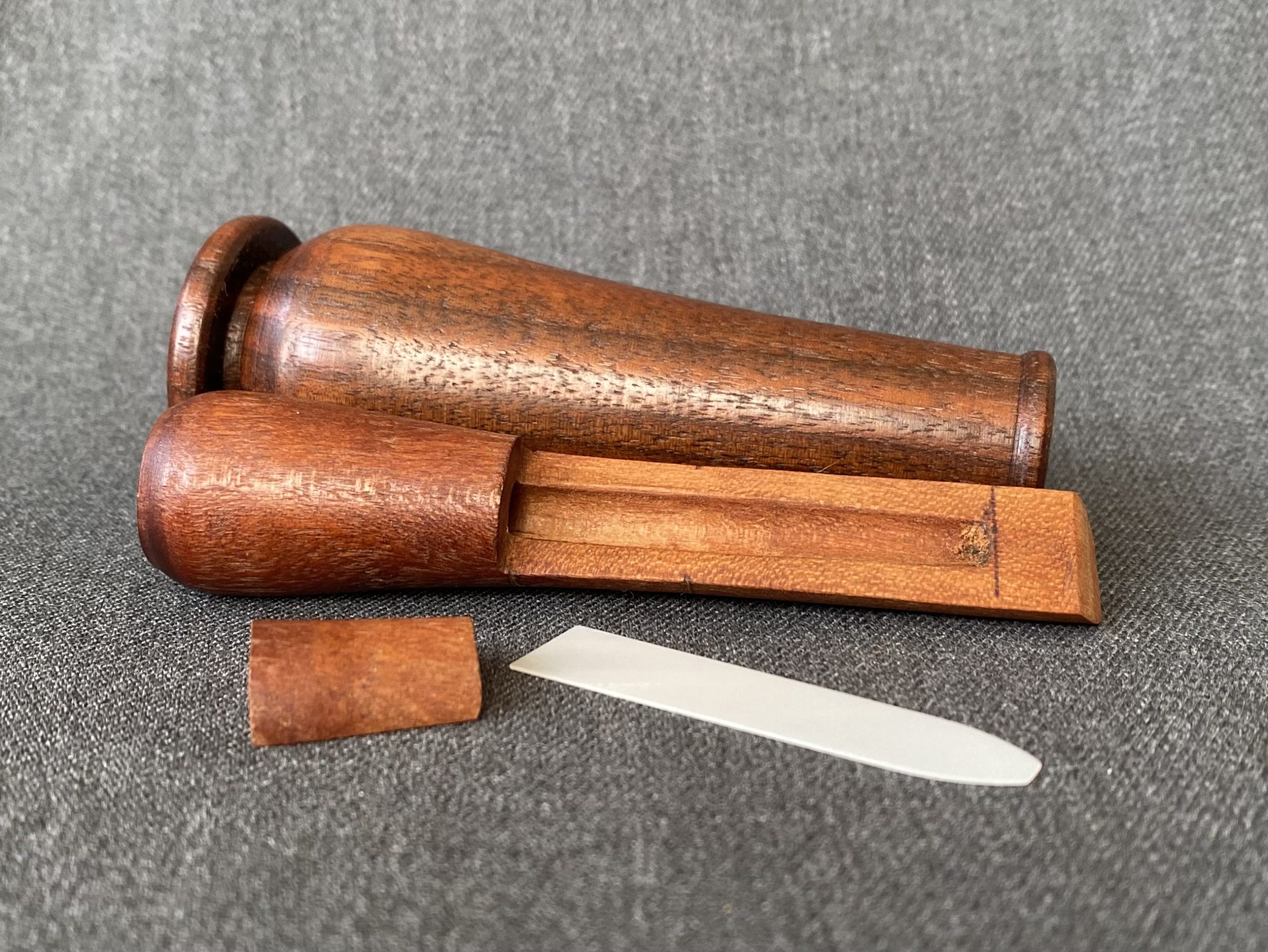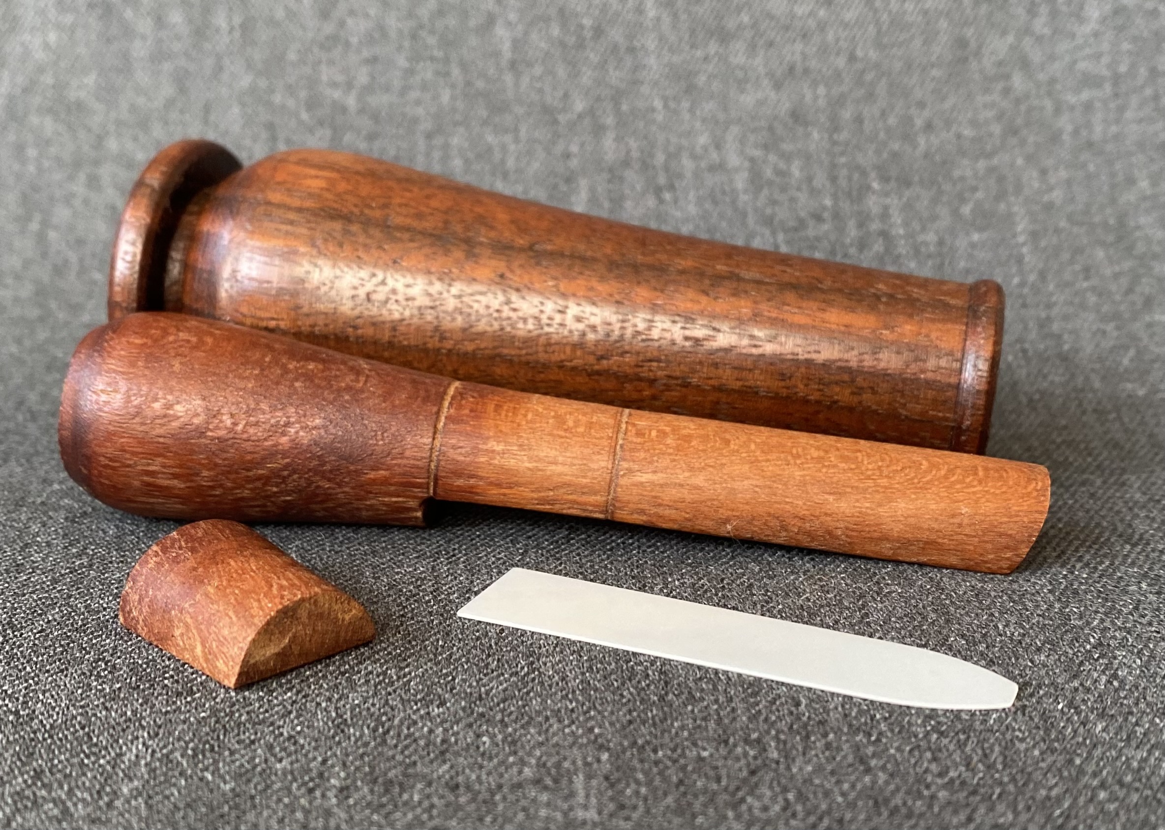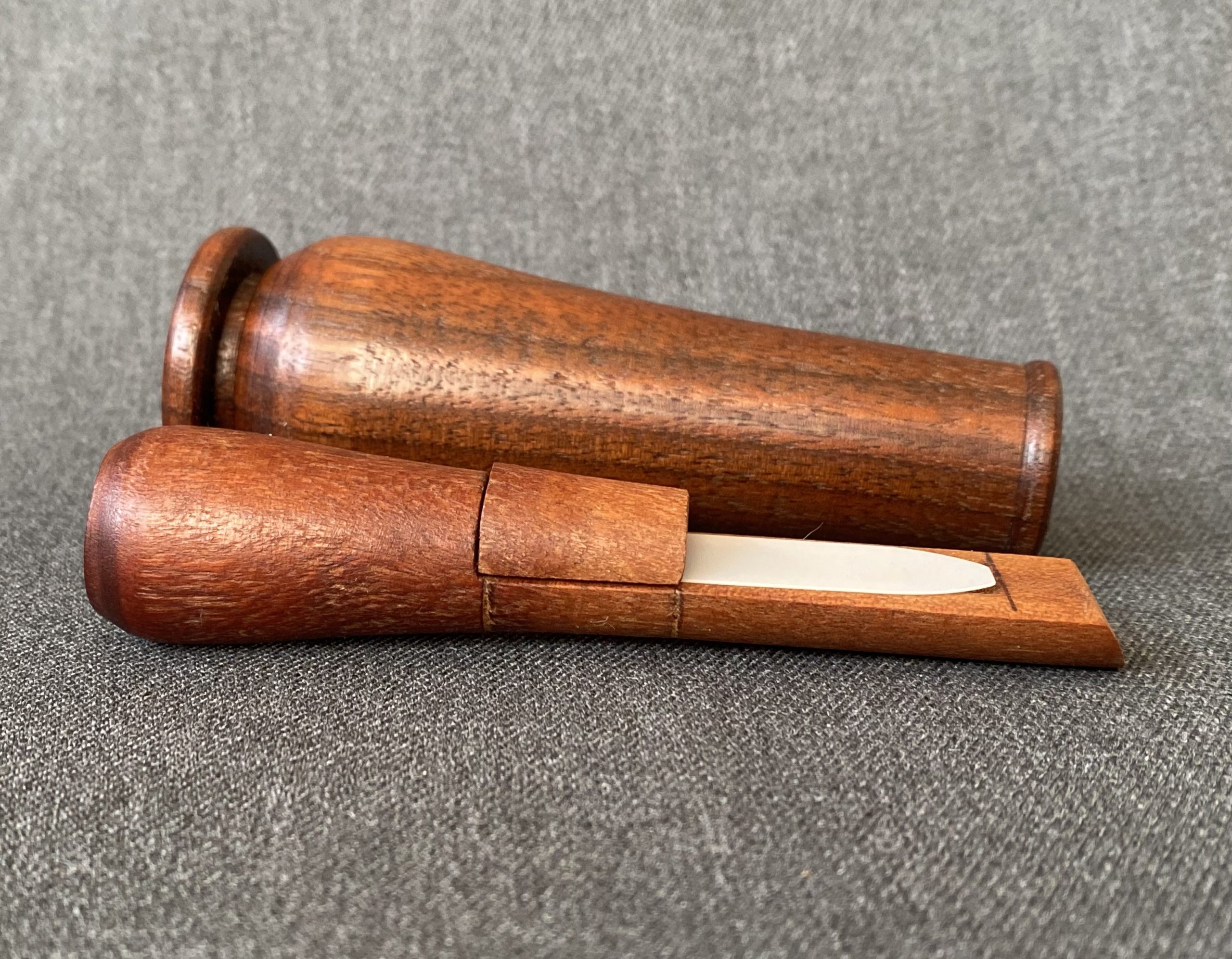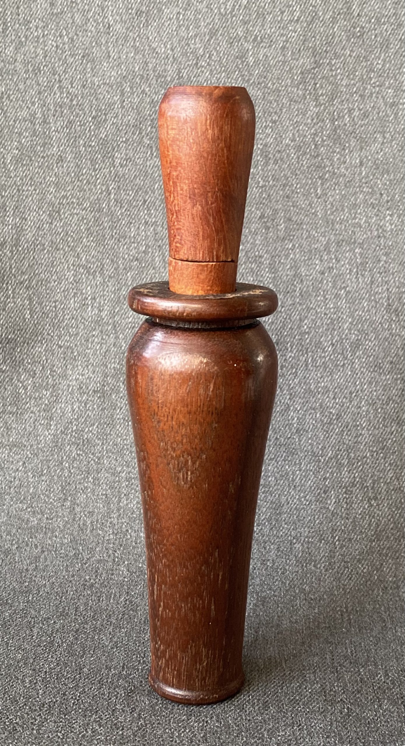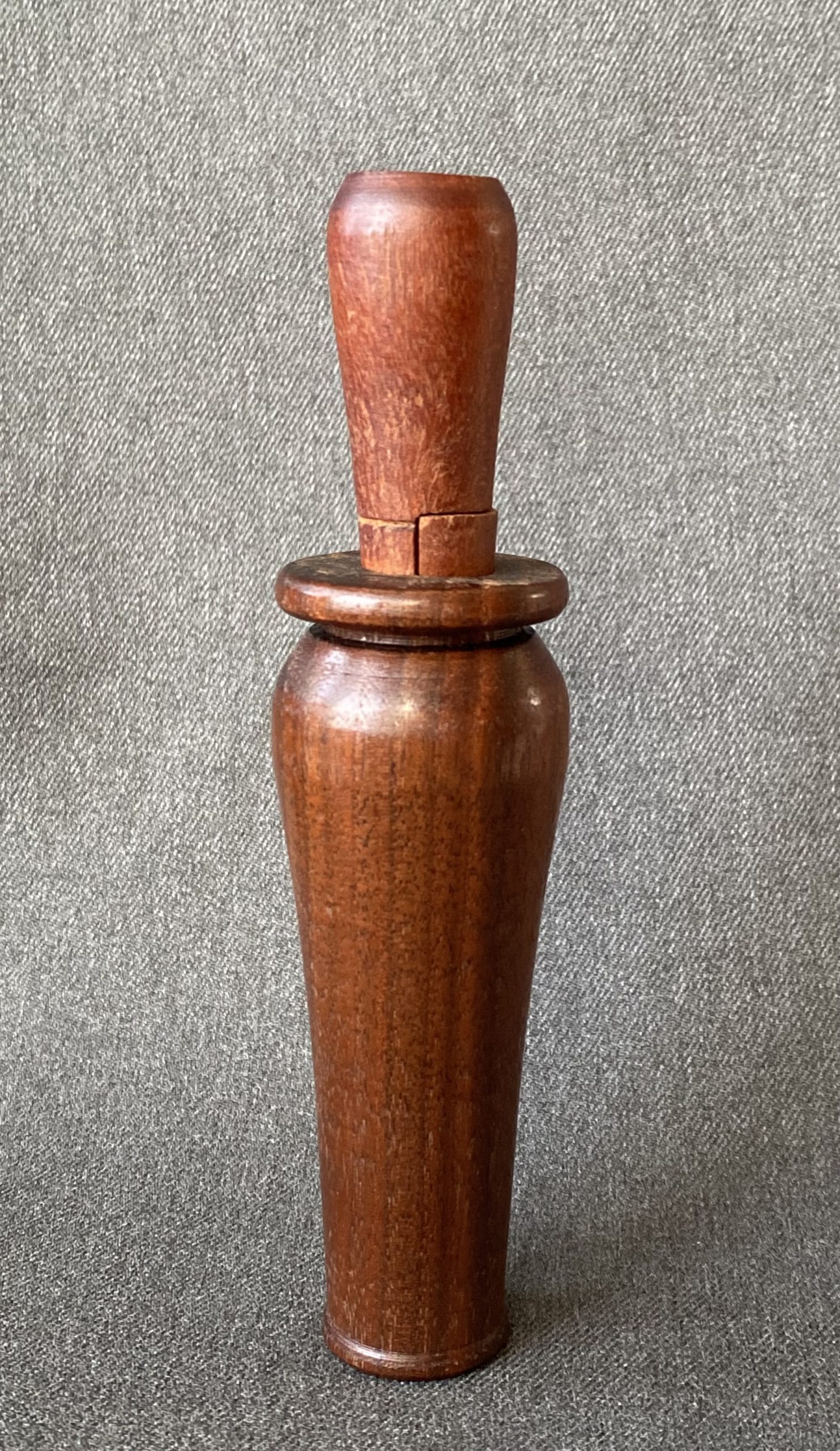 This is a nicely turned call from Weldon Tyree Black. The call is Reelfoot style with a white plastic reed.