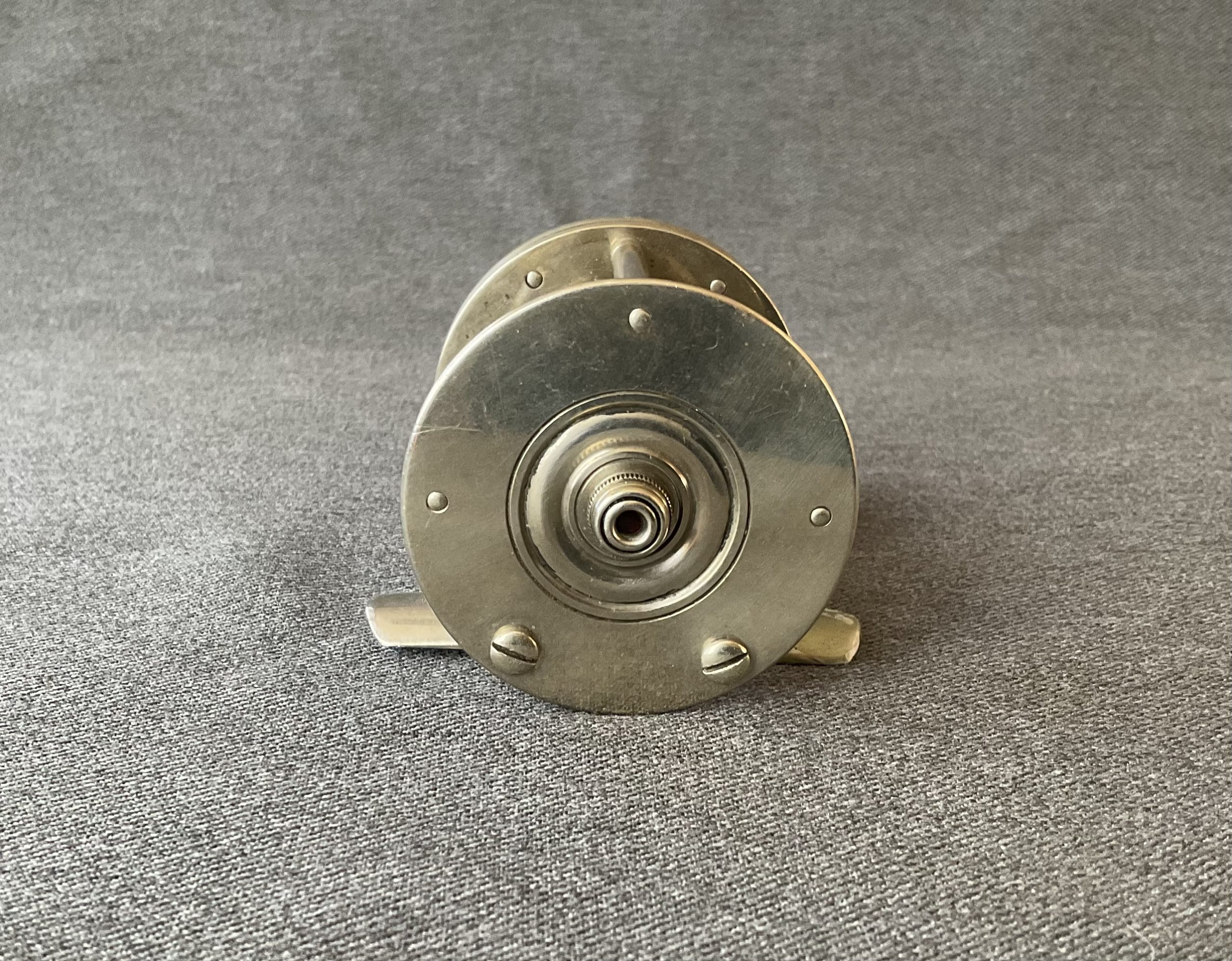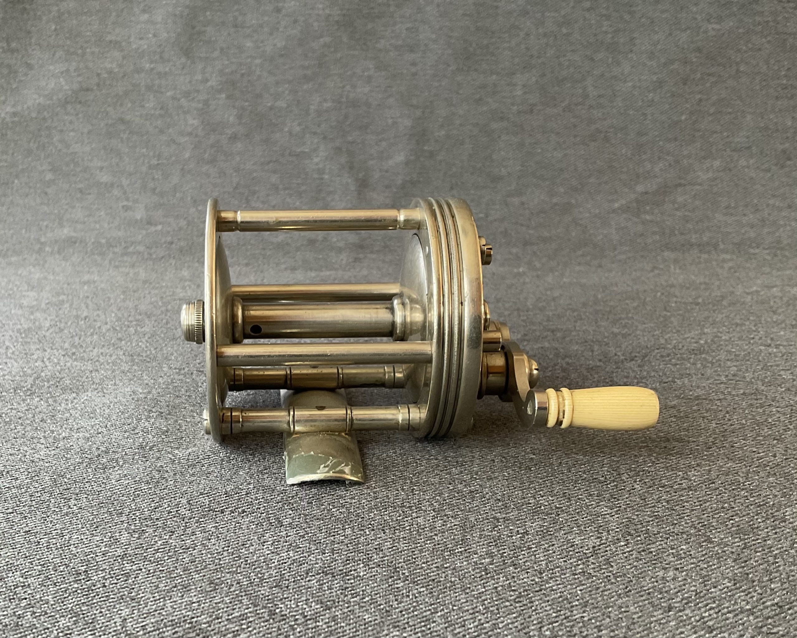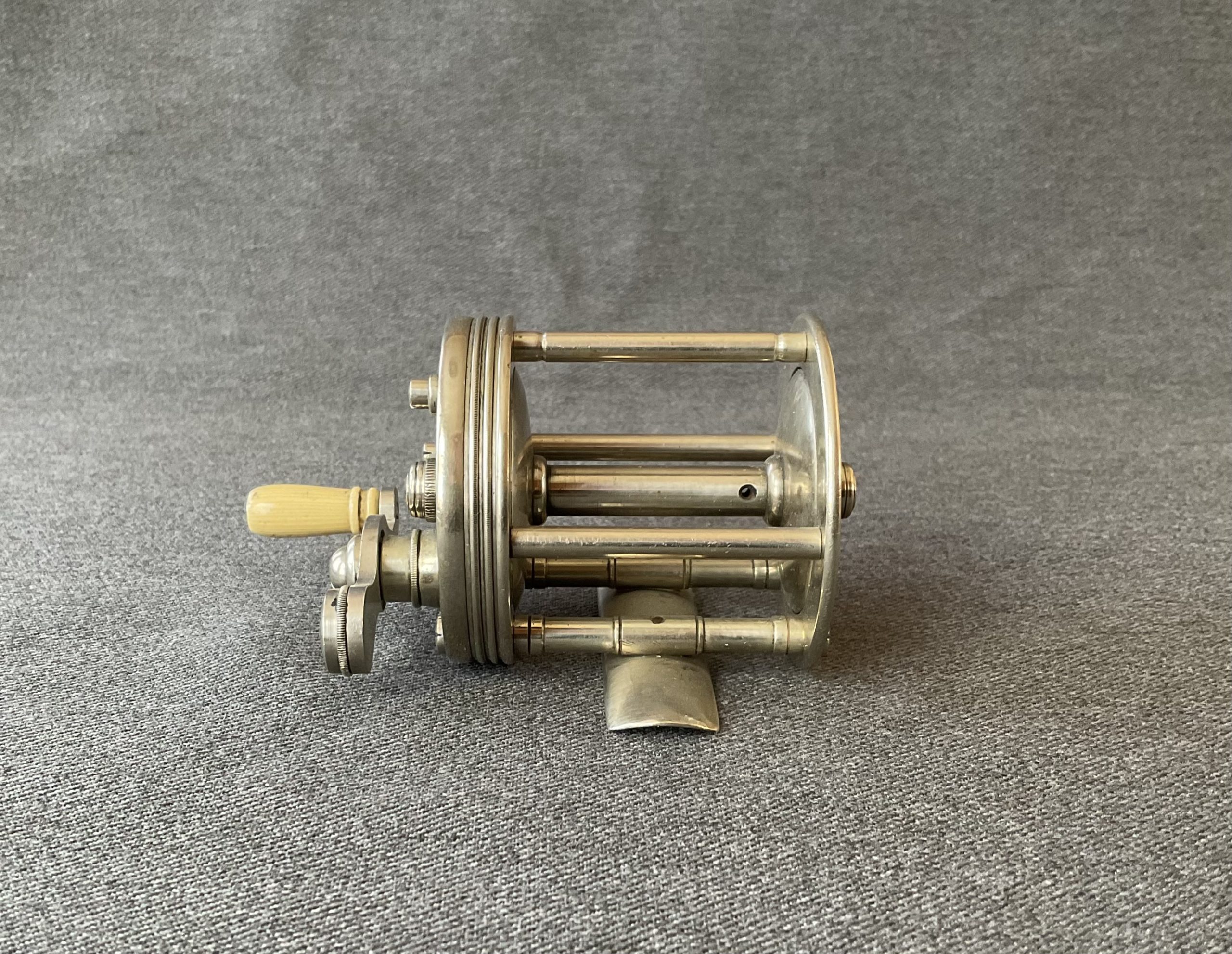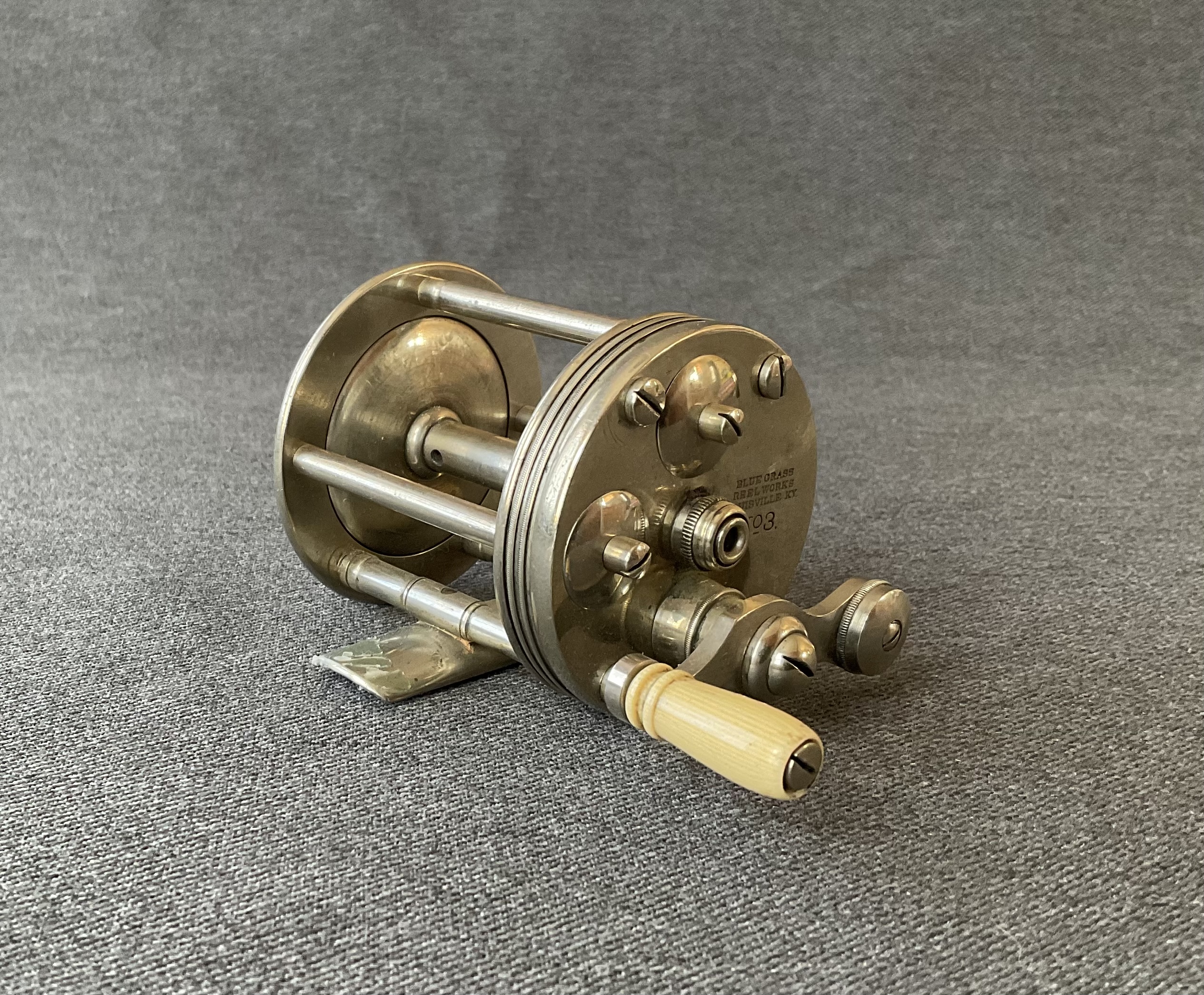 This is a scarce No 3 Blue Grass Reel Works reel. This company was very short lived. The reel has click and drag switches and is in excellent condition.