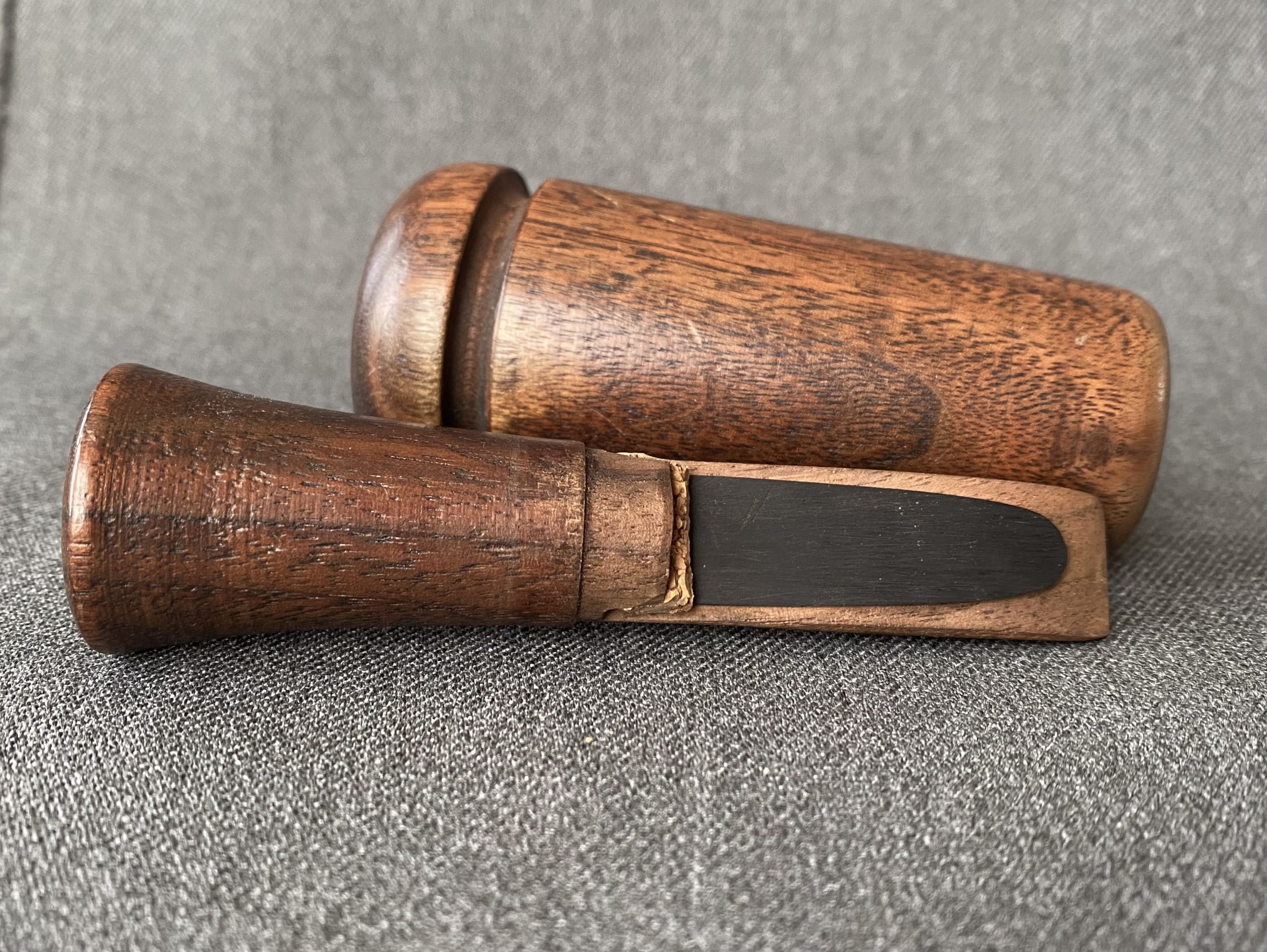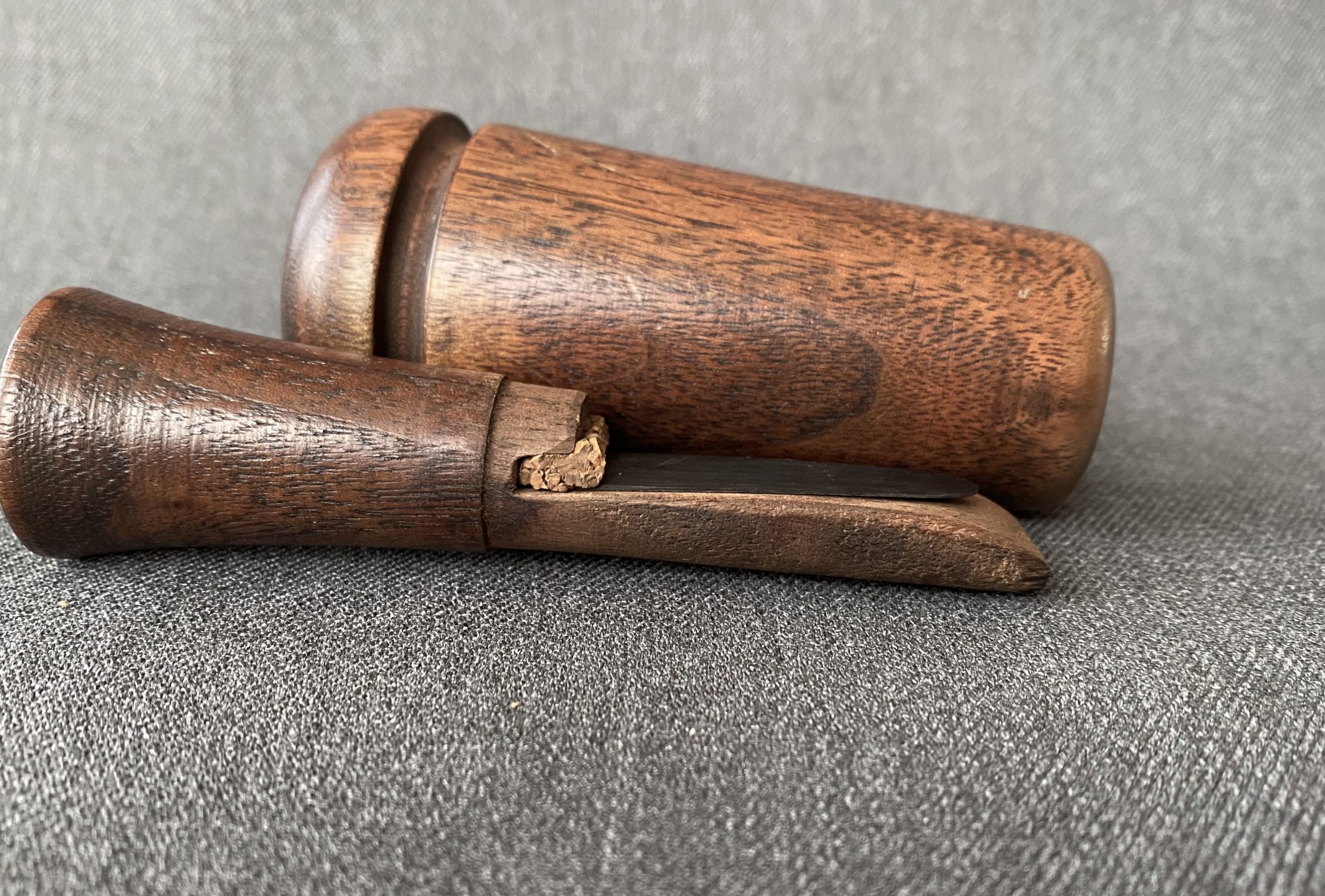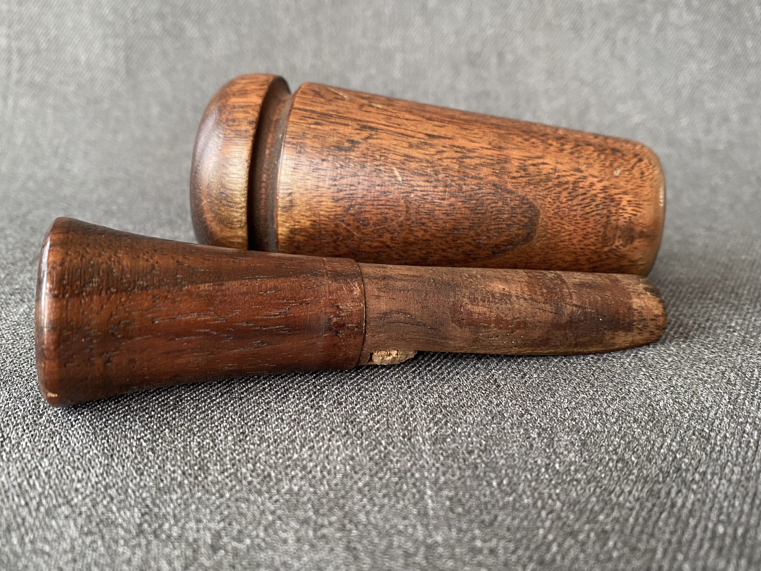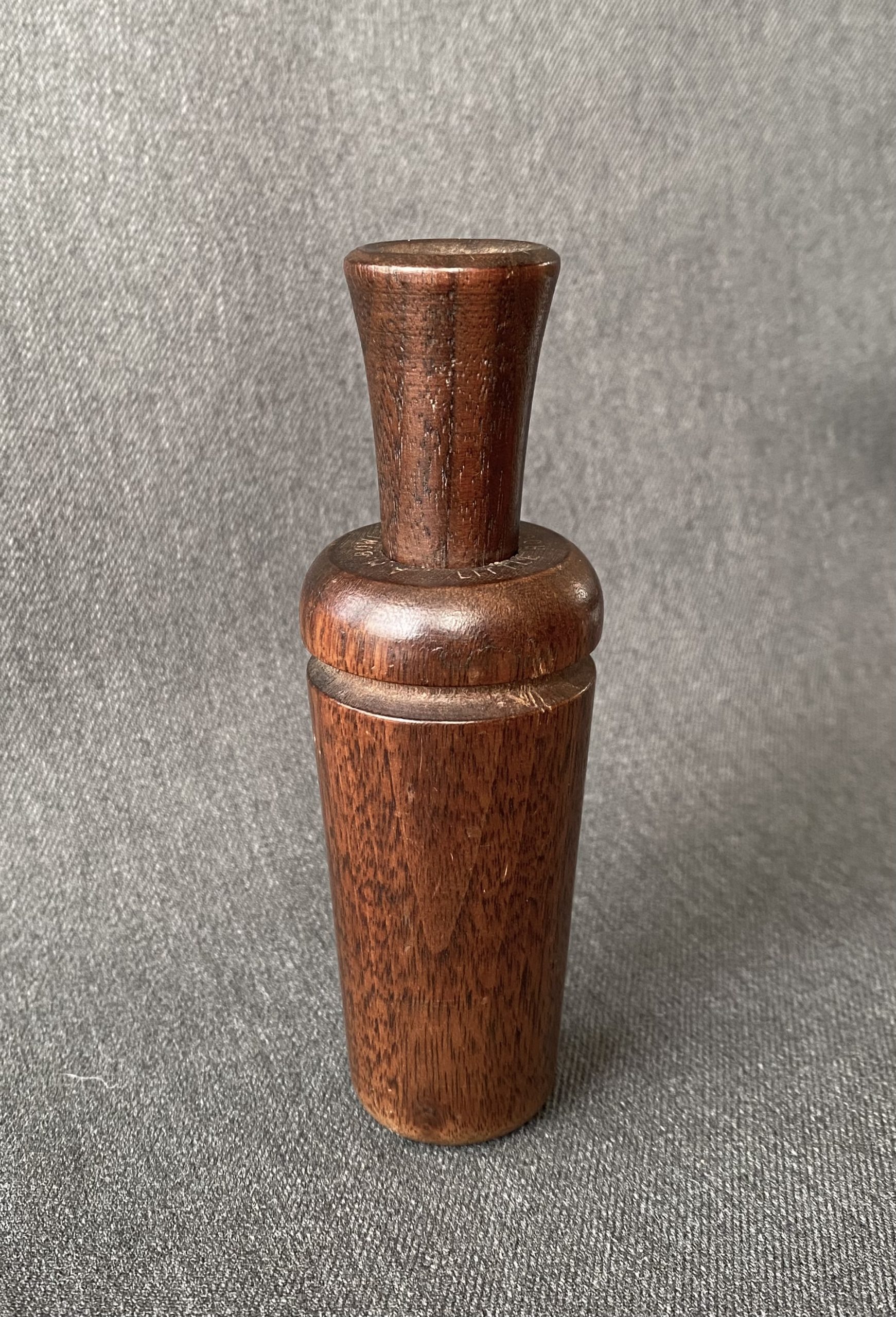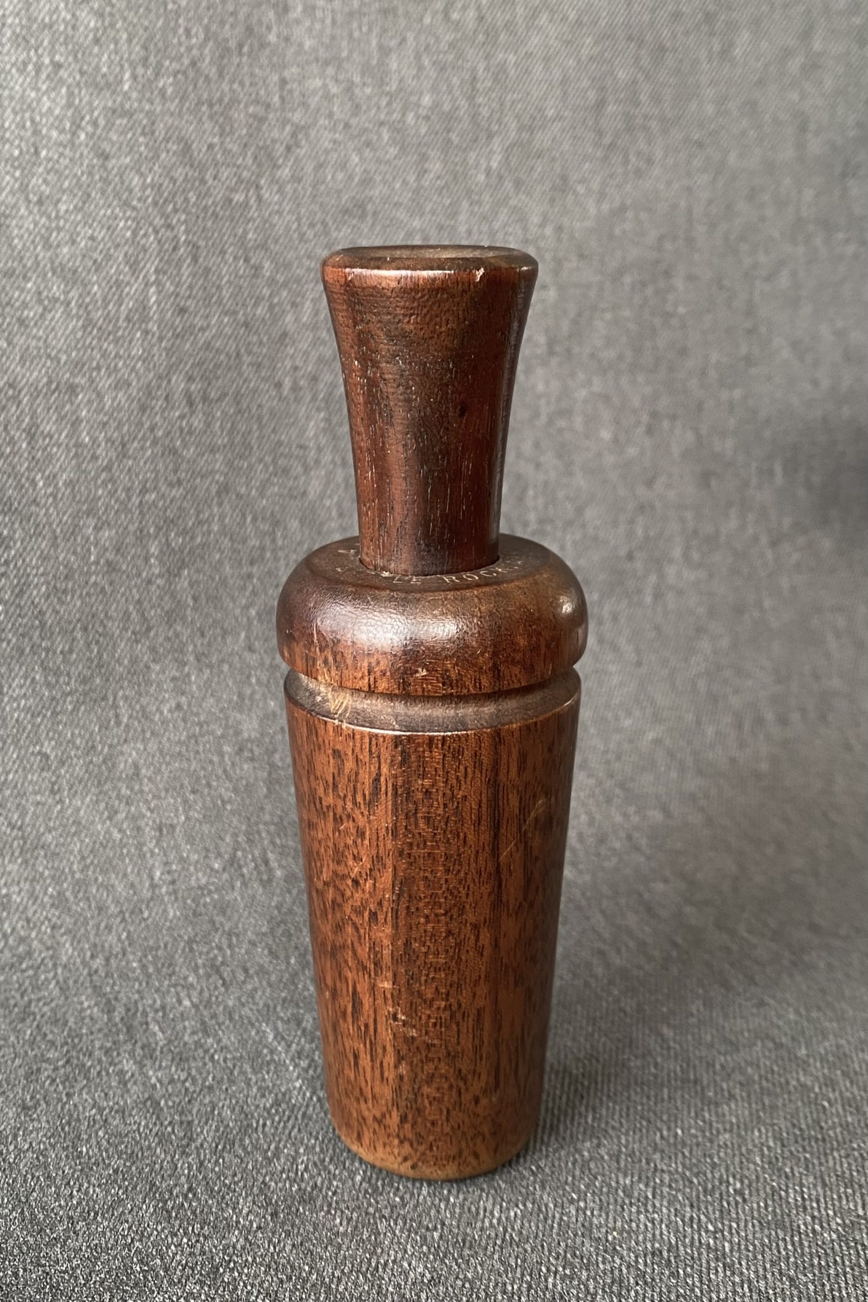 This is a nice call from A.M. Bowles. The call is Arkansas style with a black plastic reed. The barrel is smooth and has a flat top.