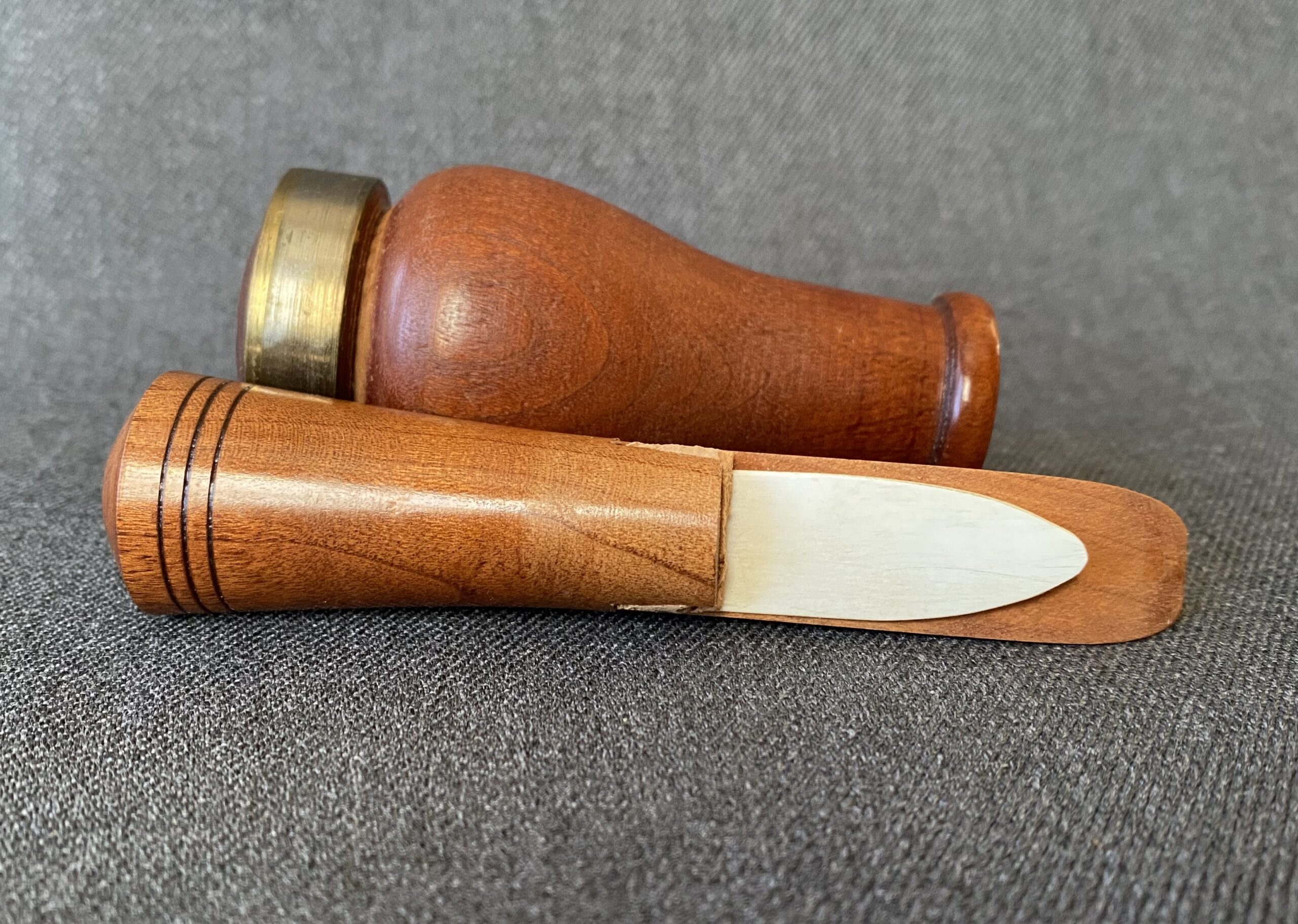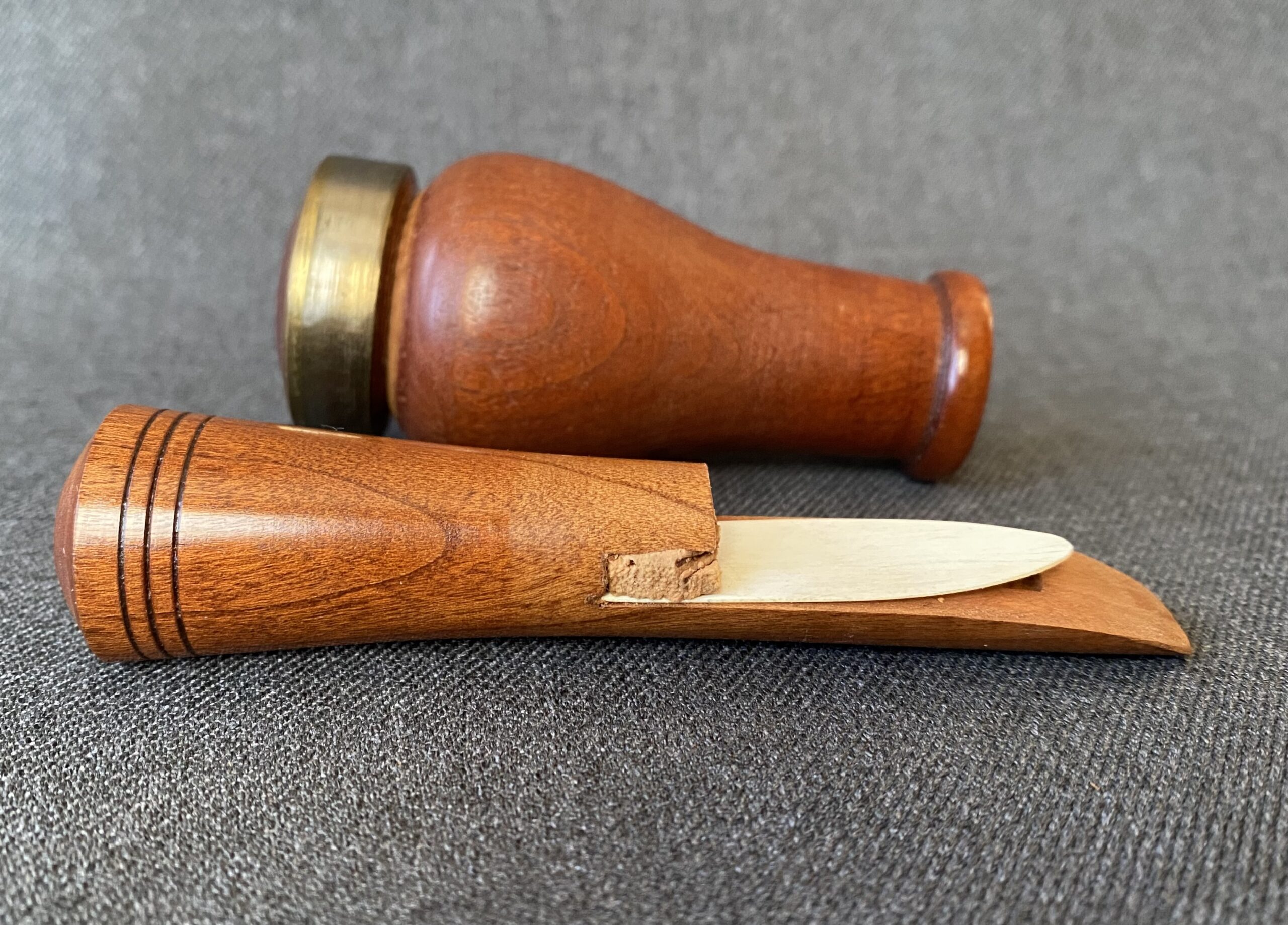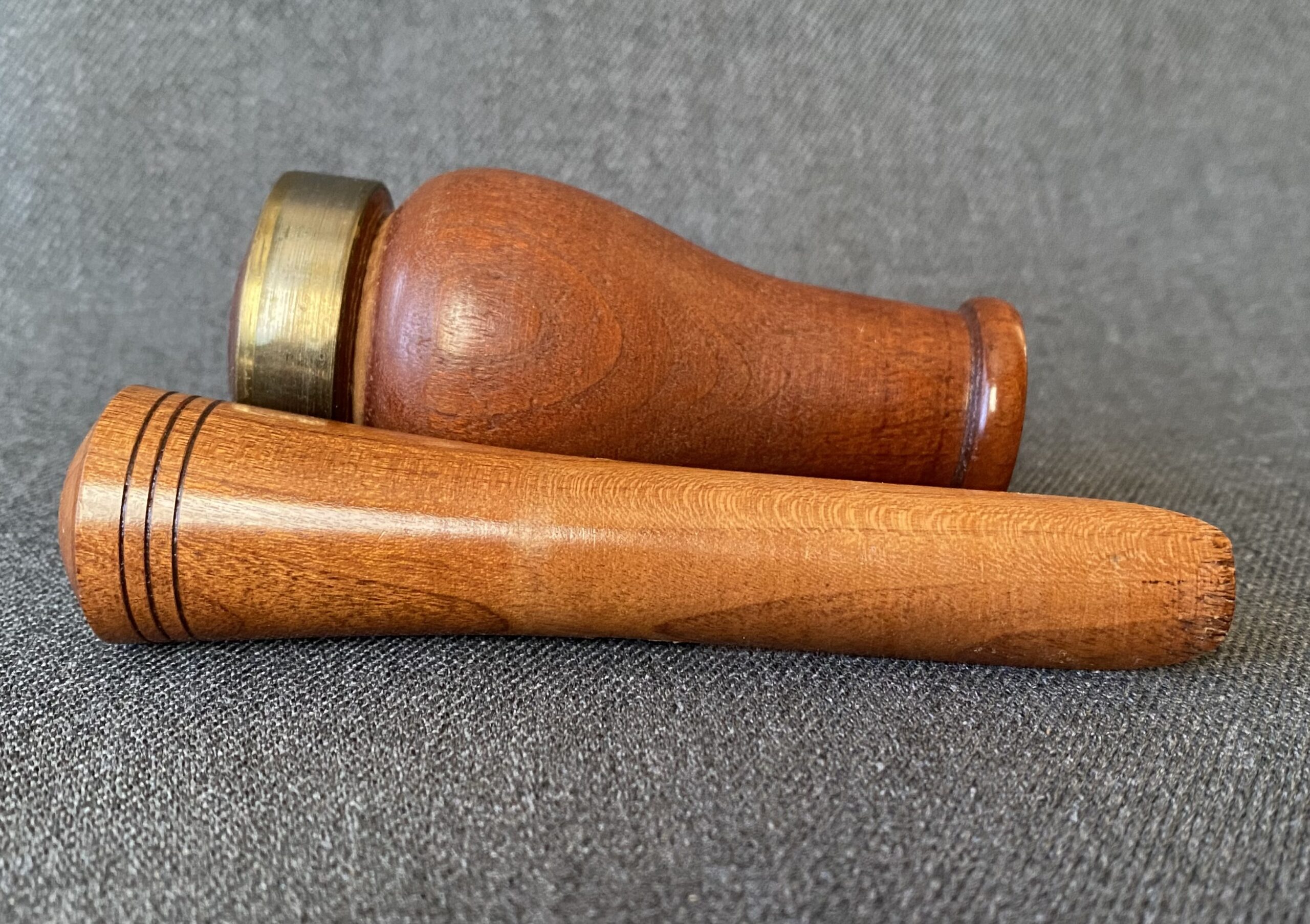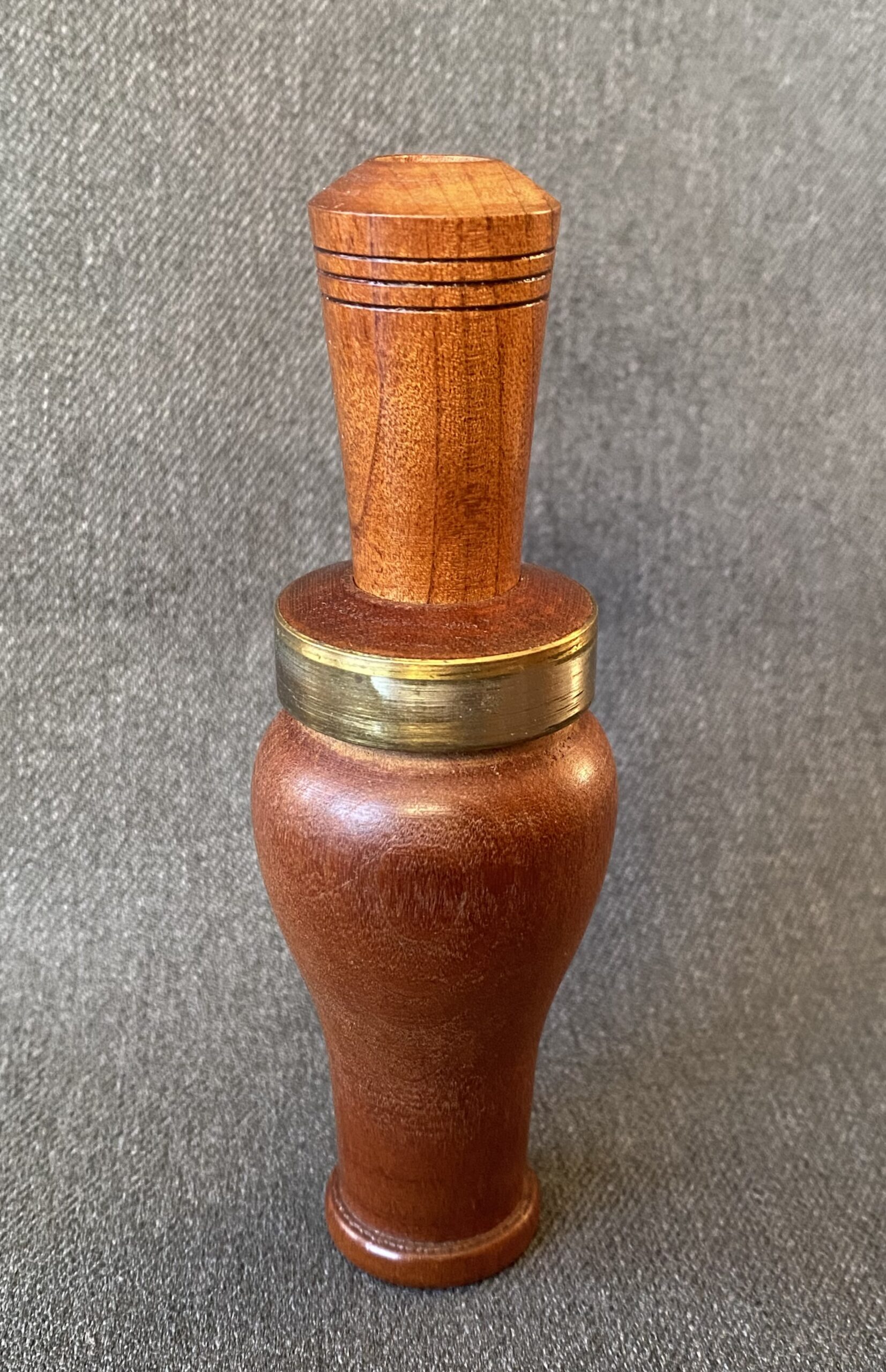 This is a very nice call from Billy Burke. The call is smaller than most Burke calls. It’s Arkansas style with a white plastic reed and a brass band around the top of the barrel.