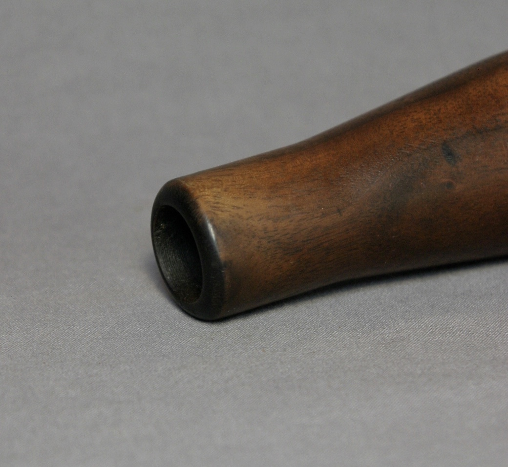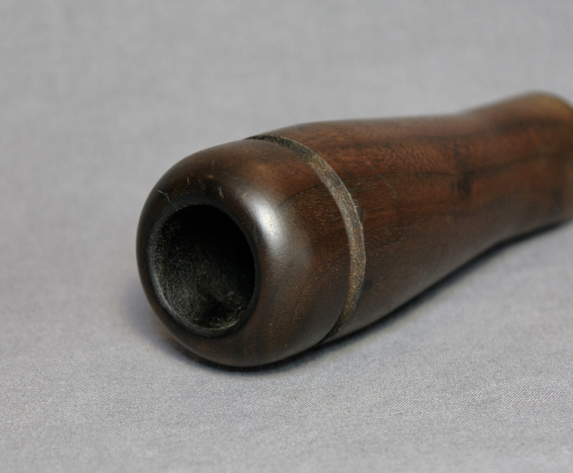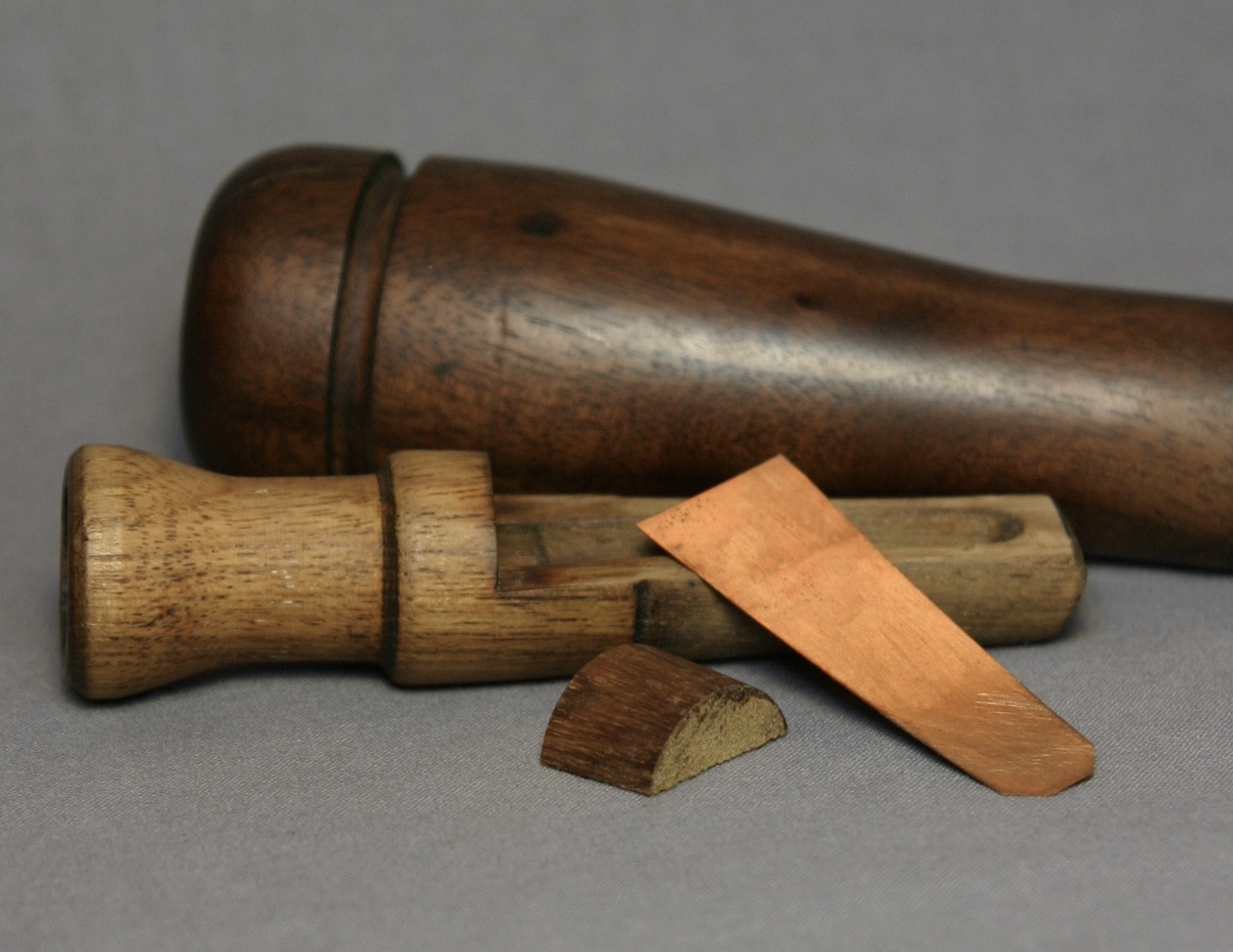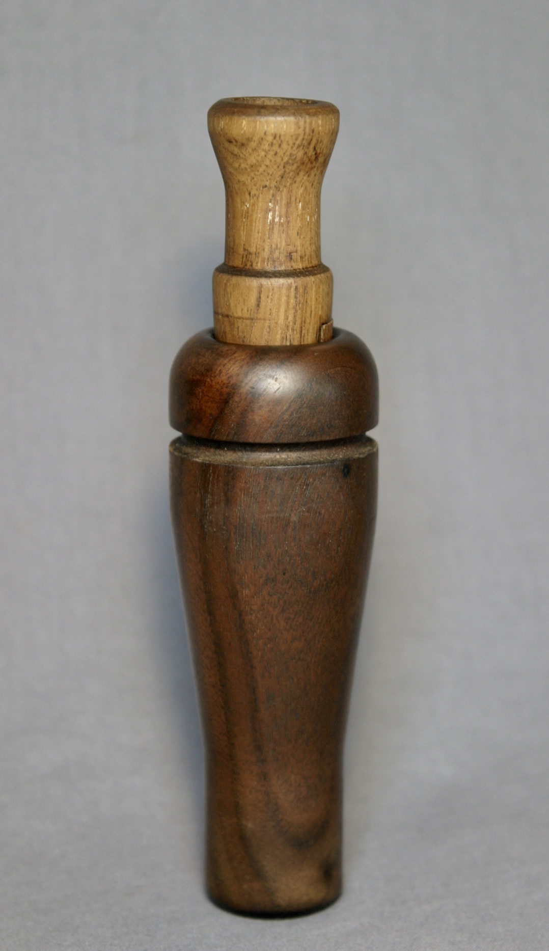 A great call by the master call maker Cecil Wellborn. The call has a Tom Turpin style stopper and the inside of the barrel is Glodoed in the style of Turpin calls. The call has a seasonal crack, running along the wood grain, on the outer top part of the barrel. The crack doesn’t go through to the inside of the barrel. This call has never been used.