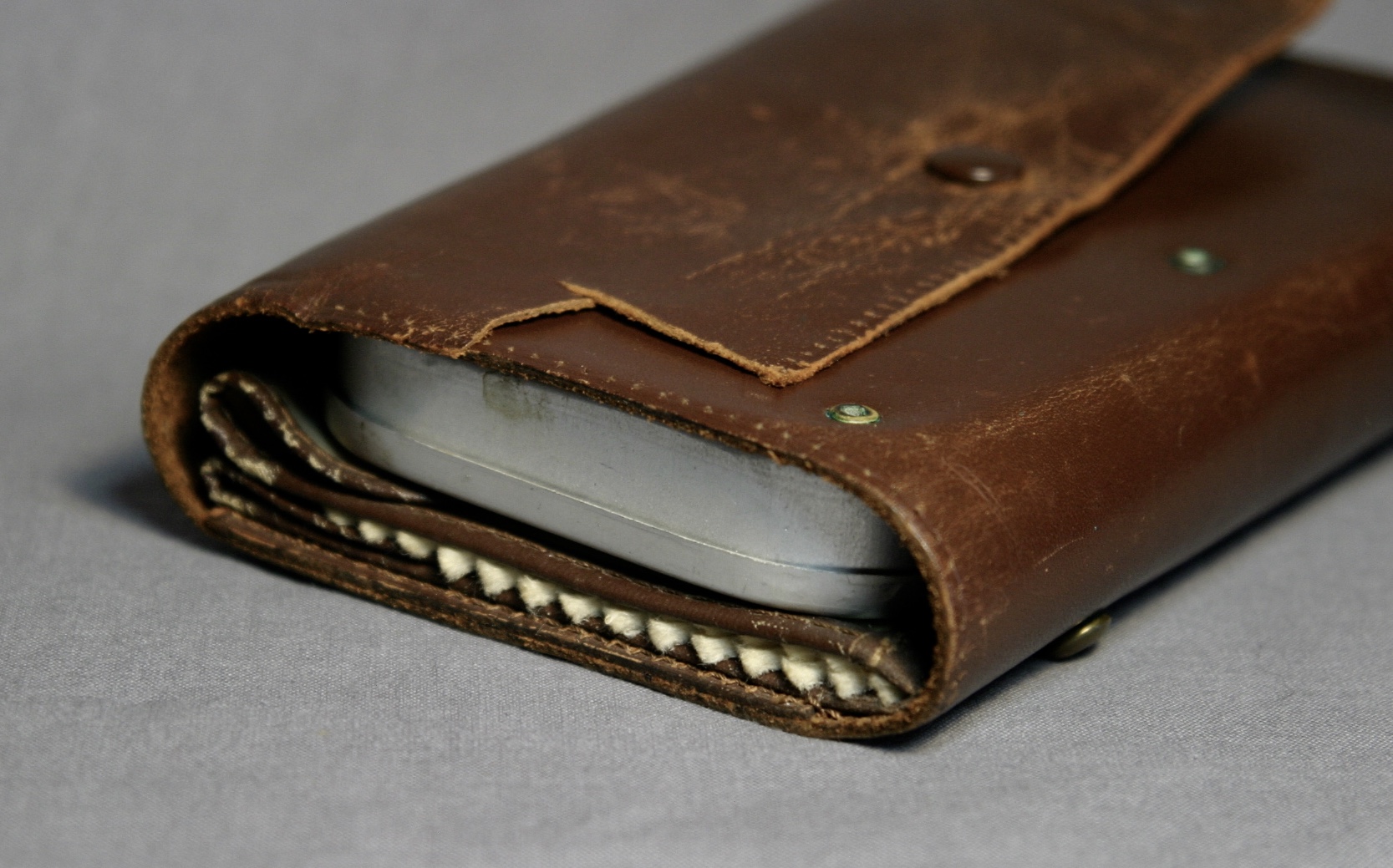 This CommonSense wallet has two envelopes, two felts, a leather pocket, and an aluminum box with fleece.