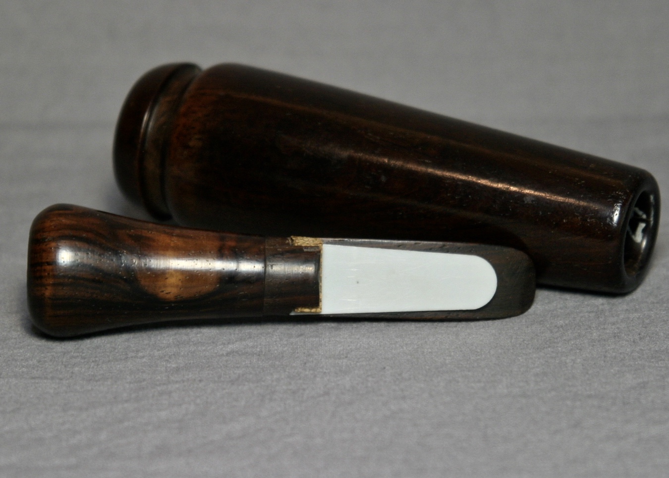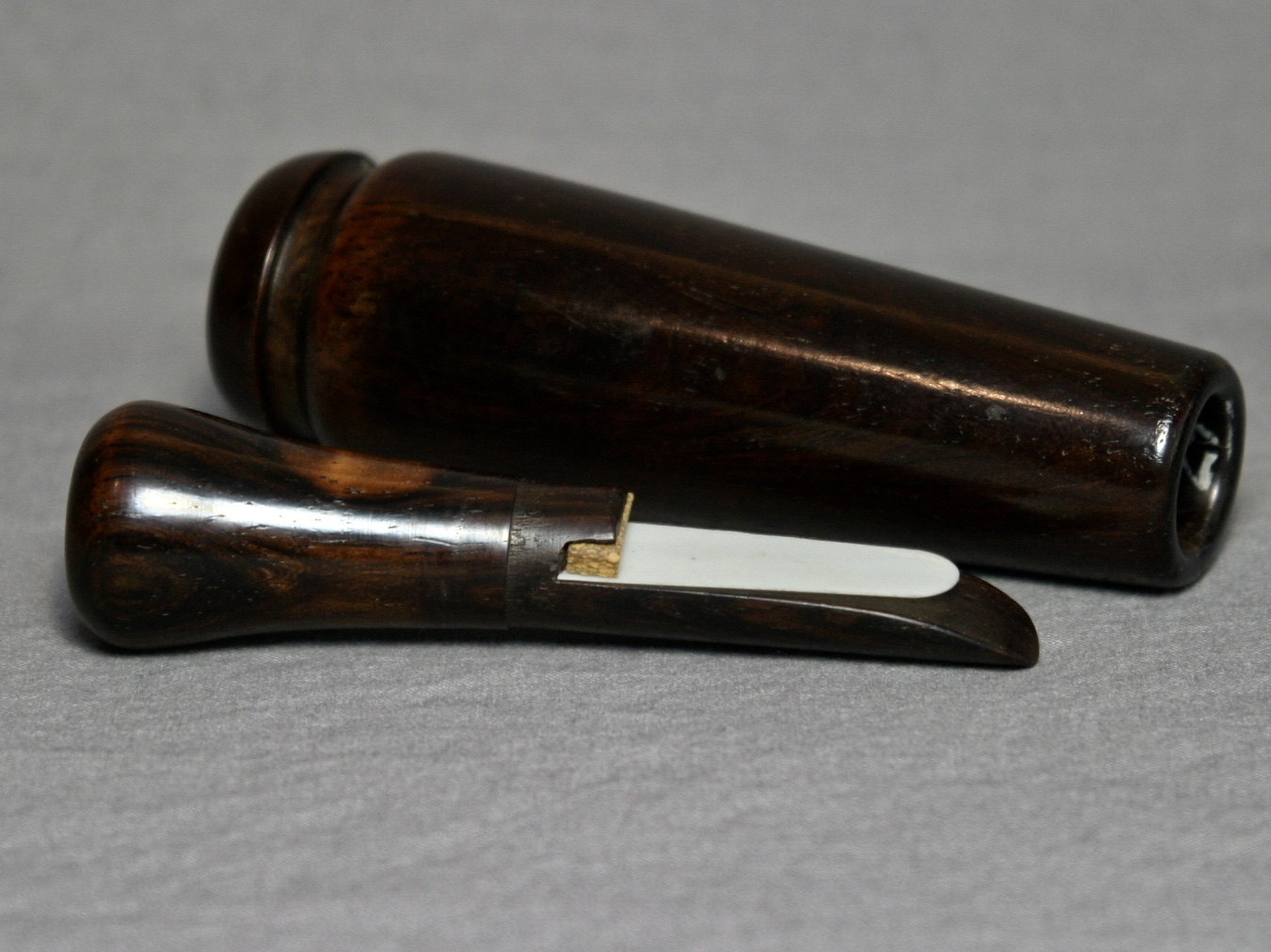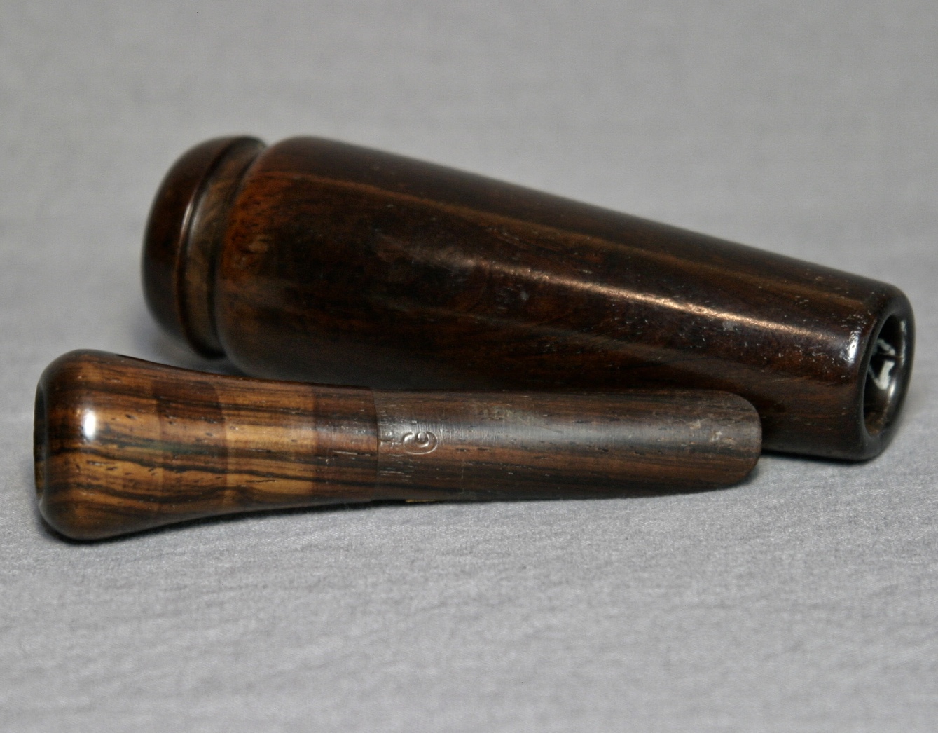 This is an early call from EV Iverson made in New York for A&F in the 1940s.There are slight season cracks at the top of the barrel that have filled in. The call is in overall great condition, beautiful wood!