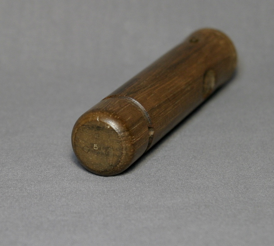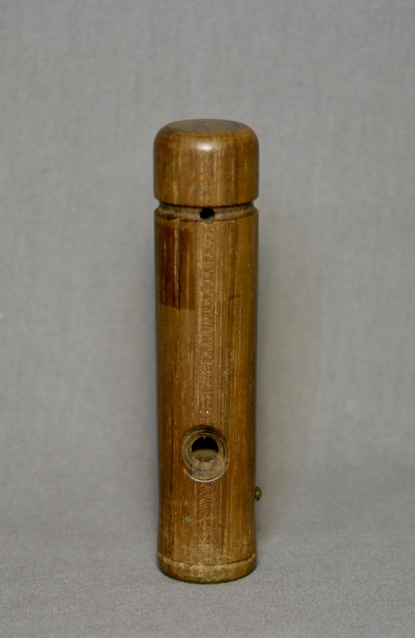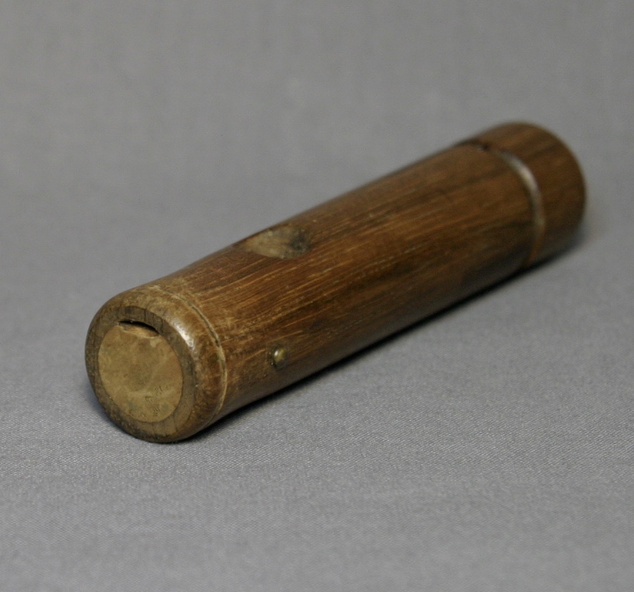 A sprig whistle from EV Iverson. The whistle is oiled walnut. The call is stamped on the end with the number 5 indicating it was made by EV Iverson.