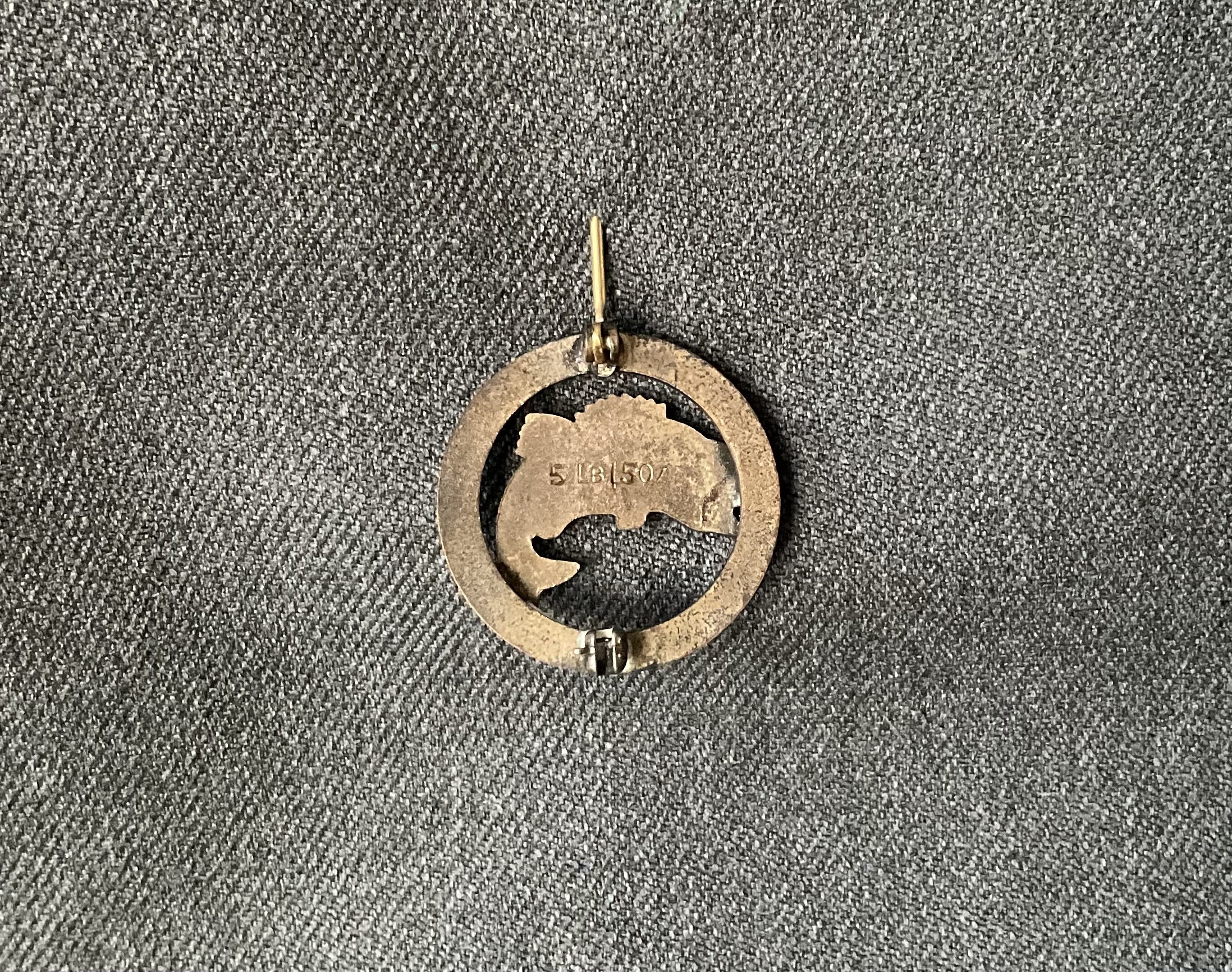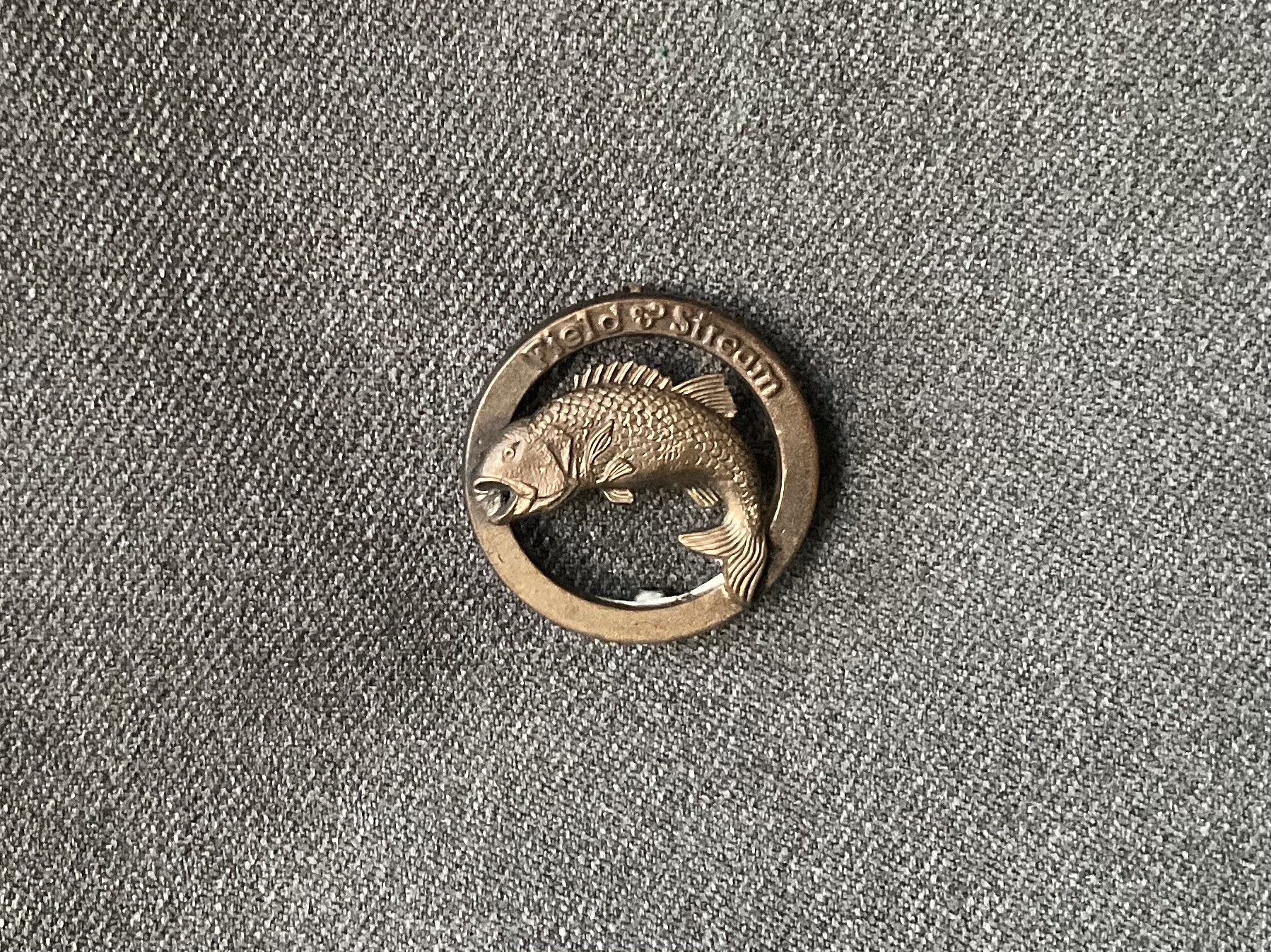 A silver Field & Stream 5 pound 15 ounce Black Bass pin.