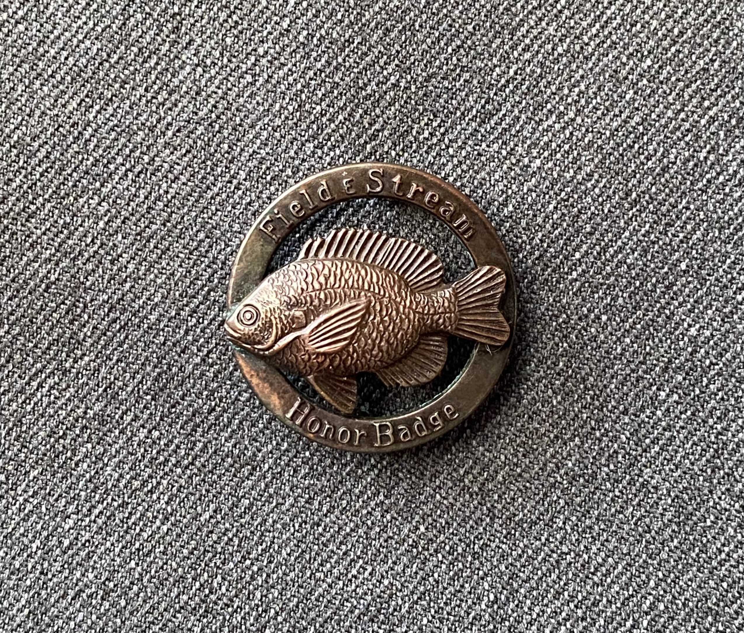 A Field & Stream Halibut Honor Badge pin.