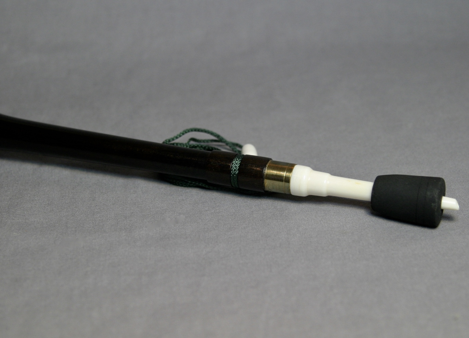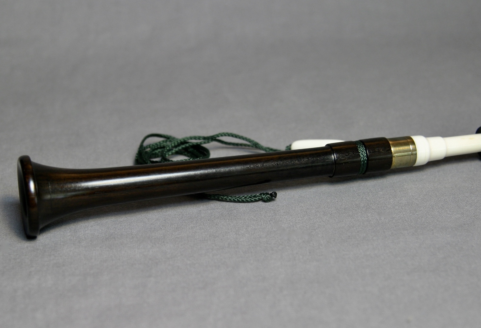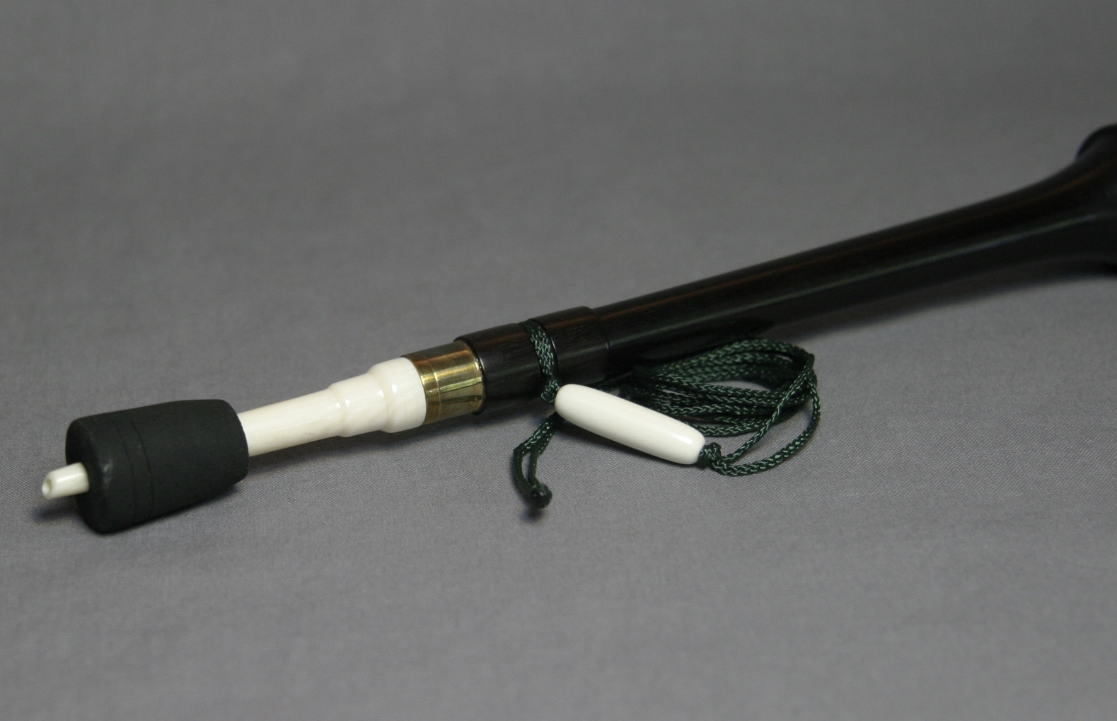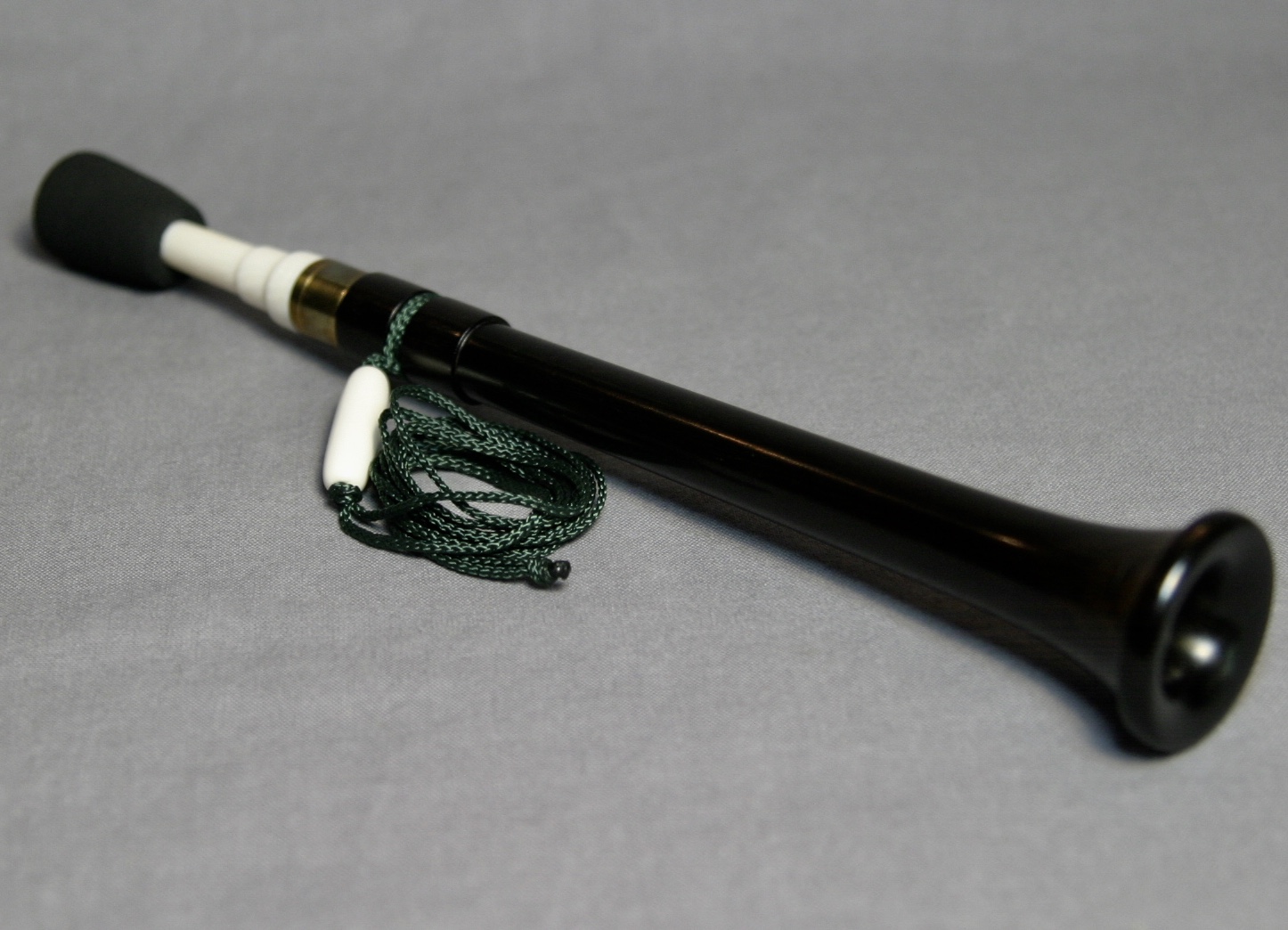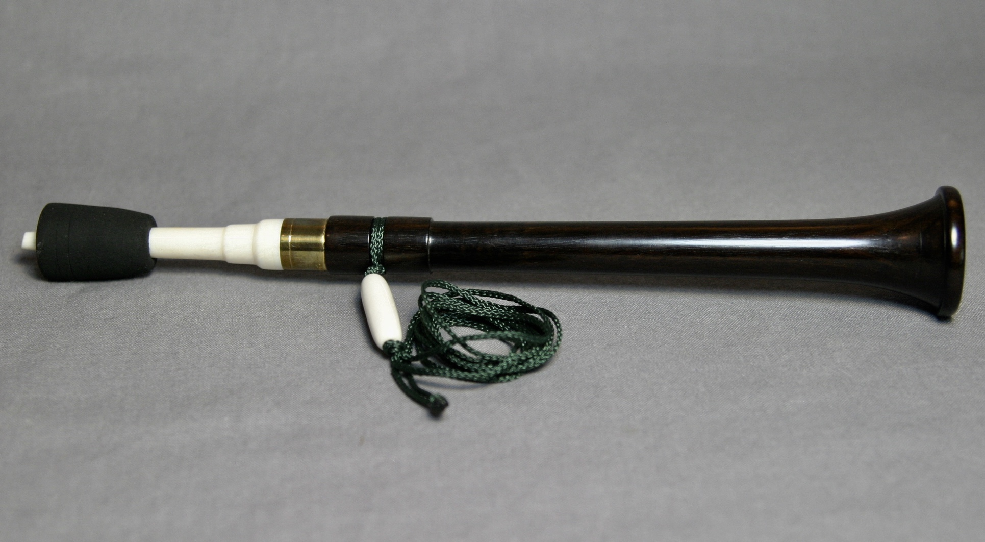 This is a beautiful call from Frank Cox! The yelper is turned from African blackwood and has an incredibly smooth finish. Cox’s signature is engraved around the brass ring. It has a dark green lanyard with a bone detail.
