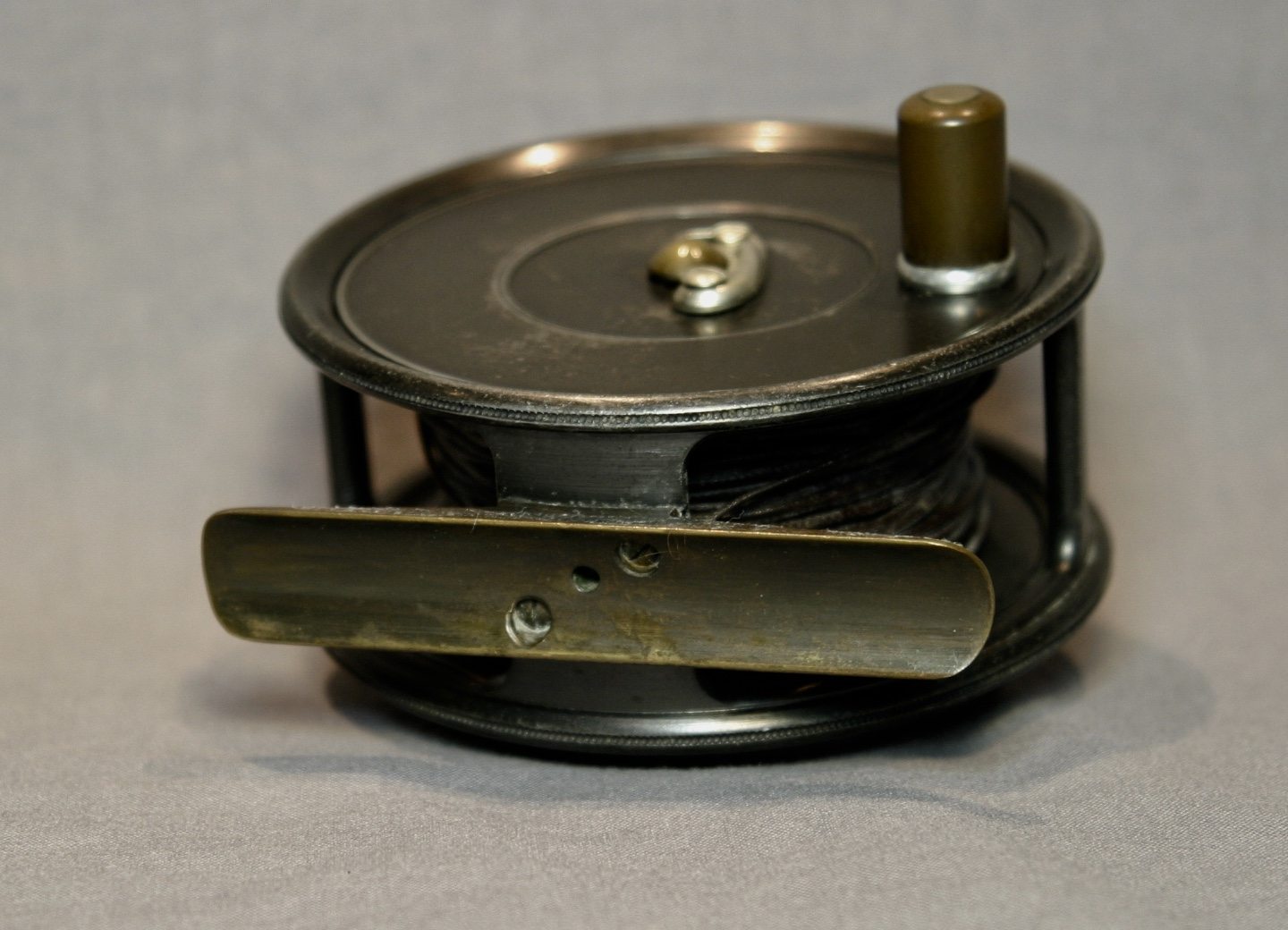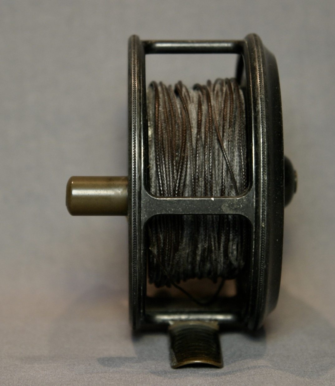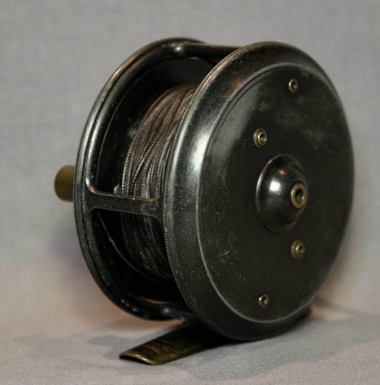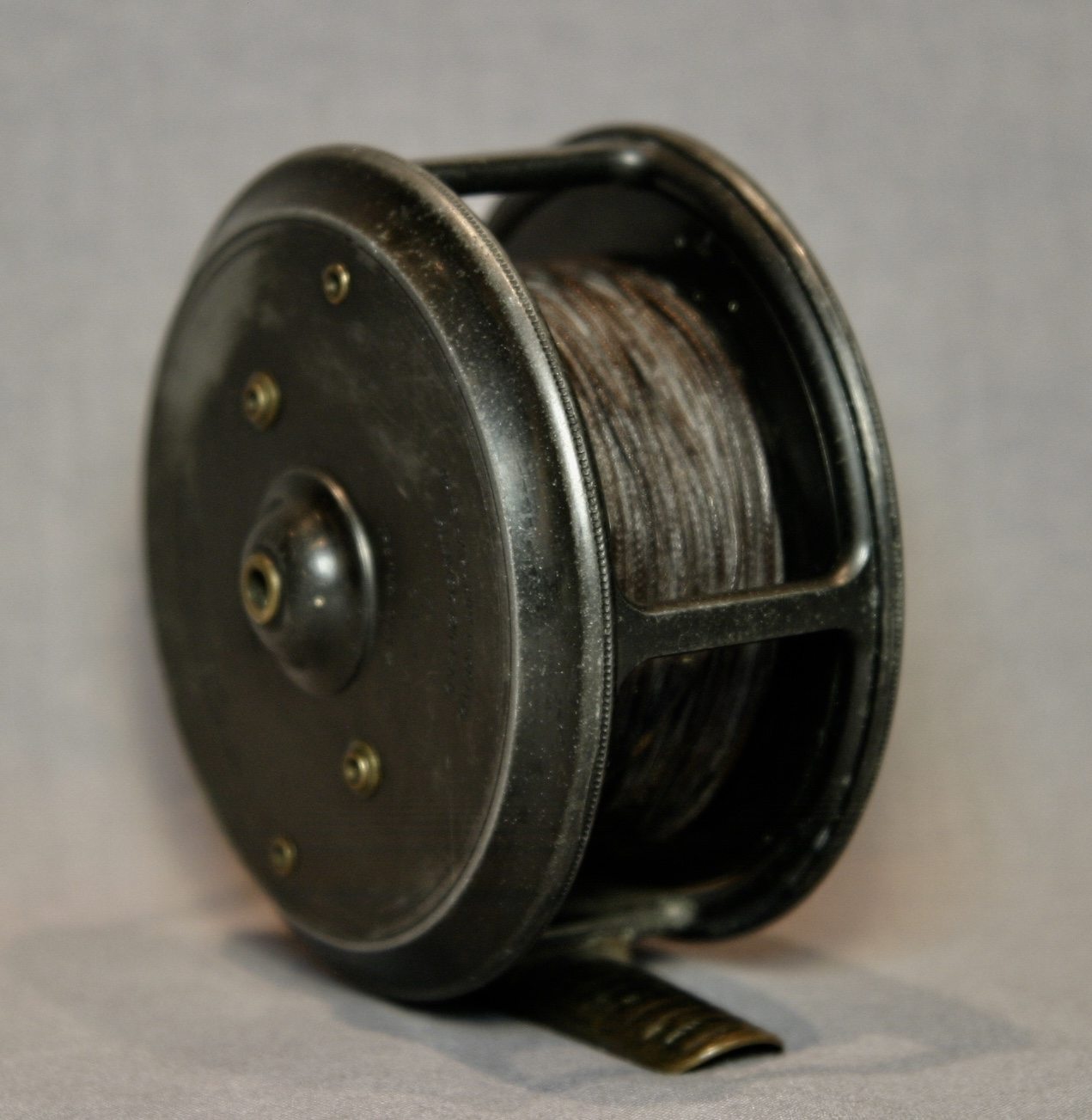 This is a really nice old Hardy “Uniqua”, duplicated Mark II reel. The reel has a large 3 1/2 inch ribbed brass foot. The drag is in great condition.