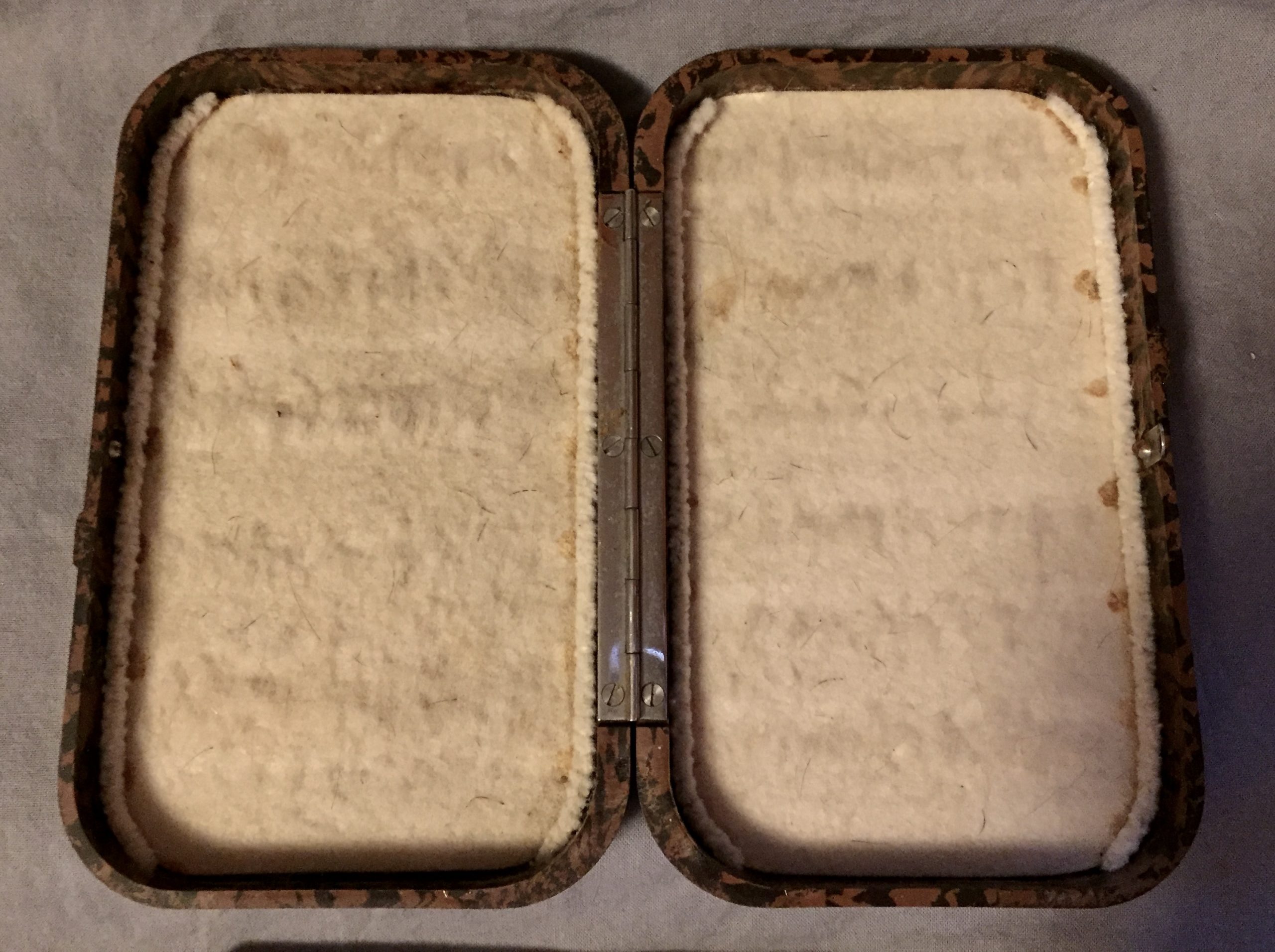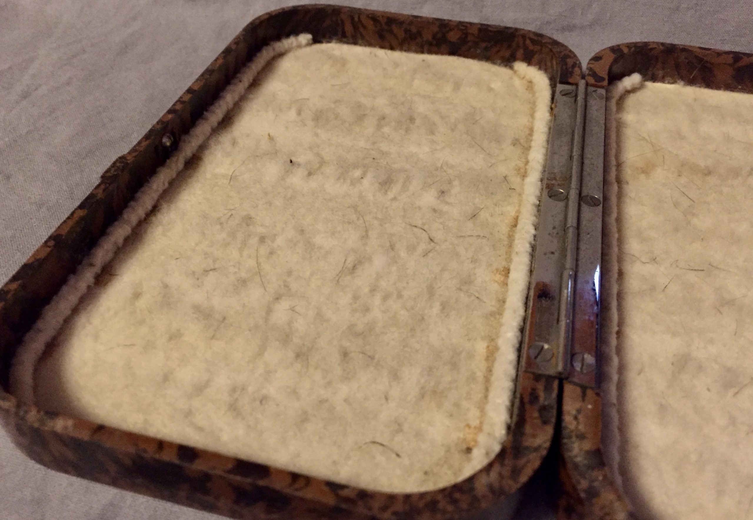 This is a great neroda fly box from Hardy Bros. It has felts attached to the inside of the box and pipe cleaners on the edges.