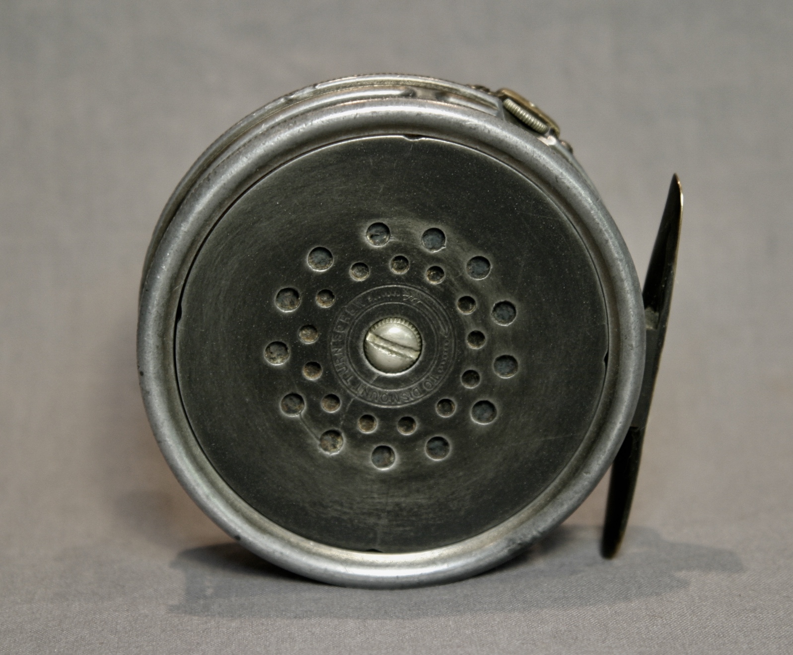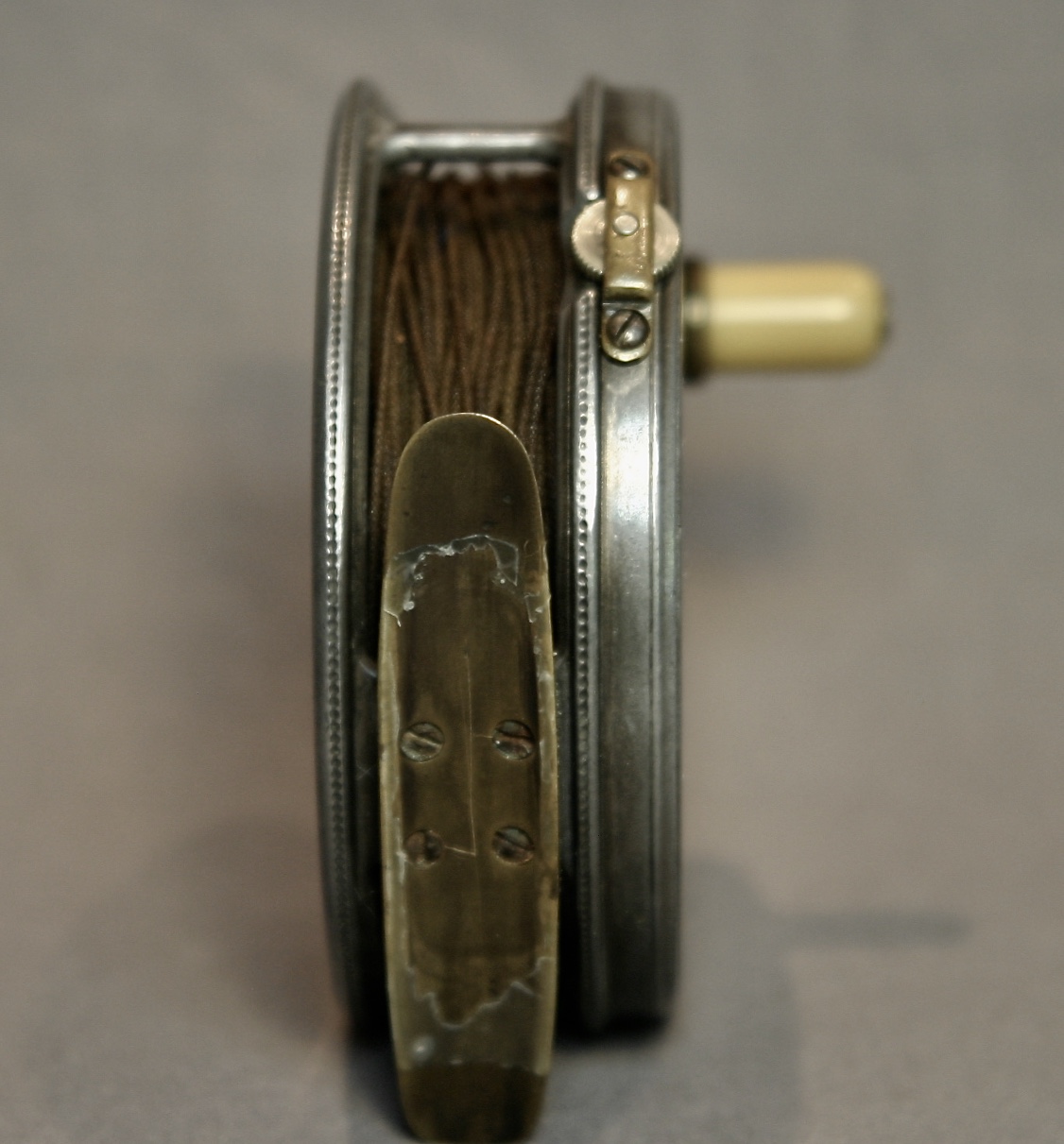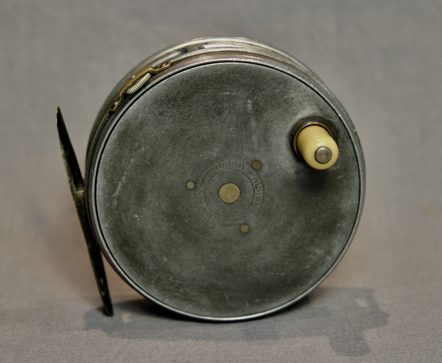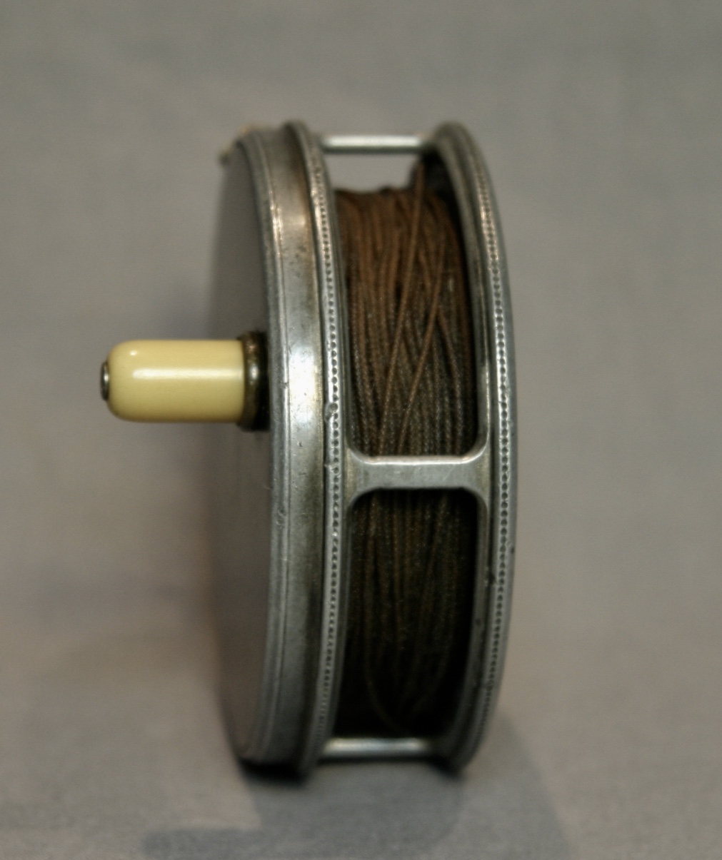 This is a very nice Hardy Perfect reel from 1912. It has an ivorine handle and a smooth brass foot. The drag is in good condition, the reel is right hand retrieve.