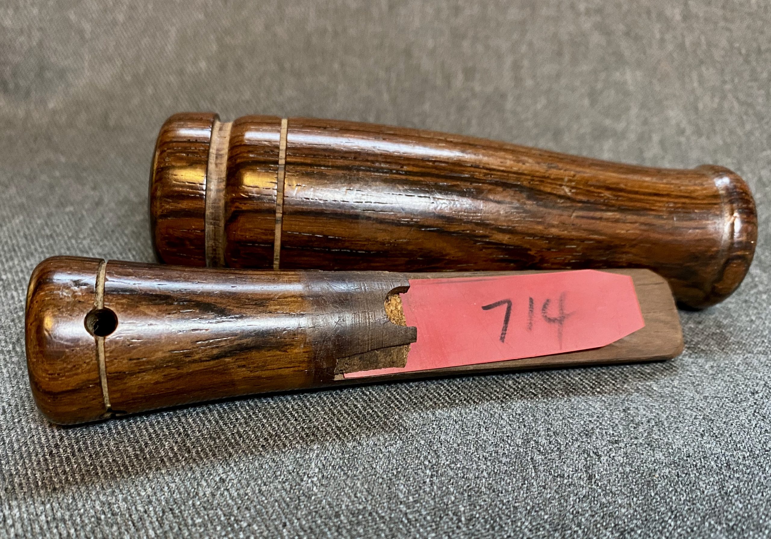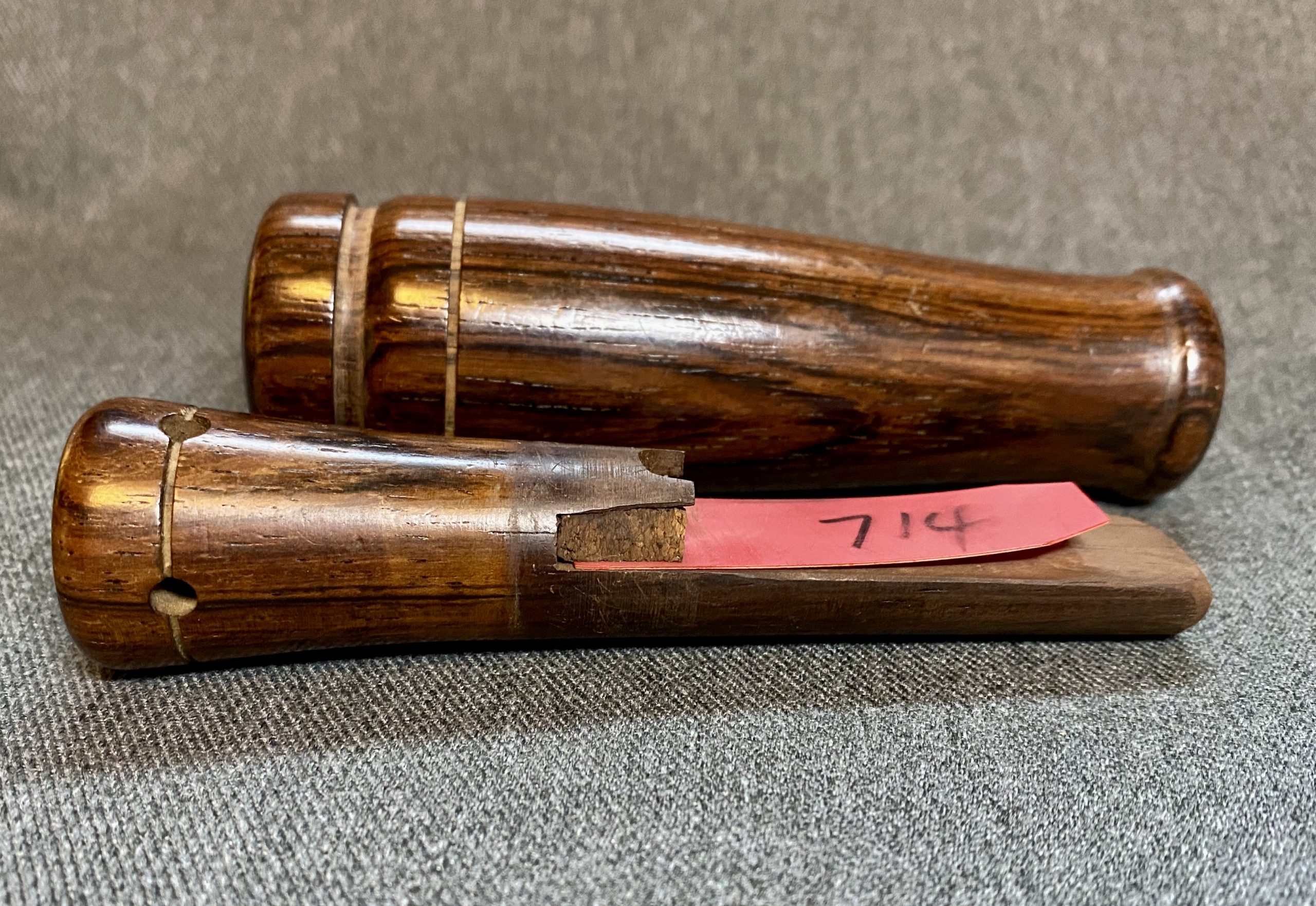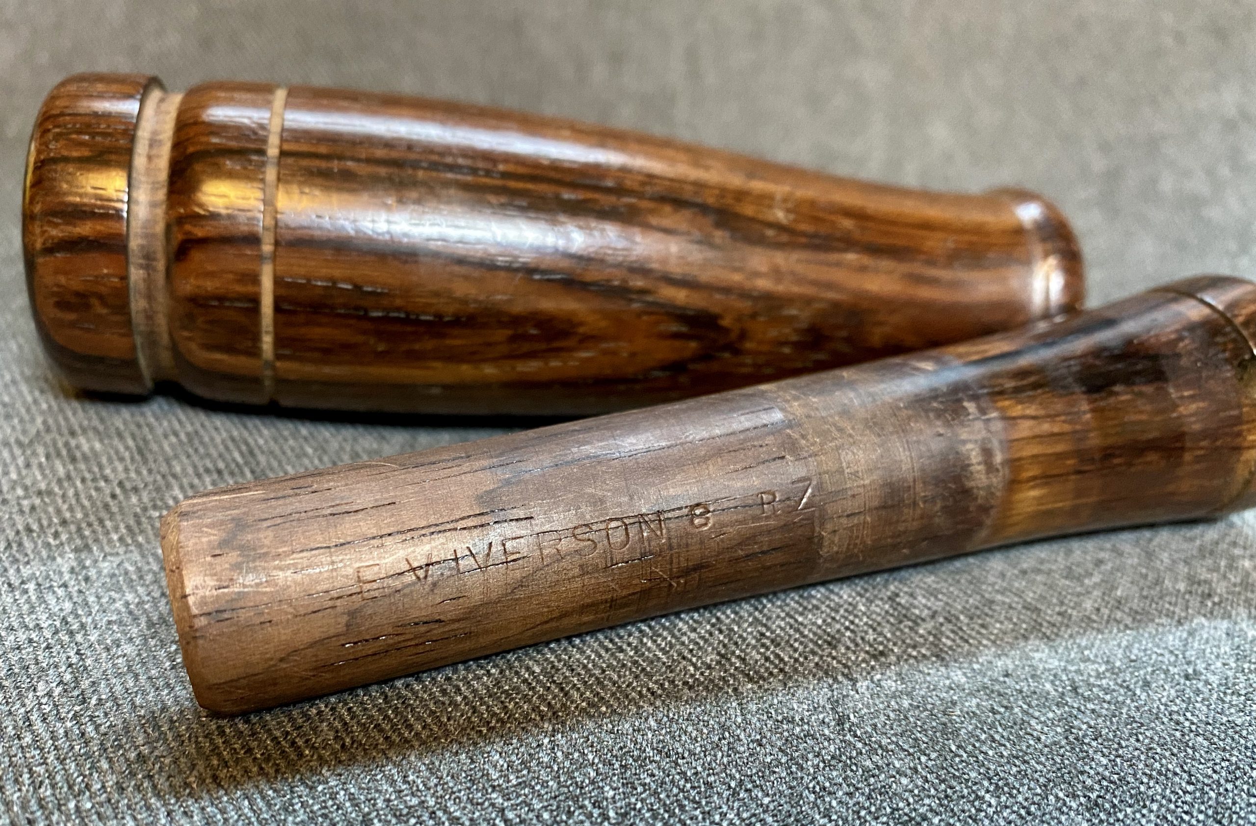 A call from E.V. Iverson turned from rosewood. The call was made in 1958, an early raised shoulder call.