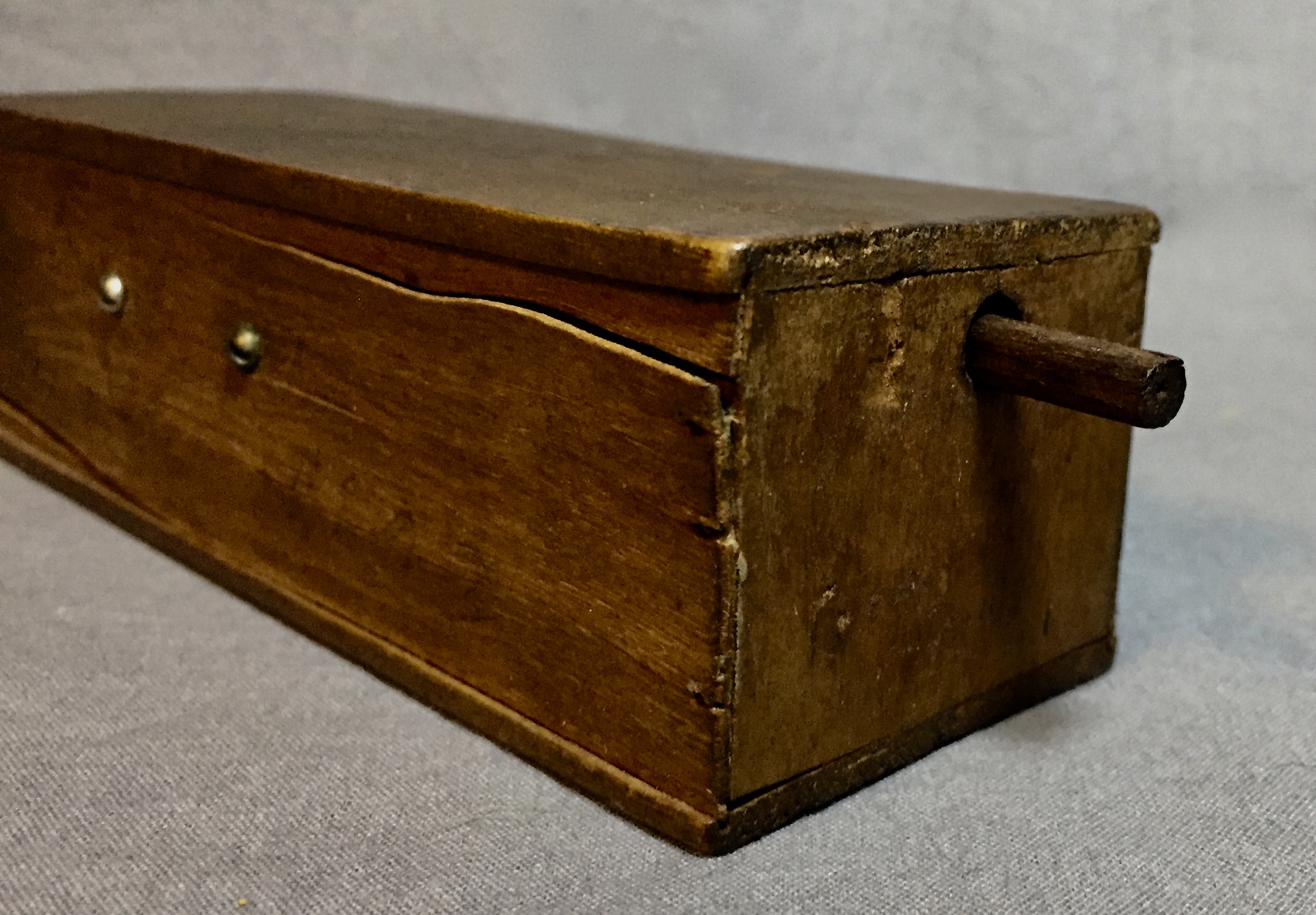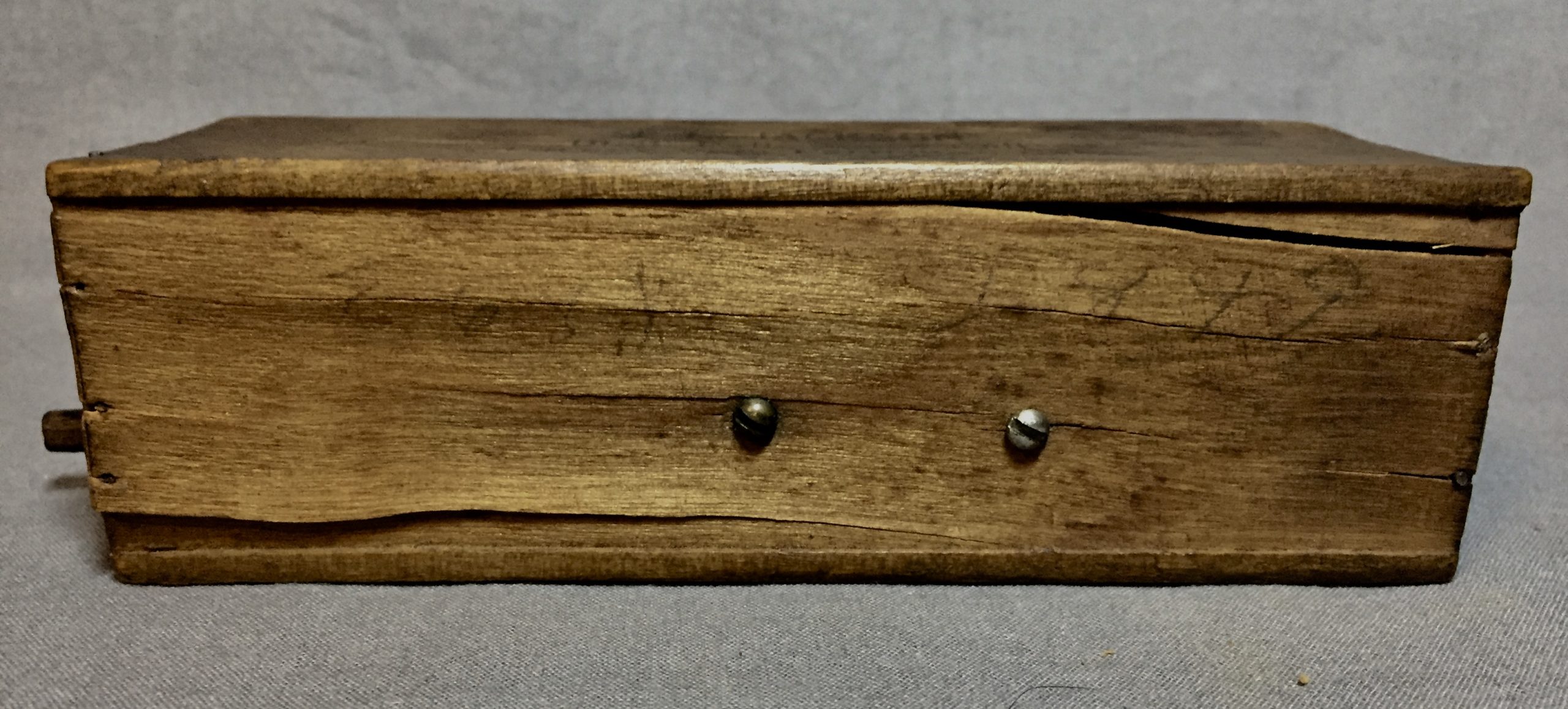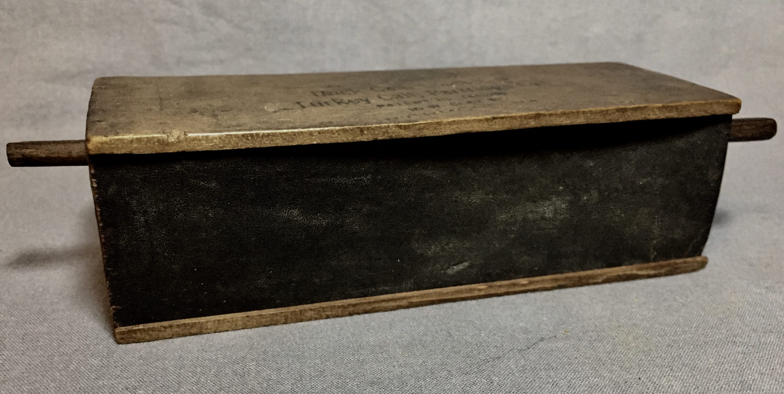 A very rare, old push box from J.E. Jackson. The call has a nice dark patina. The slide stick is solid and the outer sides show some aging, please see the photos.