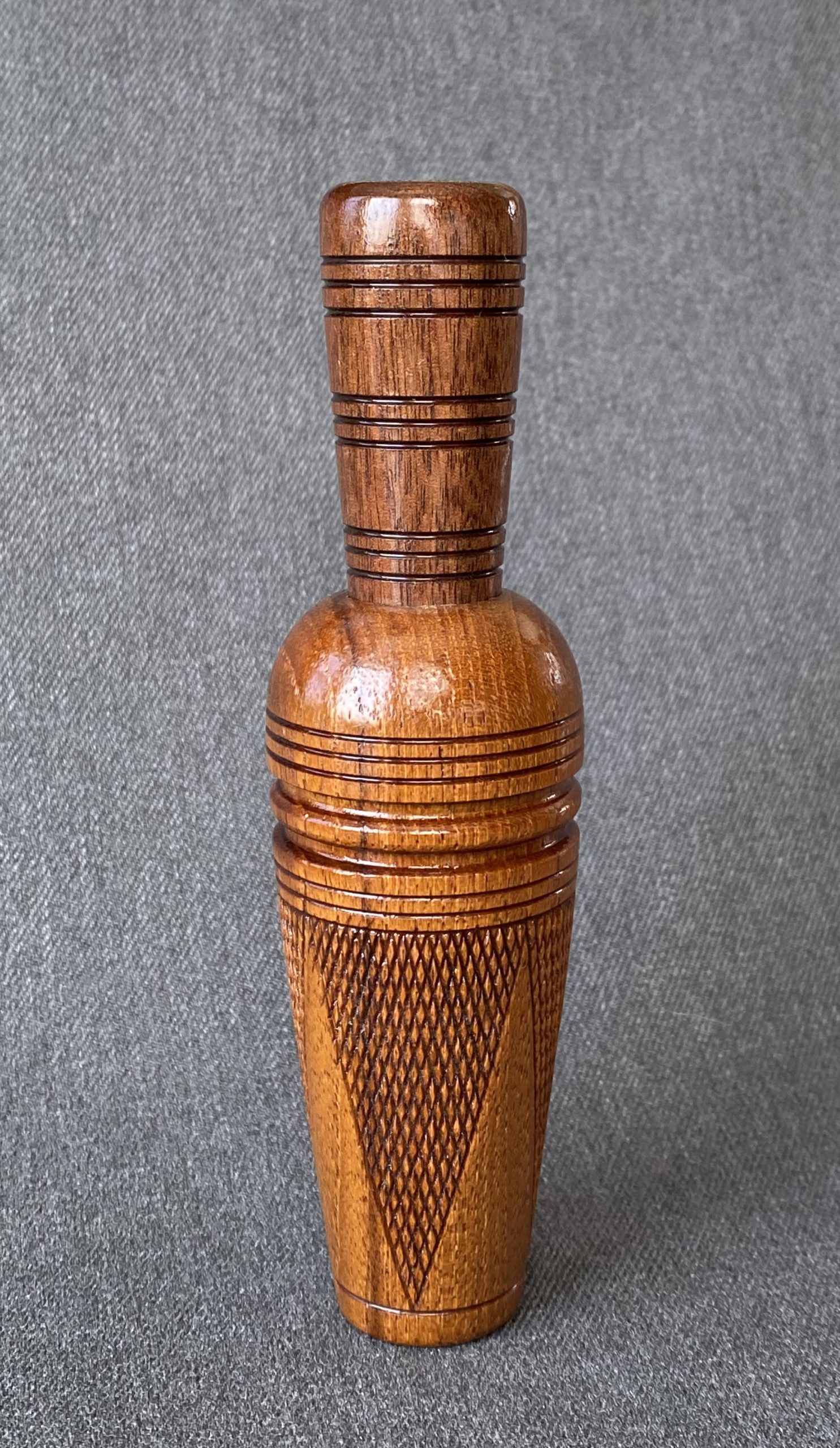 This is a very refined four panel checkered call from Joe Jaroski Junior. The call has a lustrous lacquer finish . Jaroski Jr. is no longer making calls.