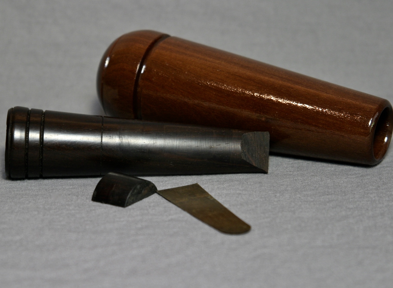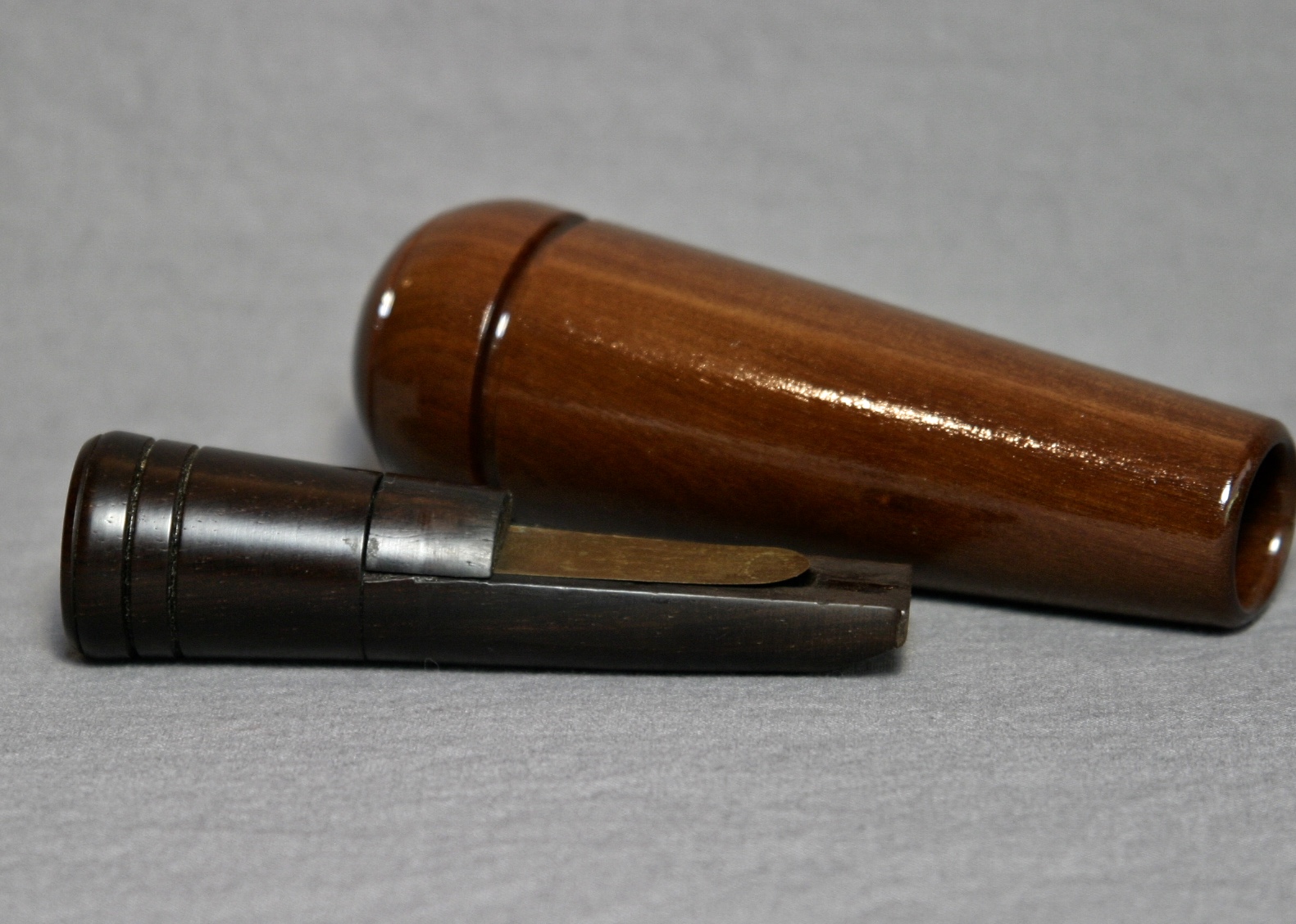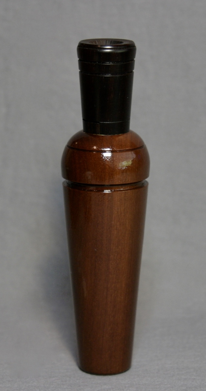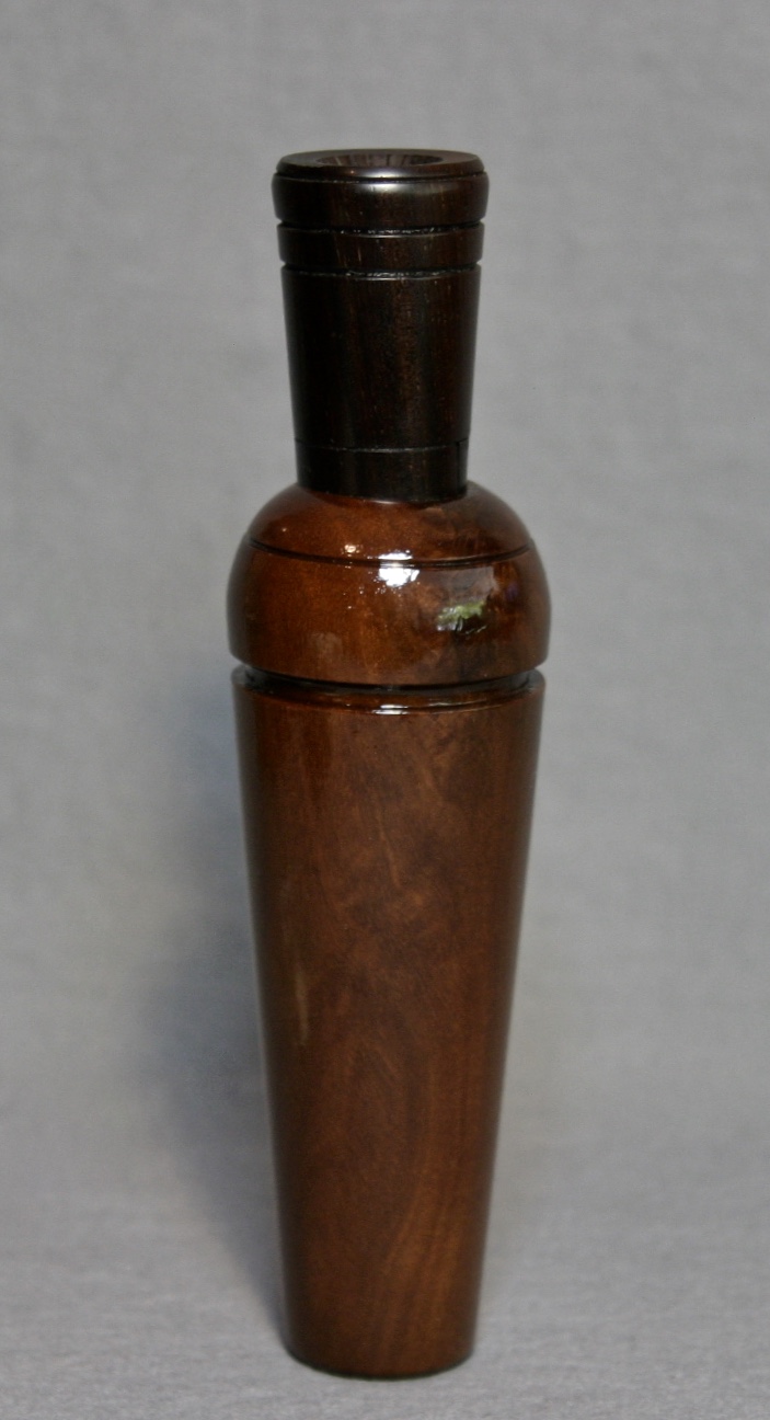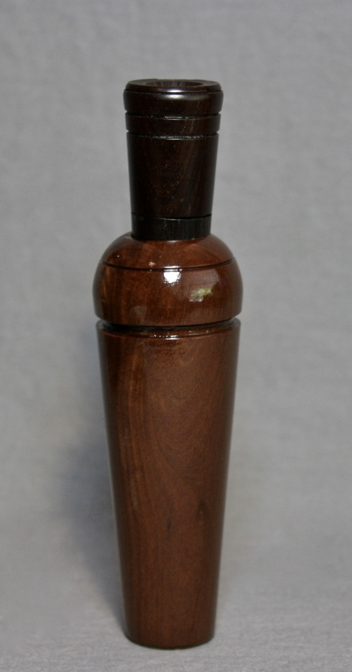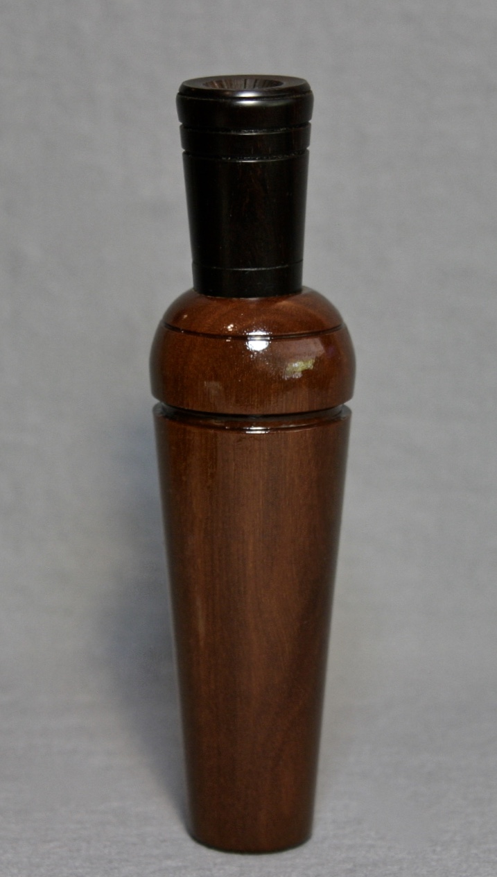 This is a great call in excellent condition from Johnny Asbille! The call is Reelfoot style with a copper reed, walnut and cherry wood with a lacquer finish.