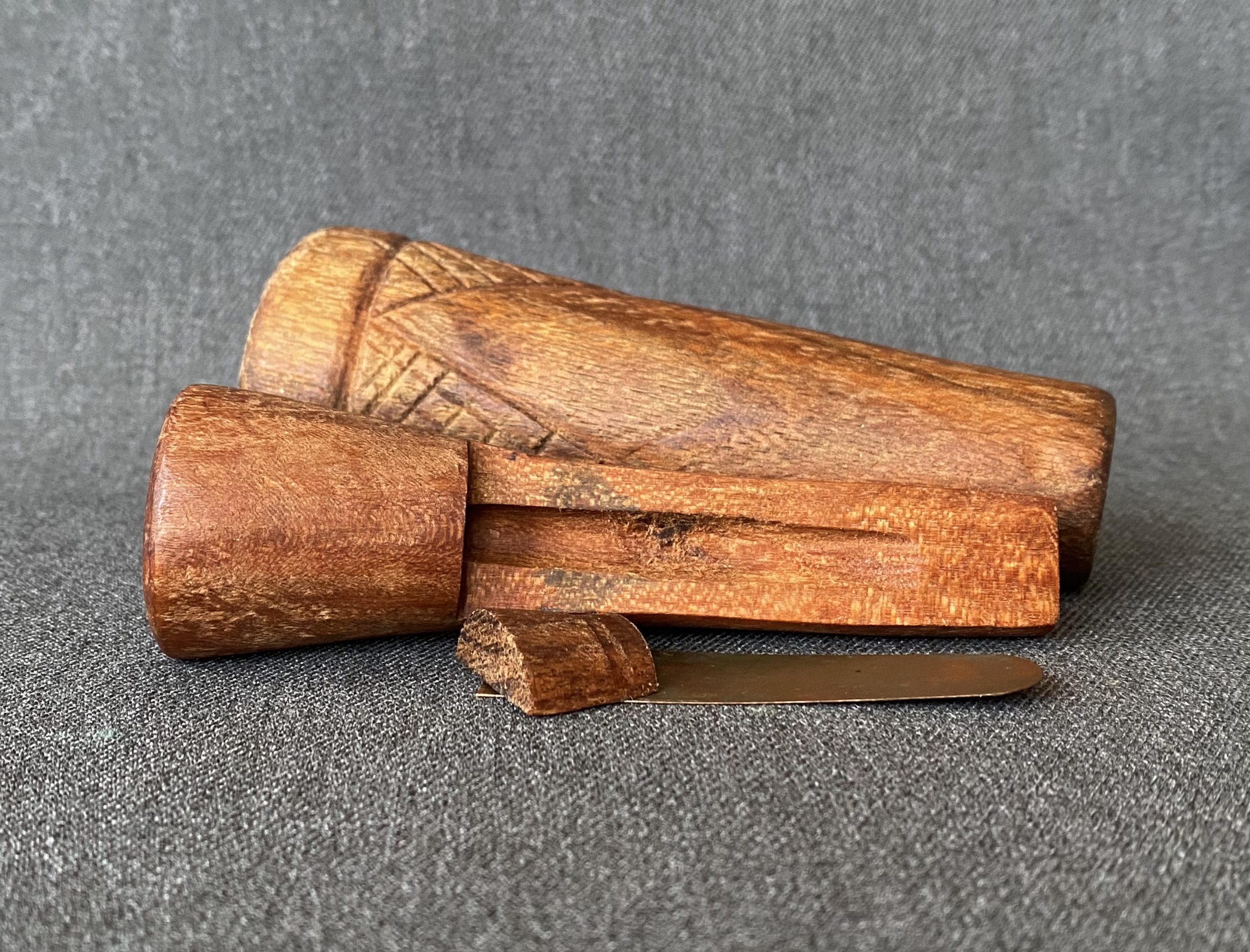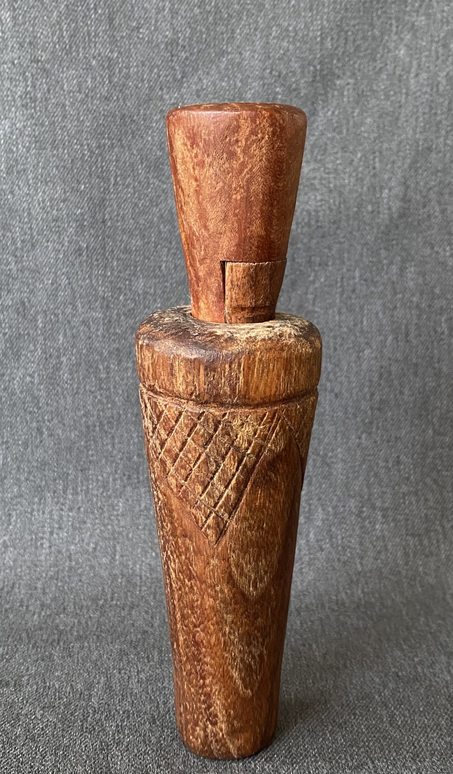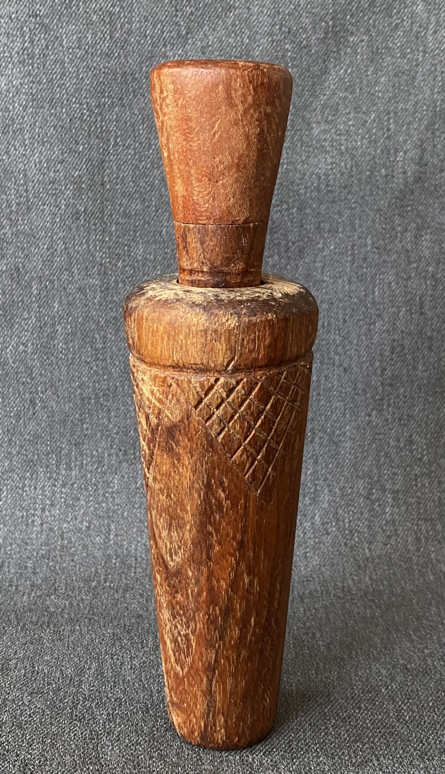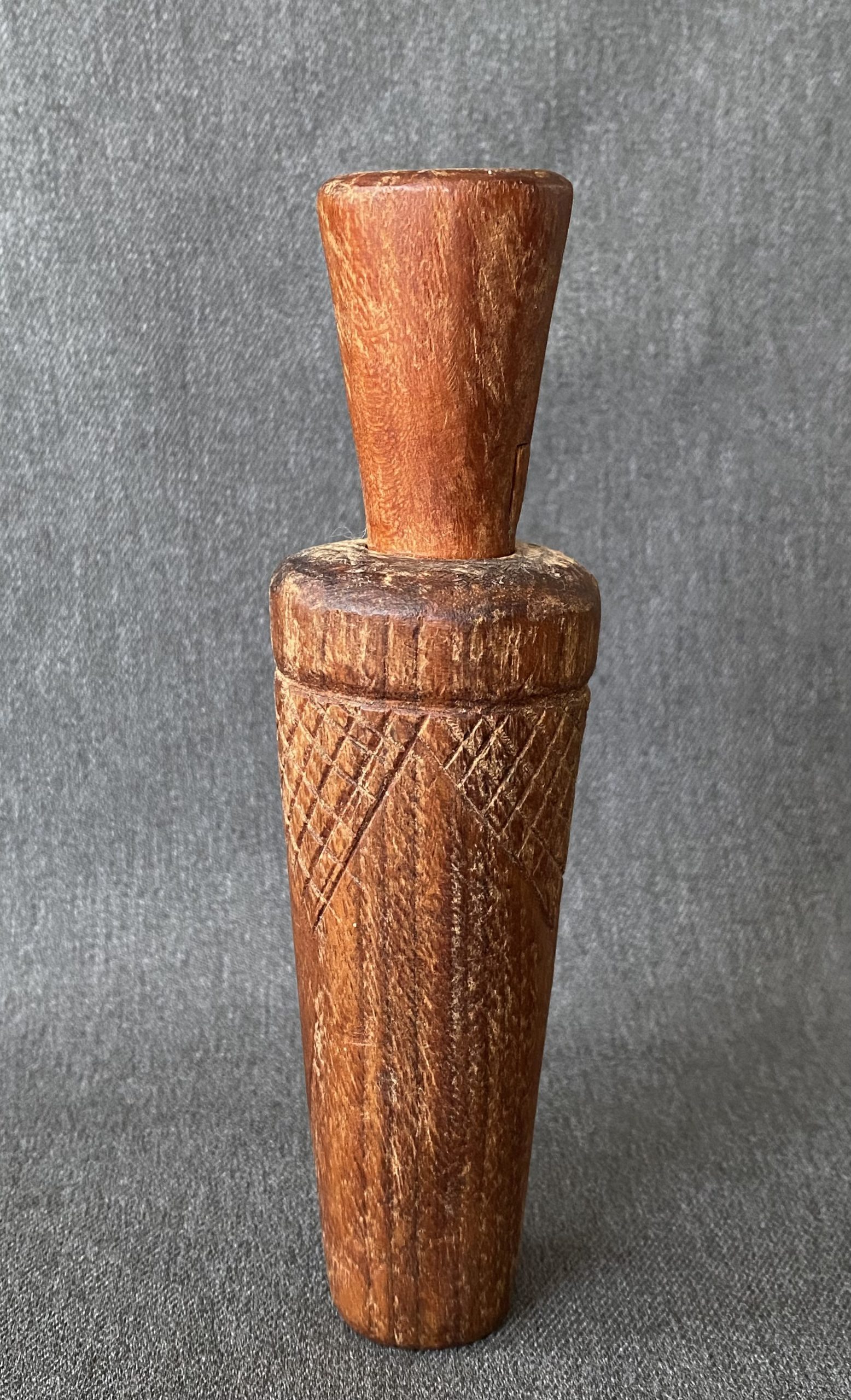 This is a nice checkered call from Bennet Johnson. The call is Reelfoot style with a copper reed.