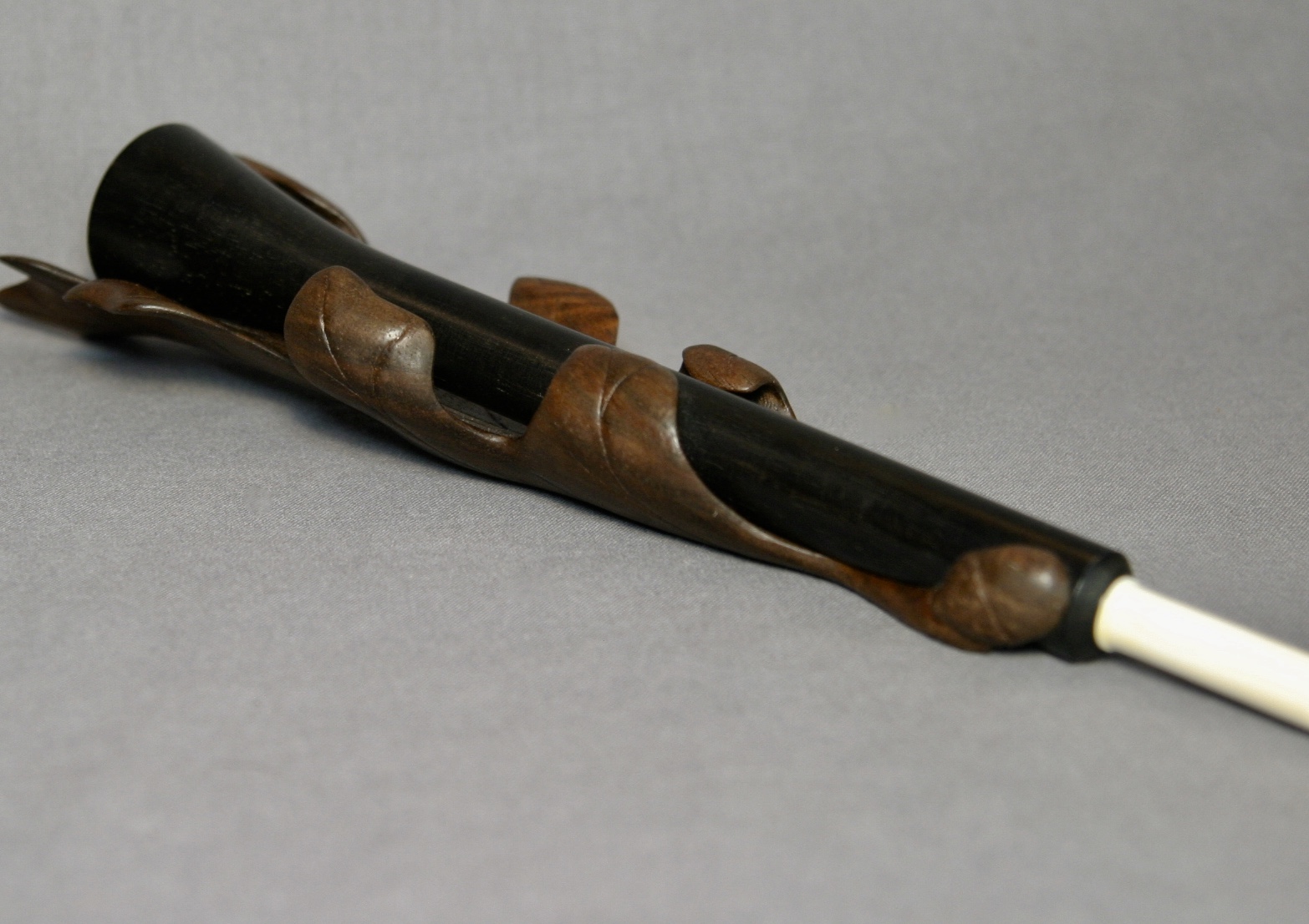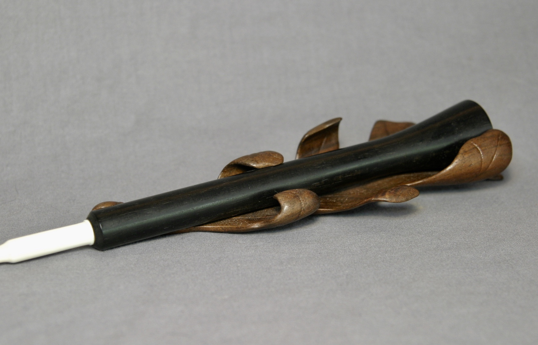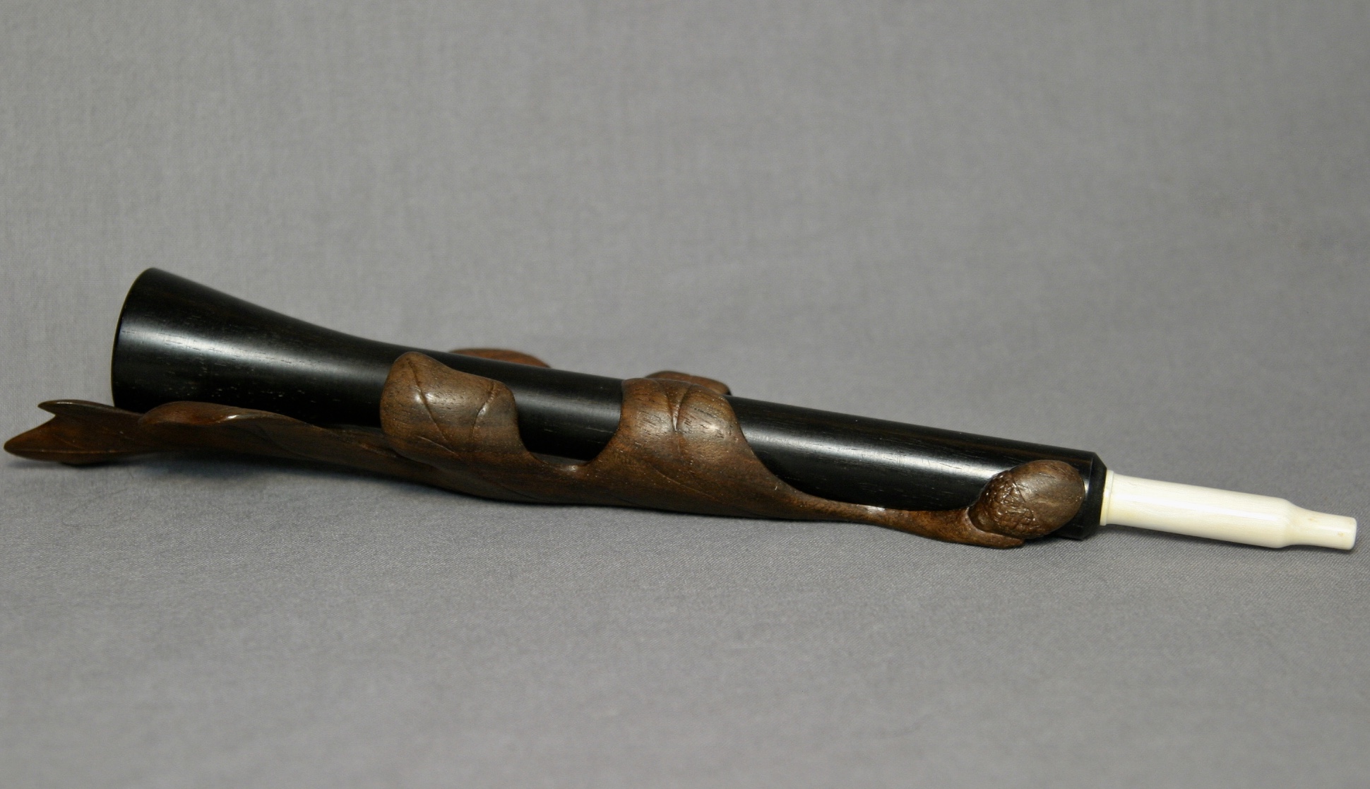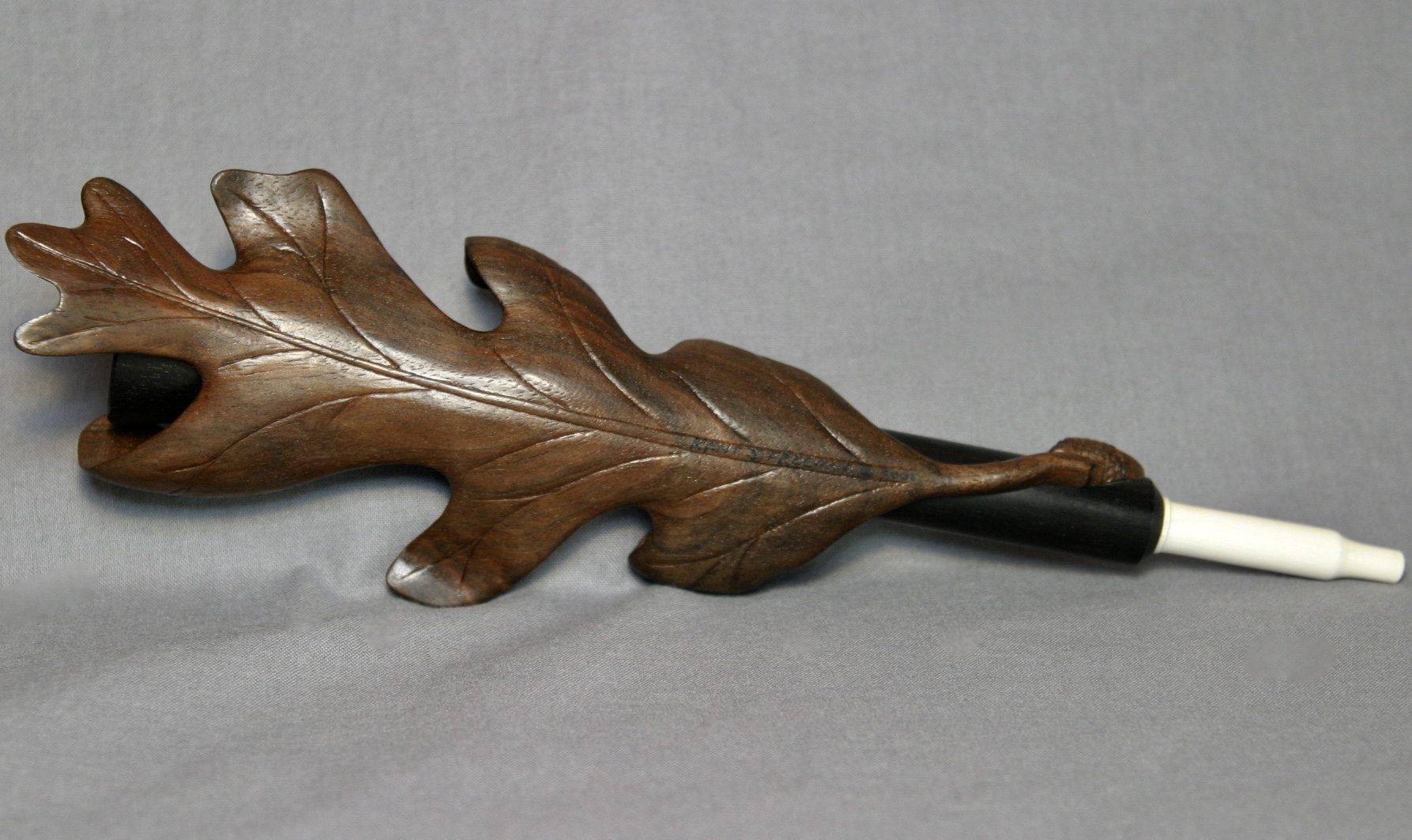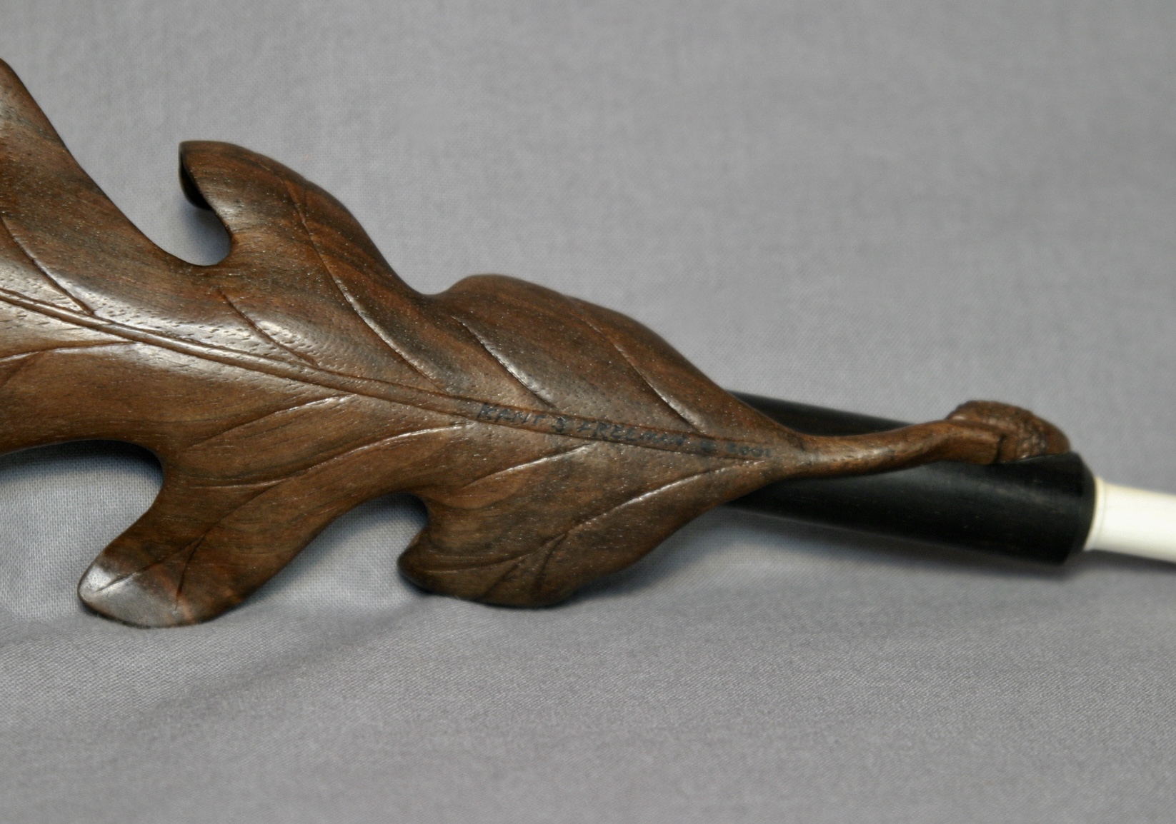 What a beautiful call from Kent Freeman! The dark turned yelper is enveloped in a beautifully hand carved oak leaf.