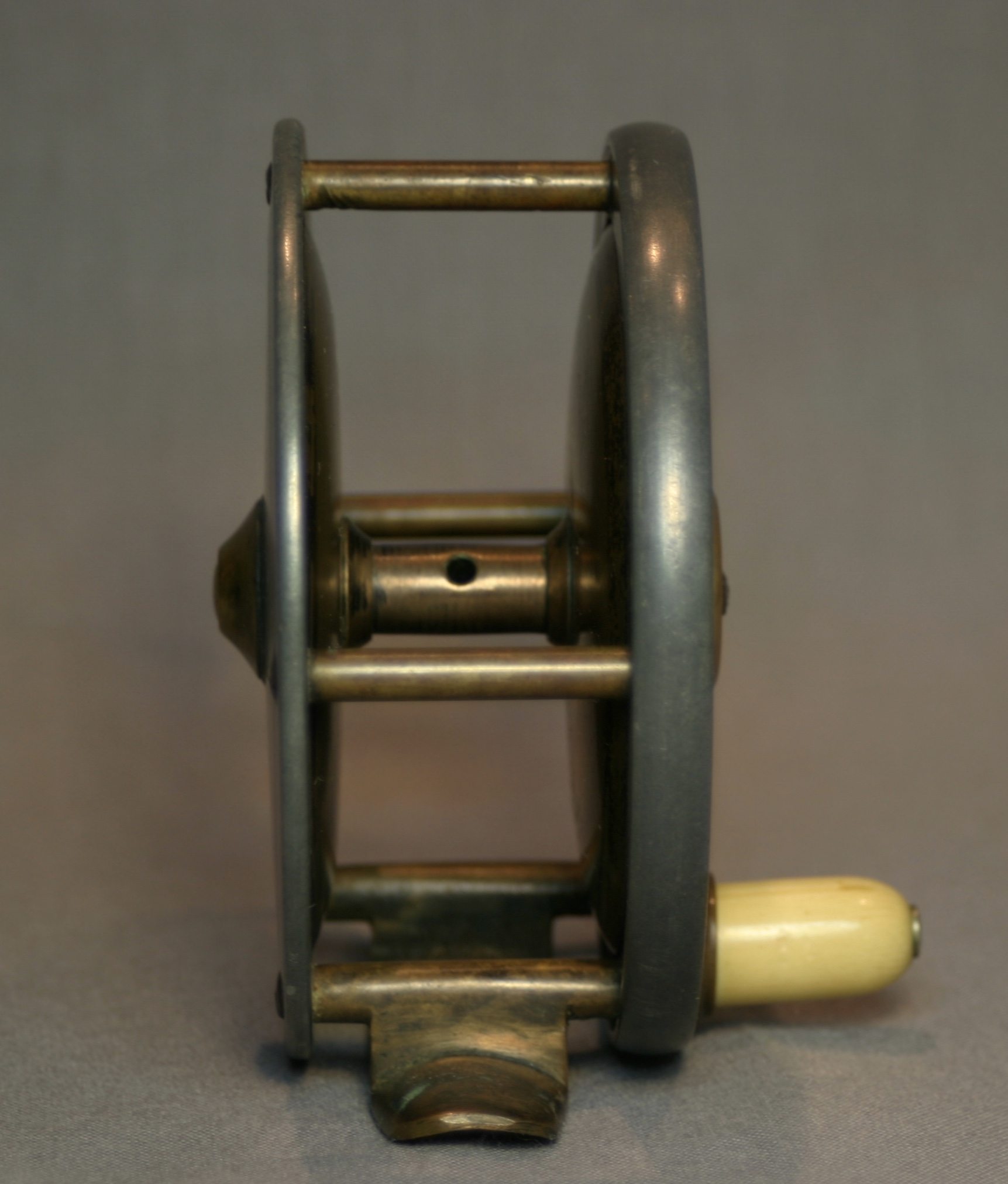 This reel has a beautiful patina and rich brass hardware, including a smooth brass foot. A very attractive and collectible reel made in the late 1800s. We’ve been told this reel was made in 1897.