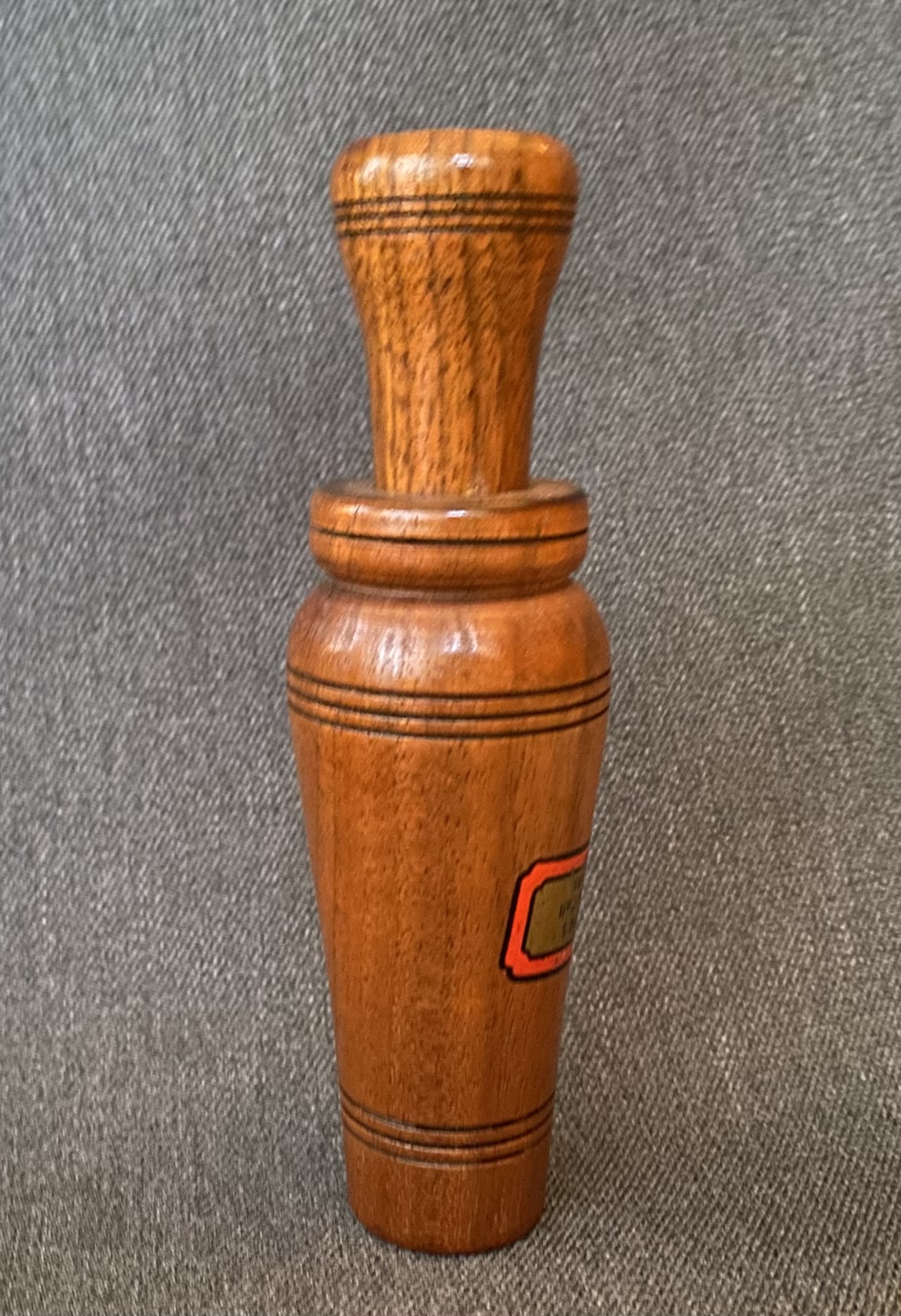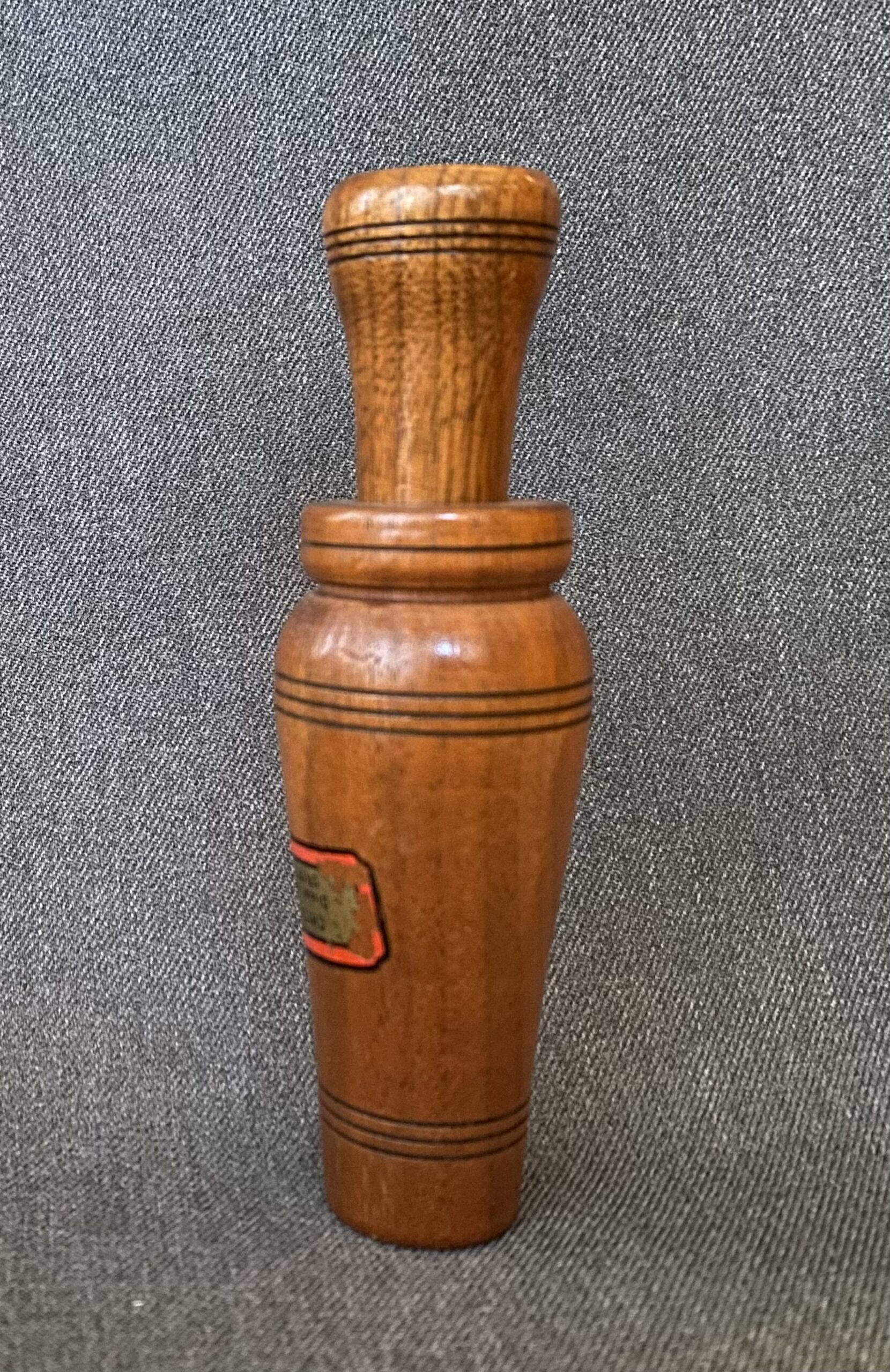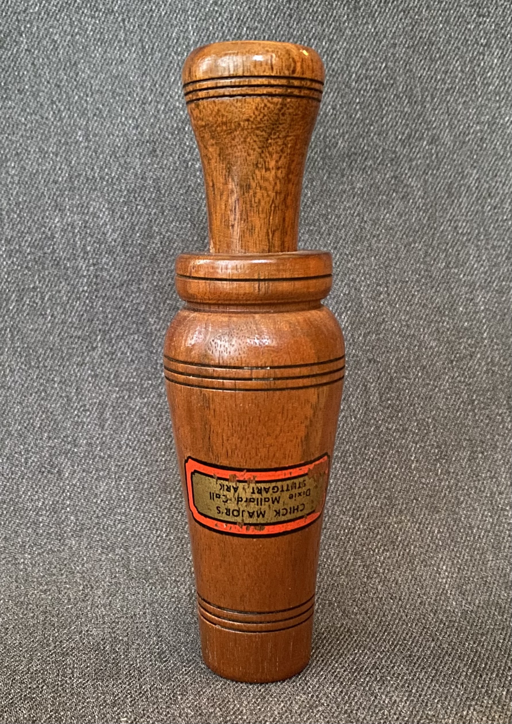 This is a great Dixie Mallard Call from Chick Major. It has a water label with rare cut corners. The call is Arkansas style with a black reed.