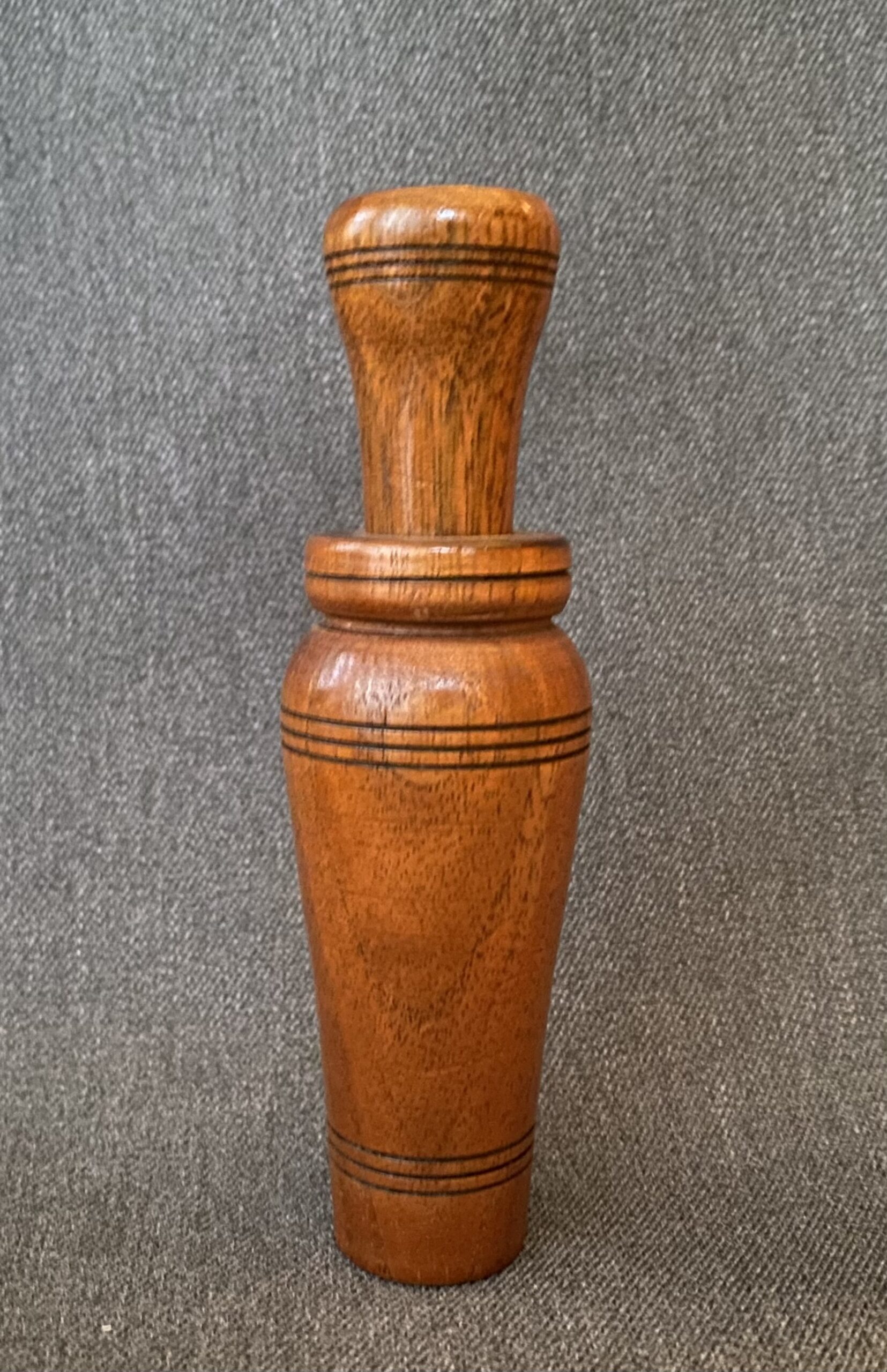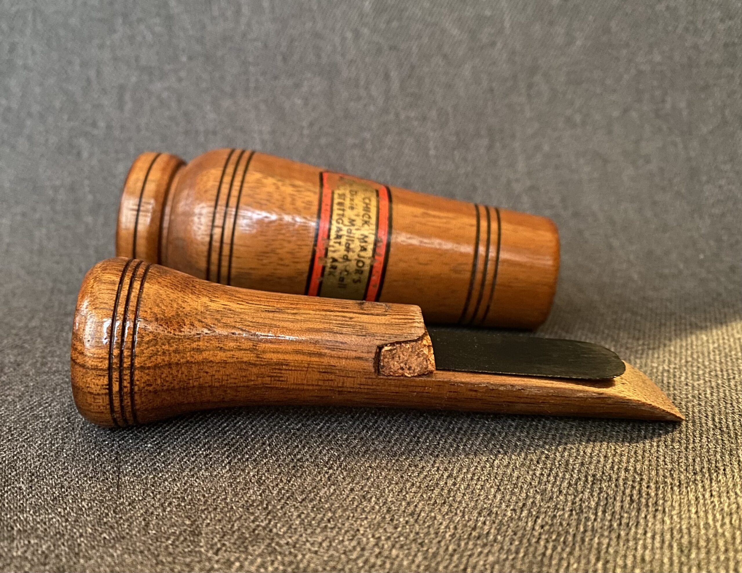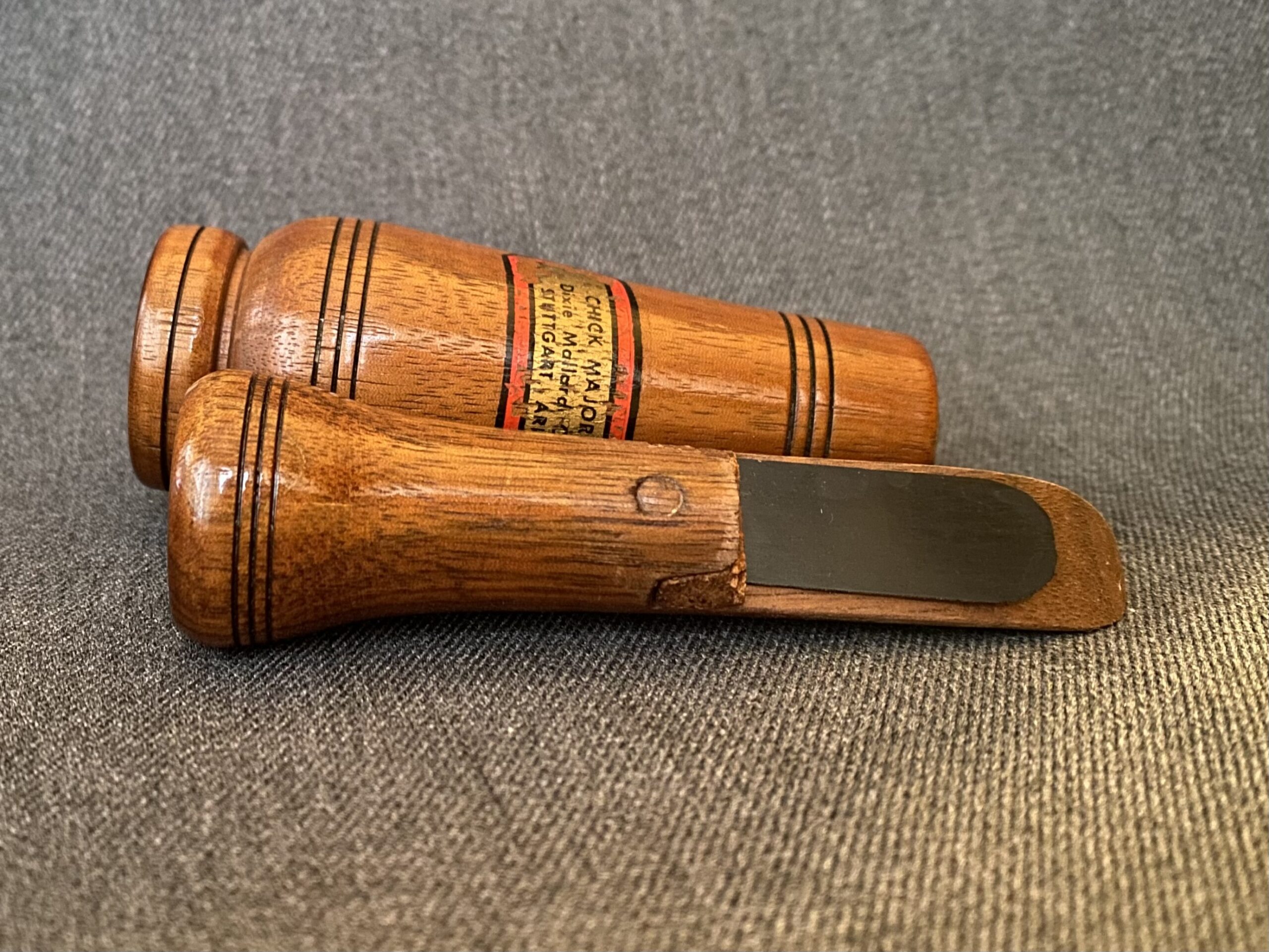 This is a great Dixie Mallard Call from Chick Major. It has a water label with rare cut corners. The call is Arkansas style with a black reed.