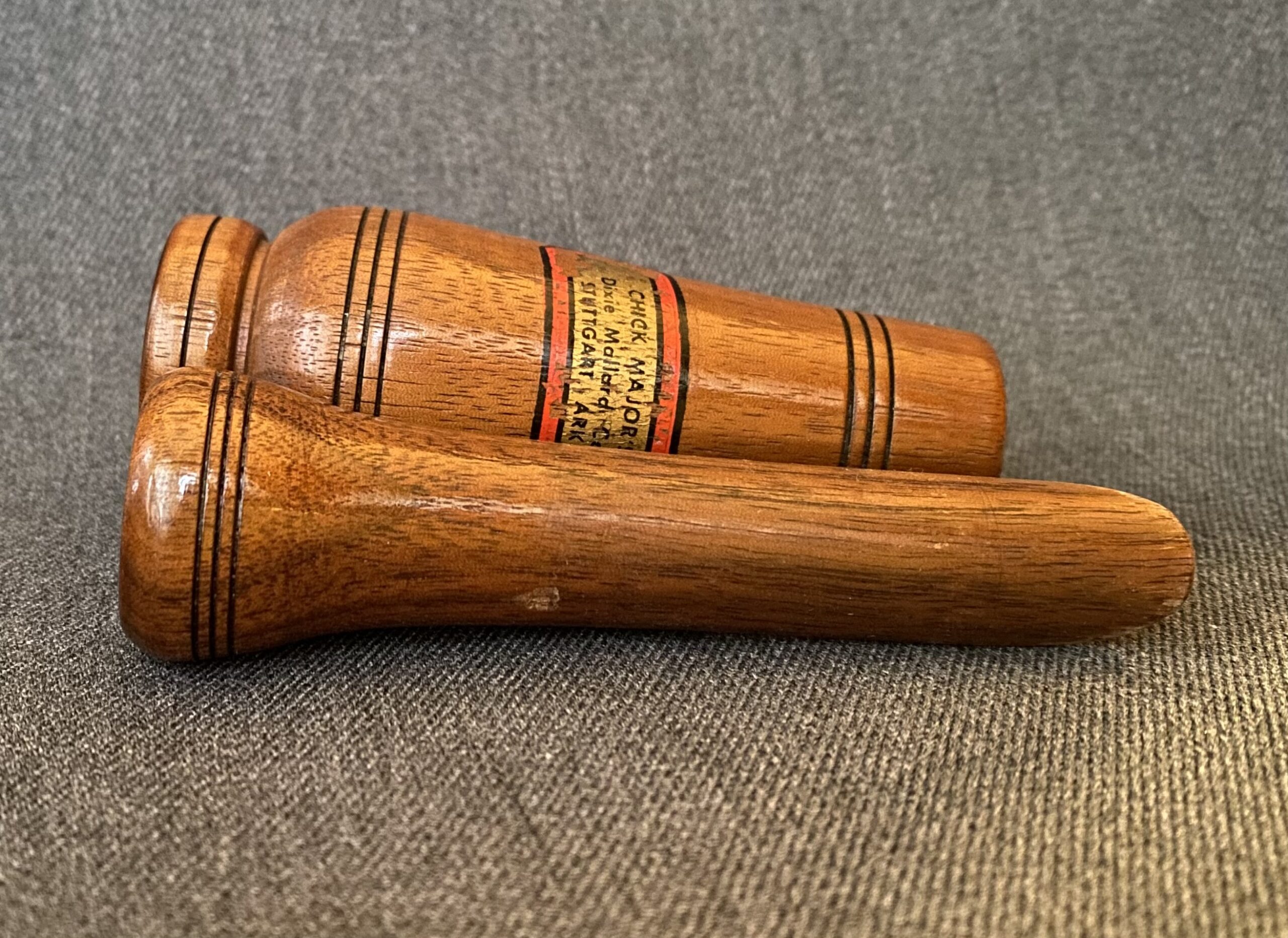 Water label: Chick Major’s, Dixie Mallard Call, Stuttgart, Tenn.