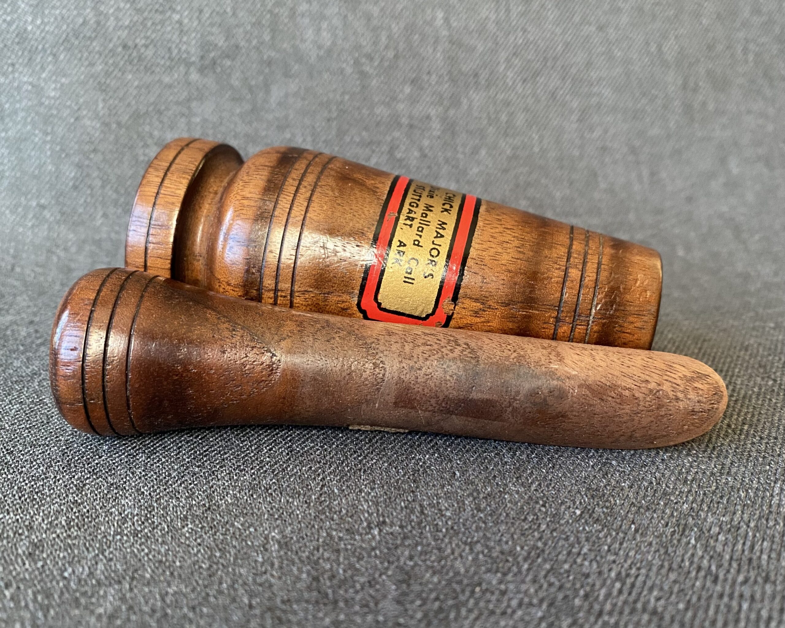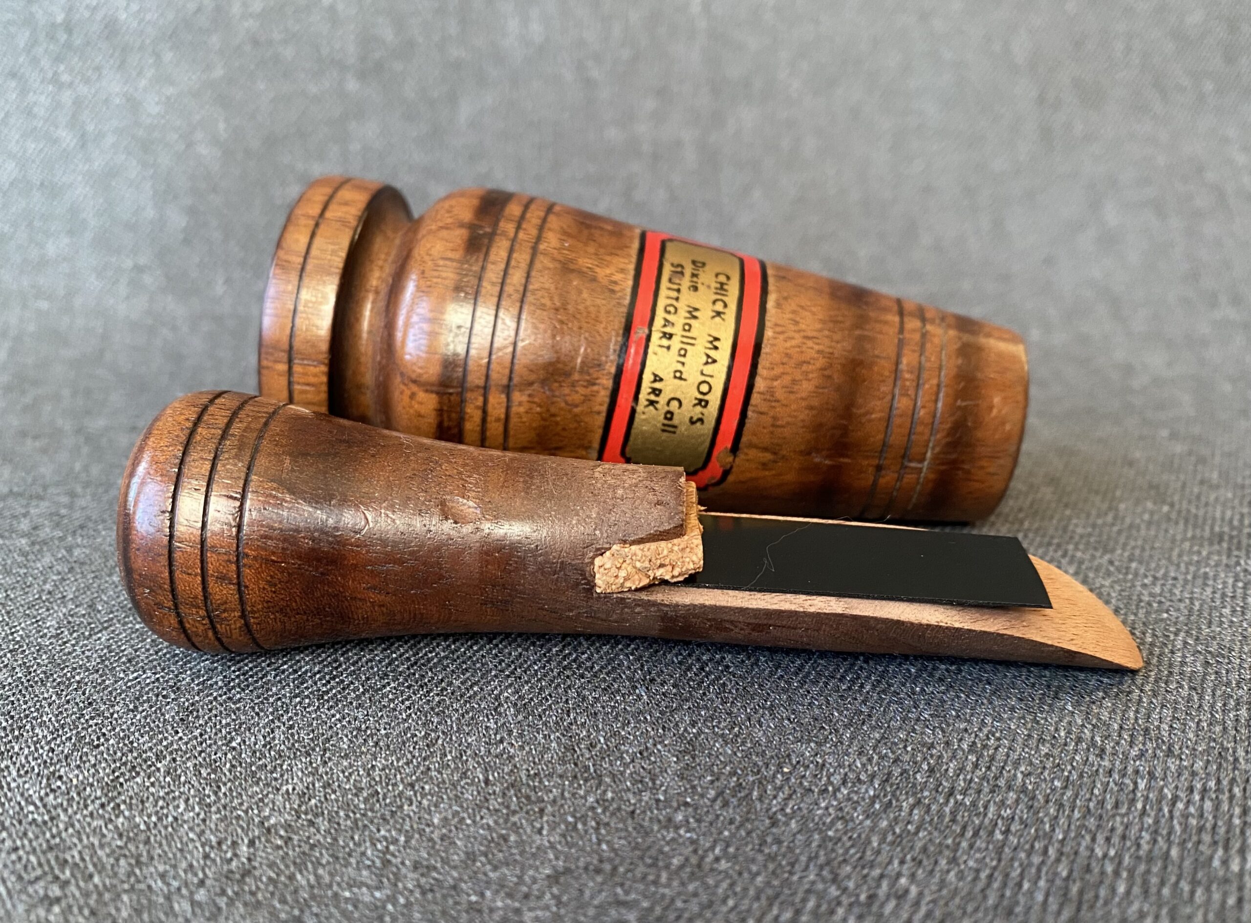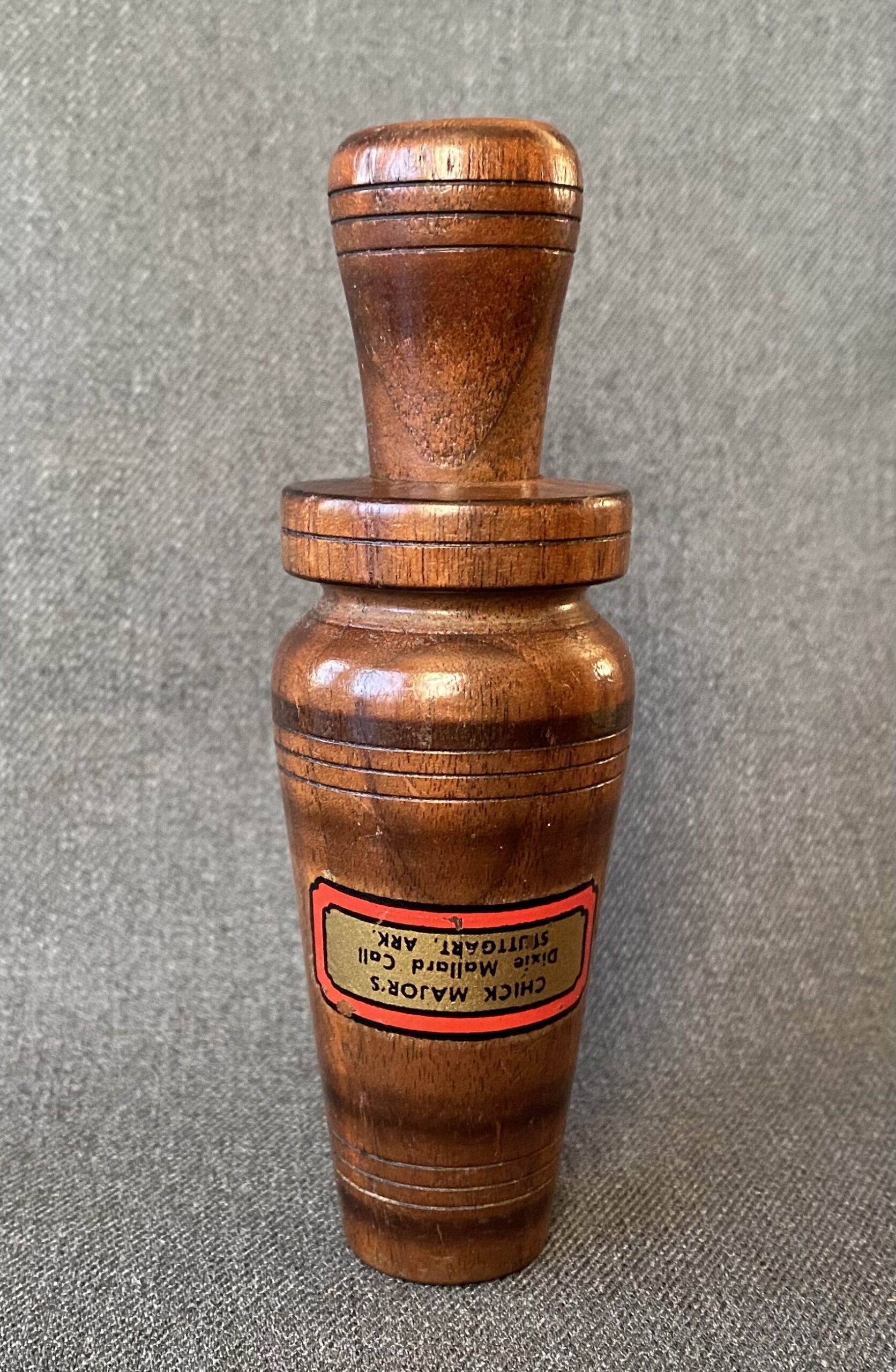 Water label: CHICK MAJOR’S, Dixie Mallard Call, STUTTGART, ARK.