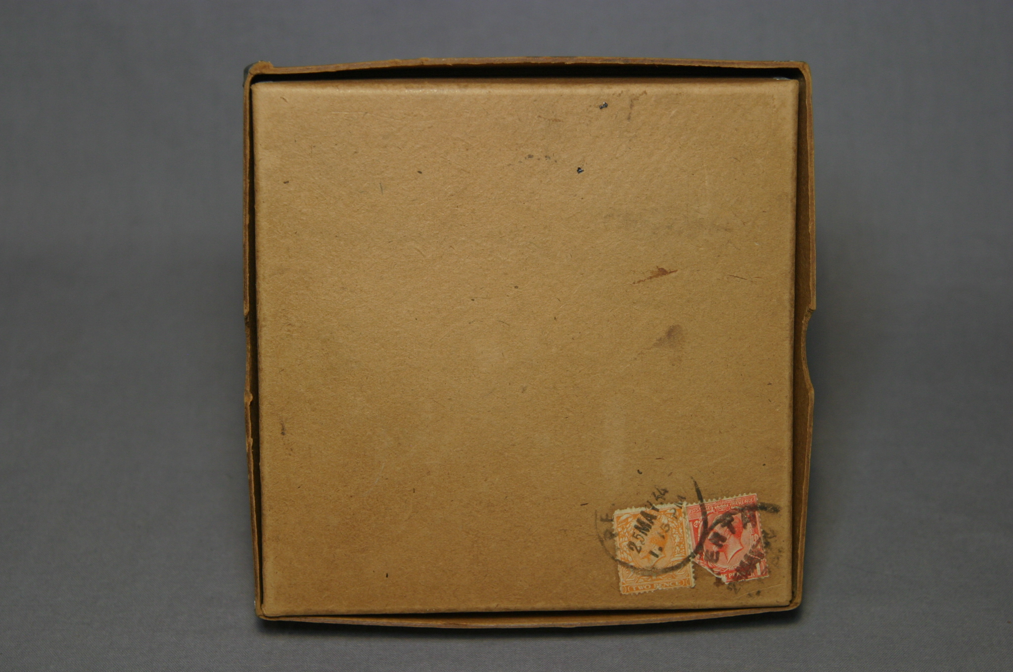 A good looking shipping box for Malloch of Perth, in great condition! There are two canceled stamps on the back of the box.