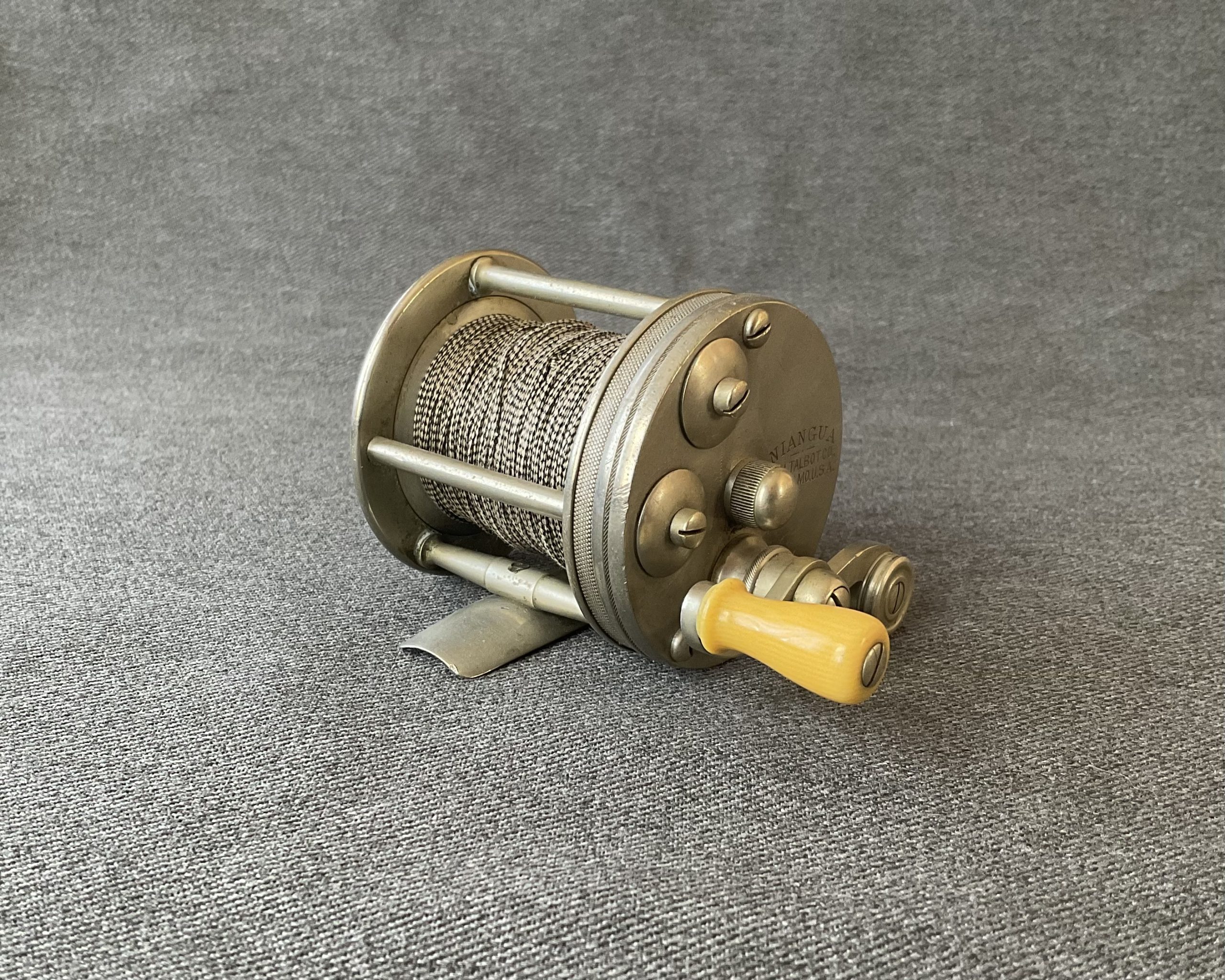 A very nice Niangua casting reel from the 1930s. The reel has line and a single handle.