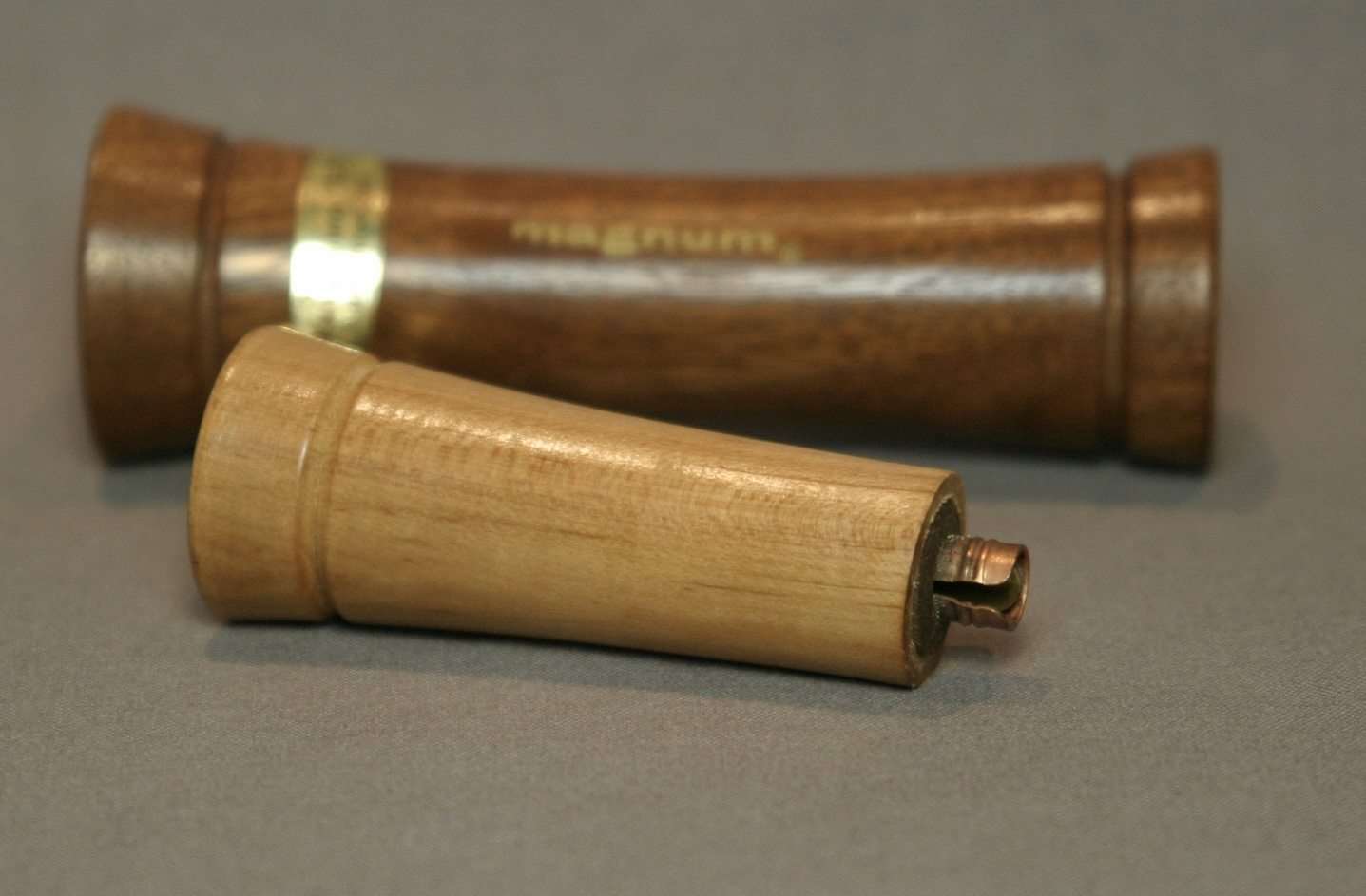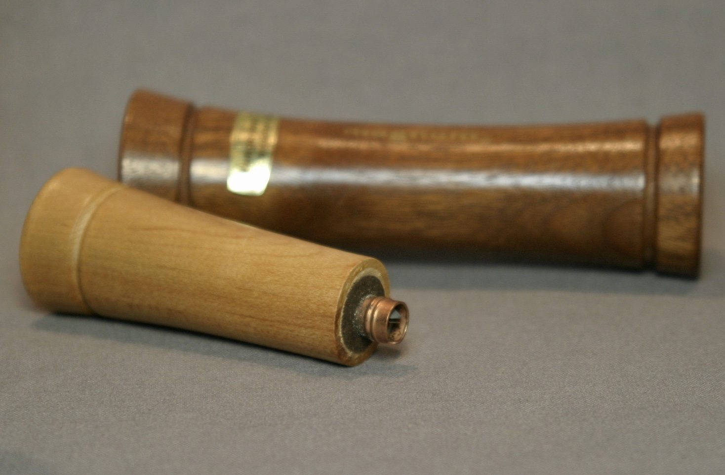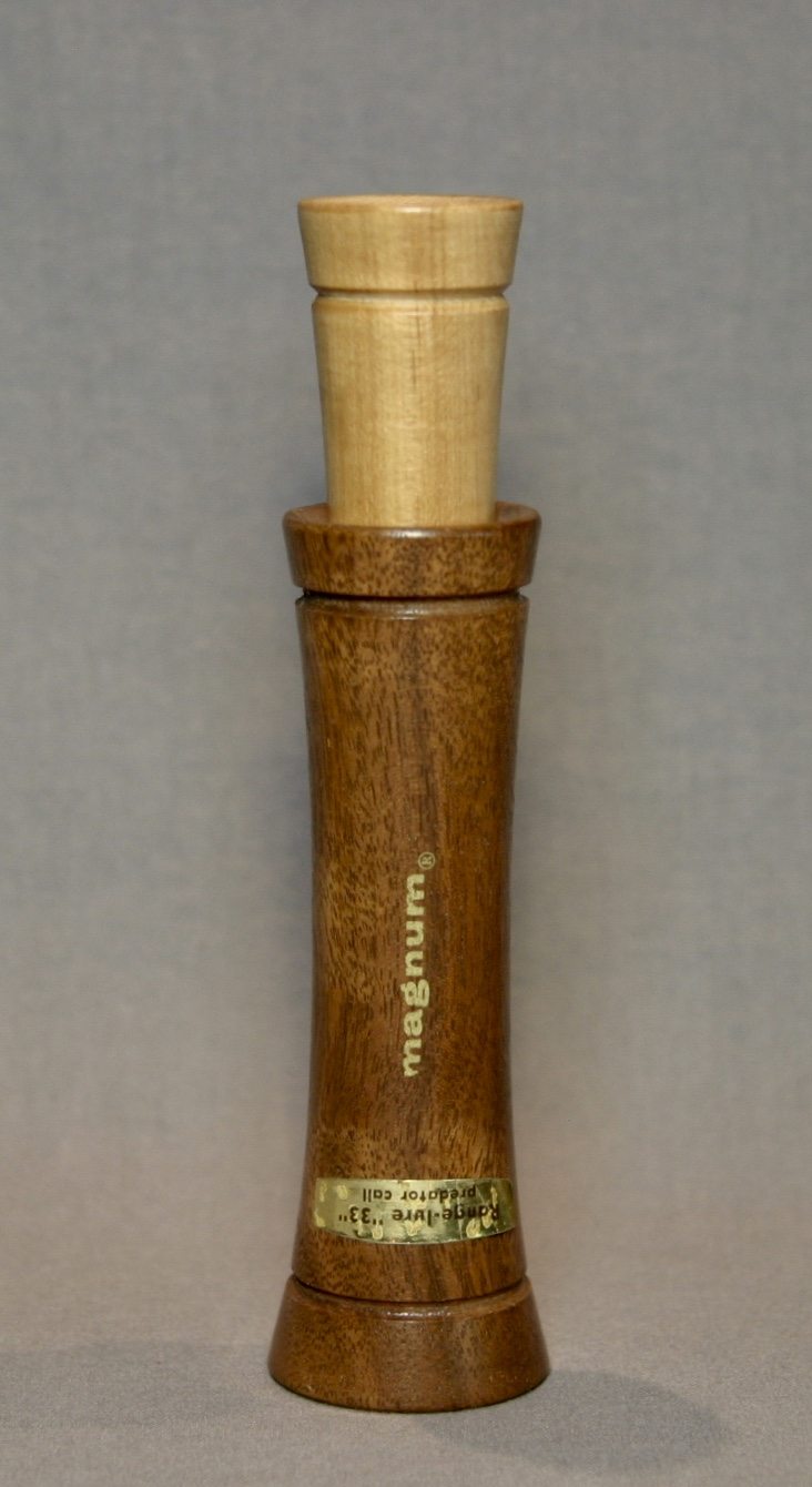 A nice predator call from Olt, the Magnum Range-lure “33”. It is turned from walnut and has a lacquer finish.This is another call from the Otto Meyer collection.