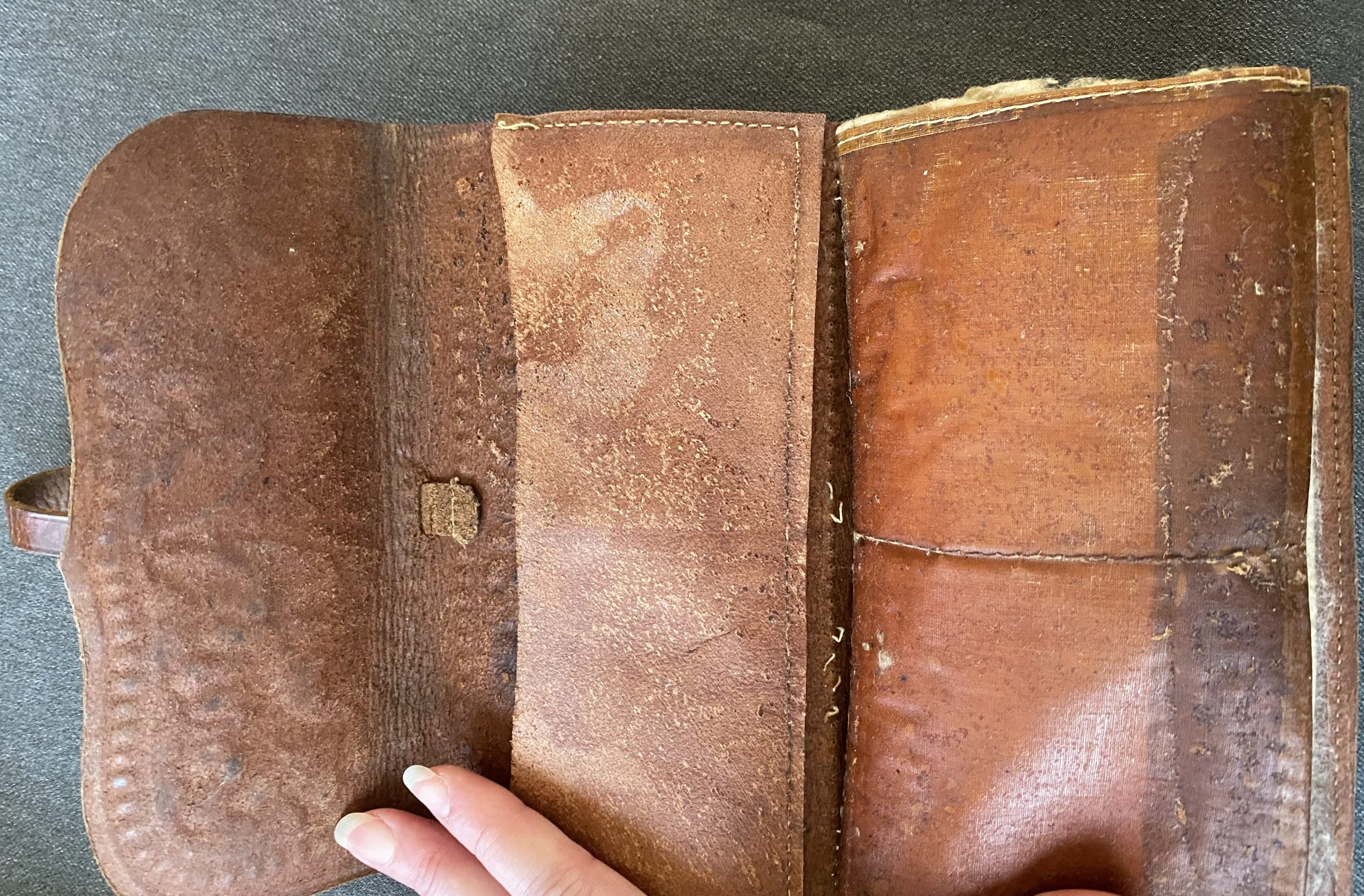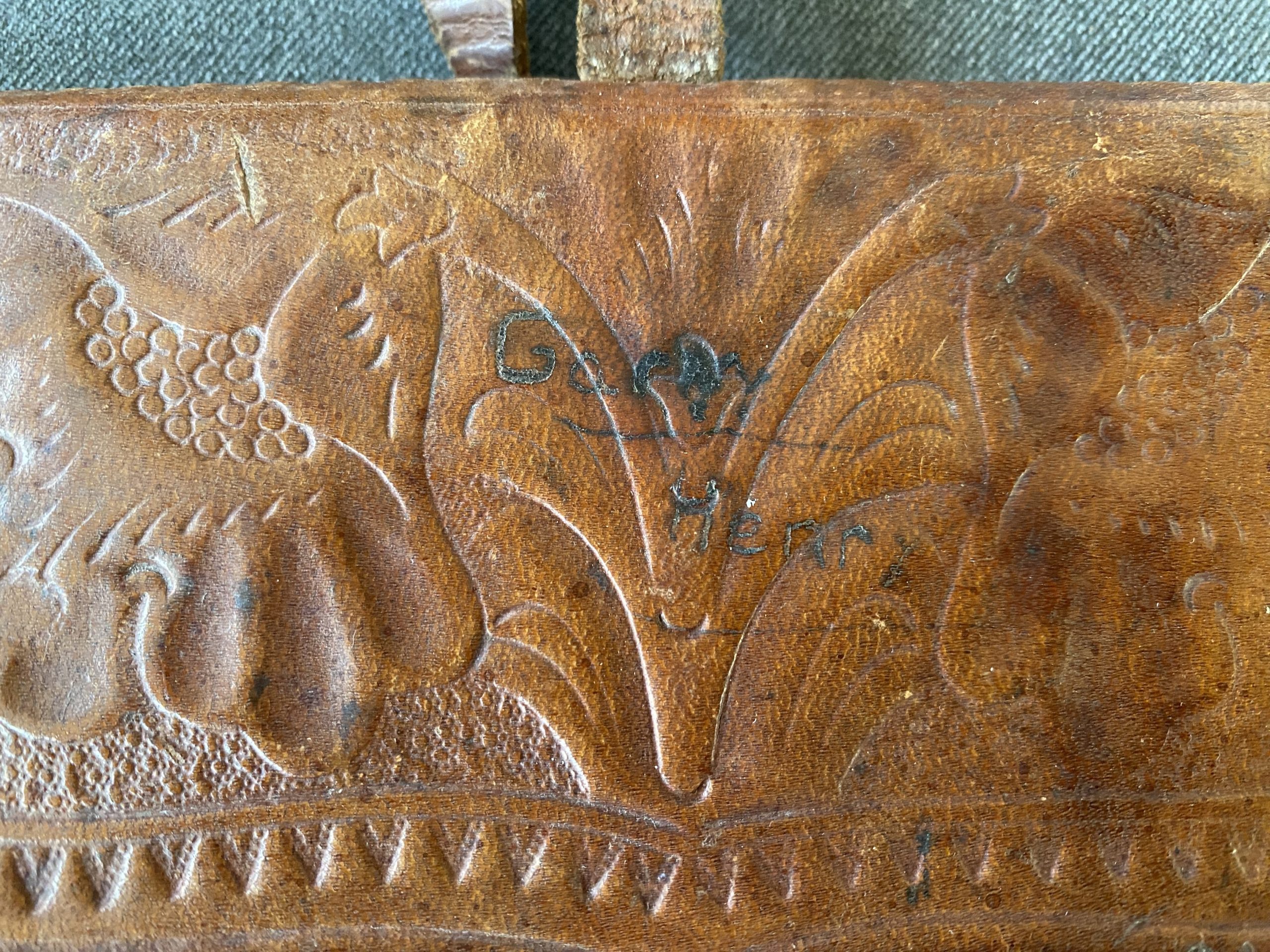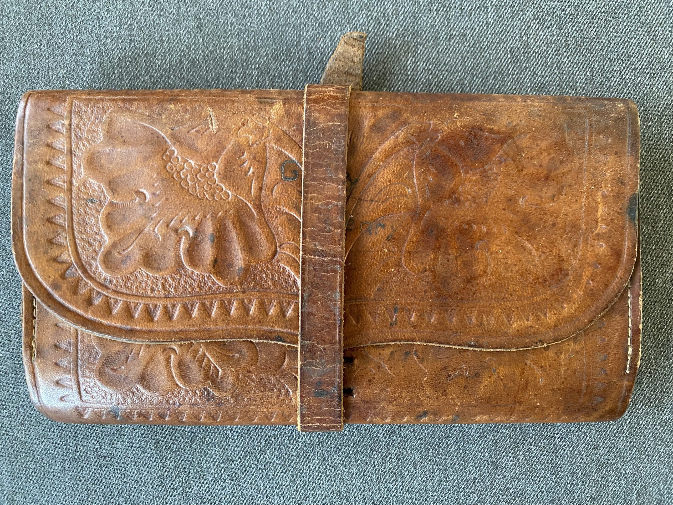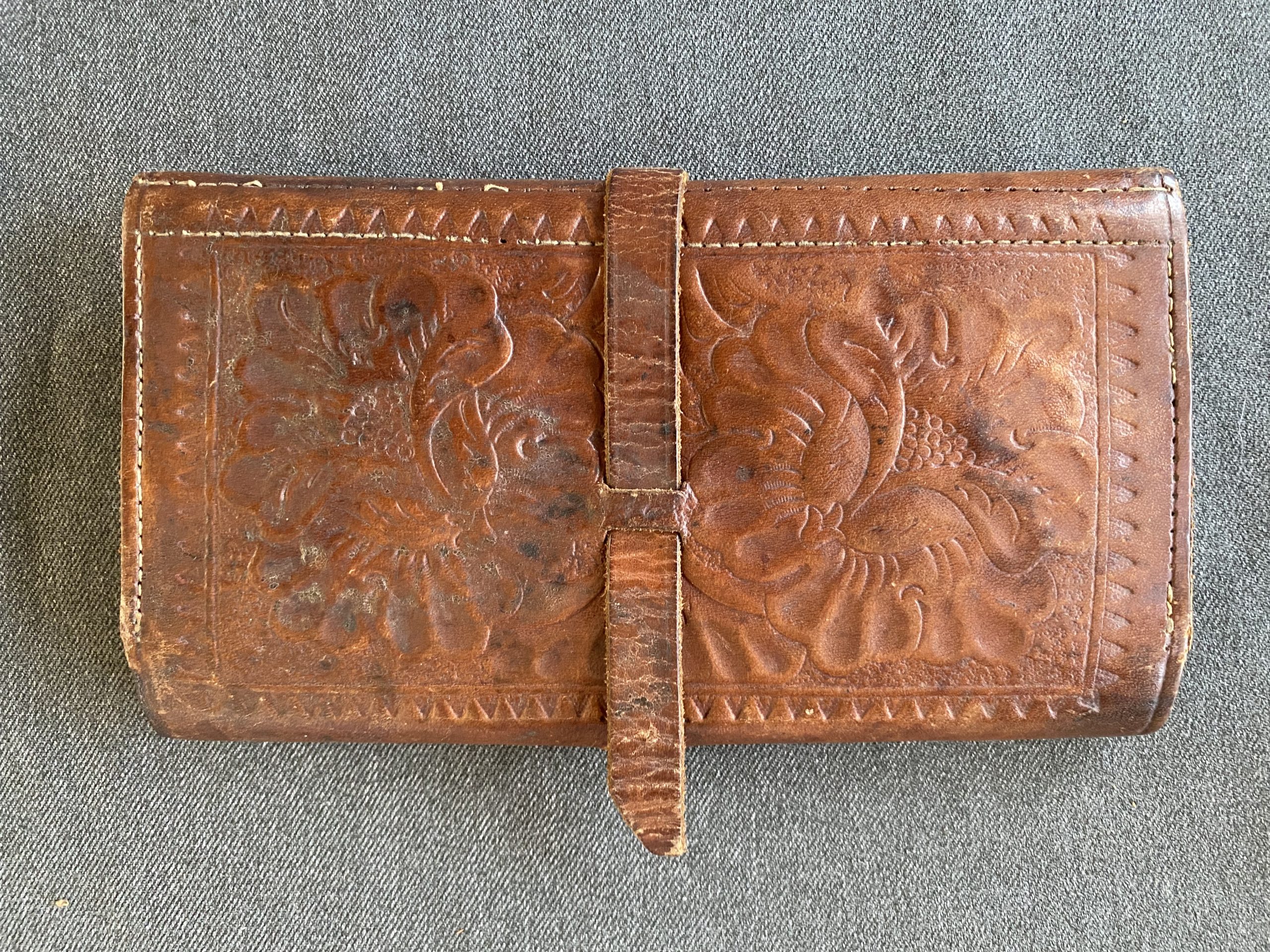 A beautiful embossed Oregon saddle makers wallet. It has multiple felts in fair condition.