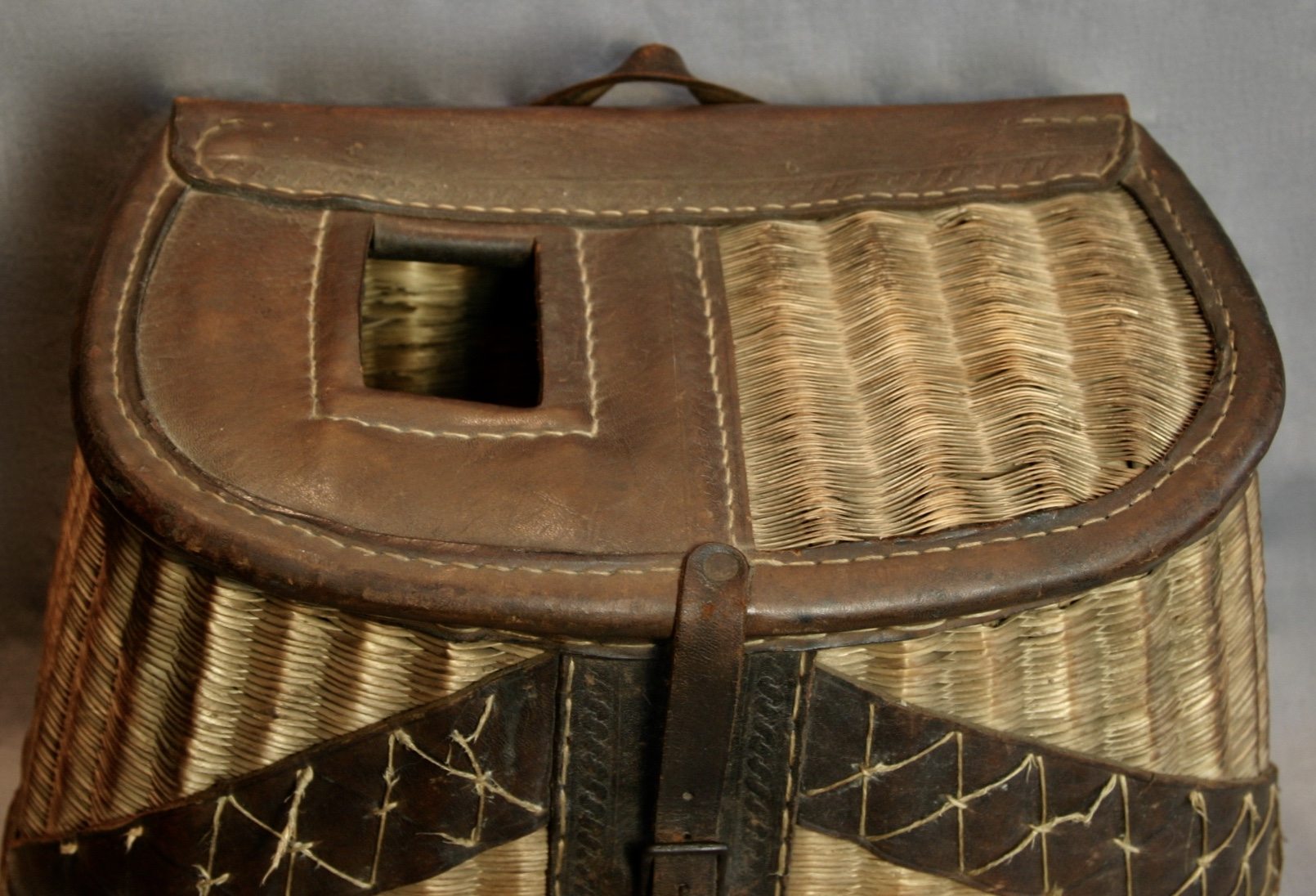 This Oregon saddlemakers creel has “S” tooling similar to McMonie creels, and “X” stitching with string similar to Clark’s creels. It’s a very good looking, unique creel in extremely good condition being around 100 years old. It’s similar to a creel pictured on Page 119 in The Art of the Creel.