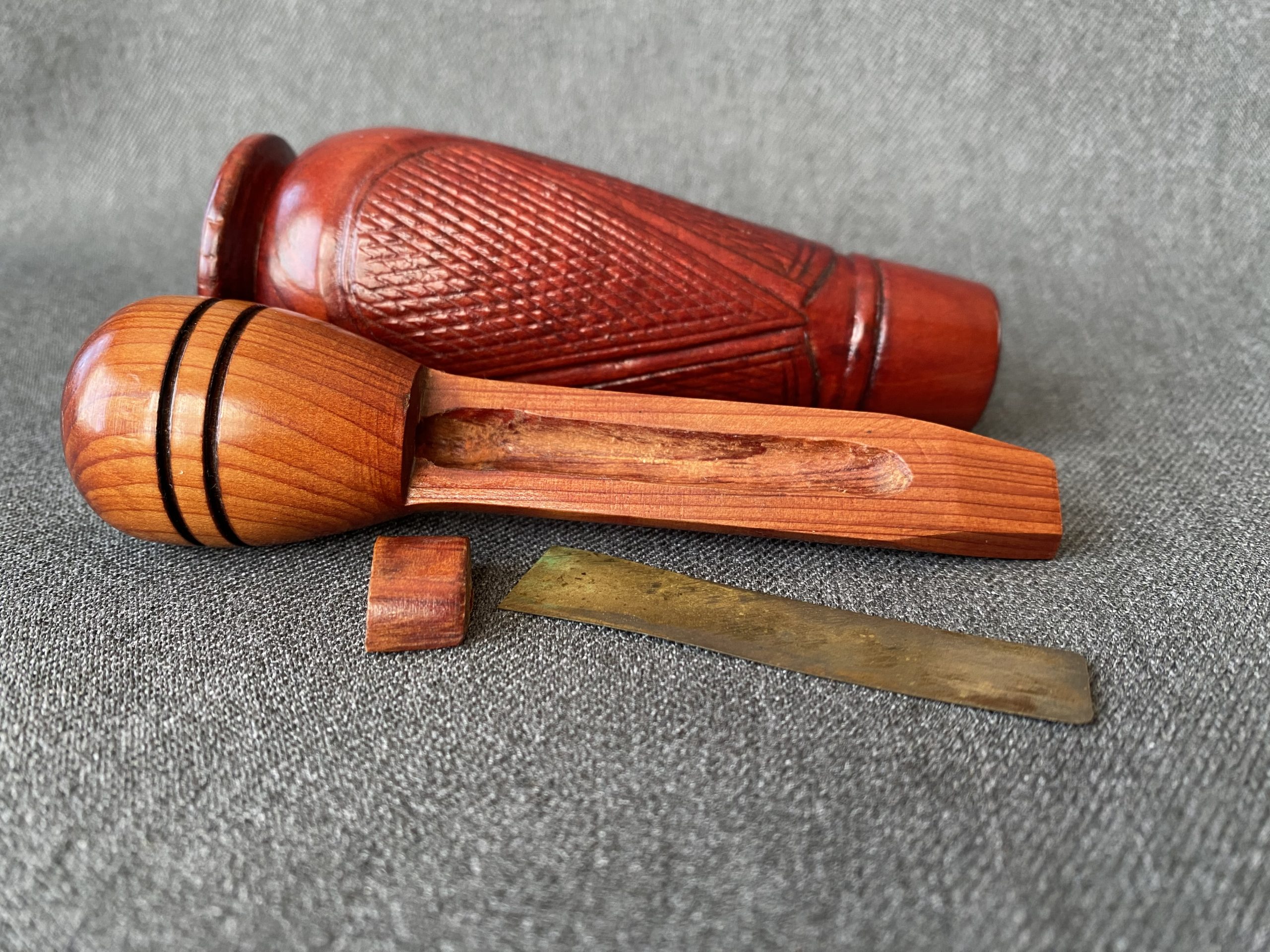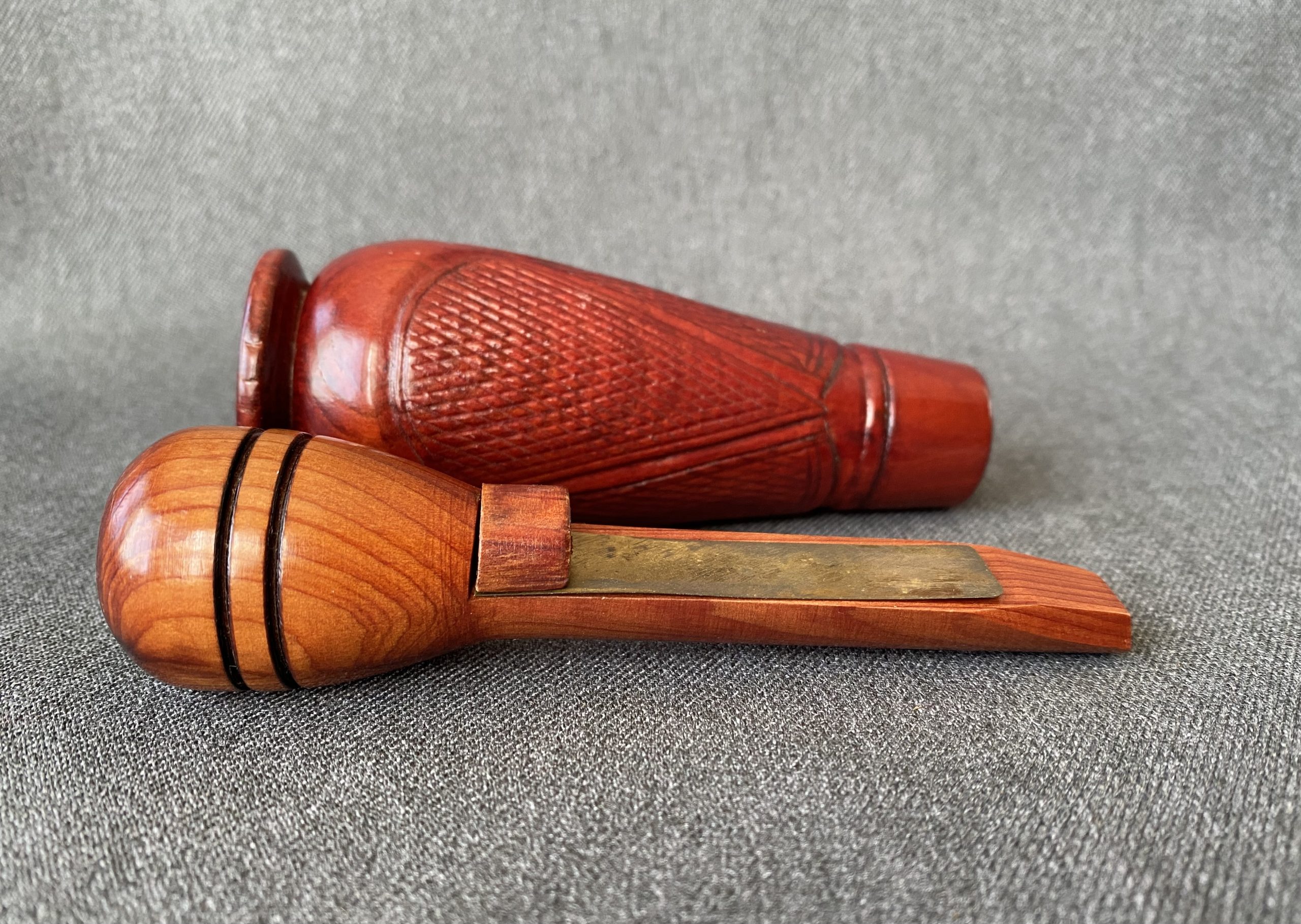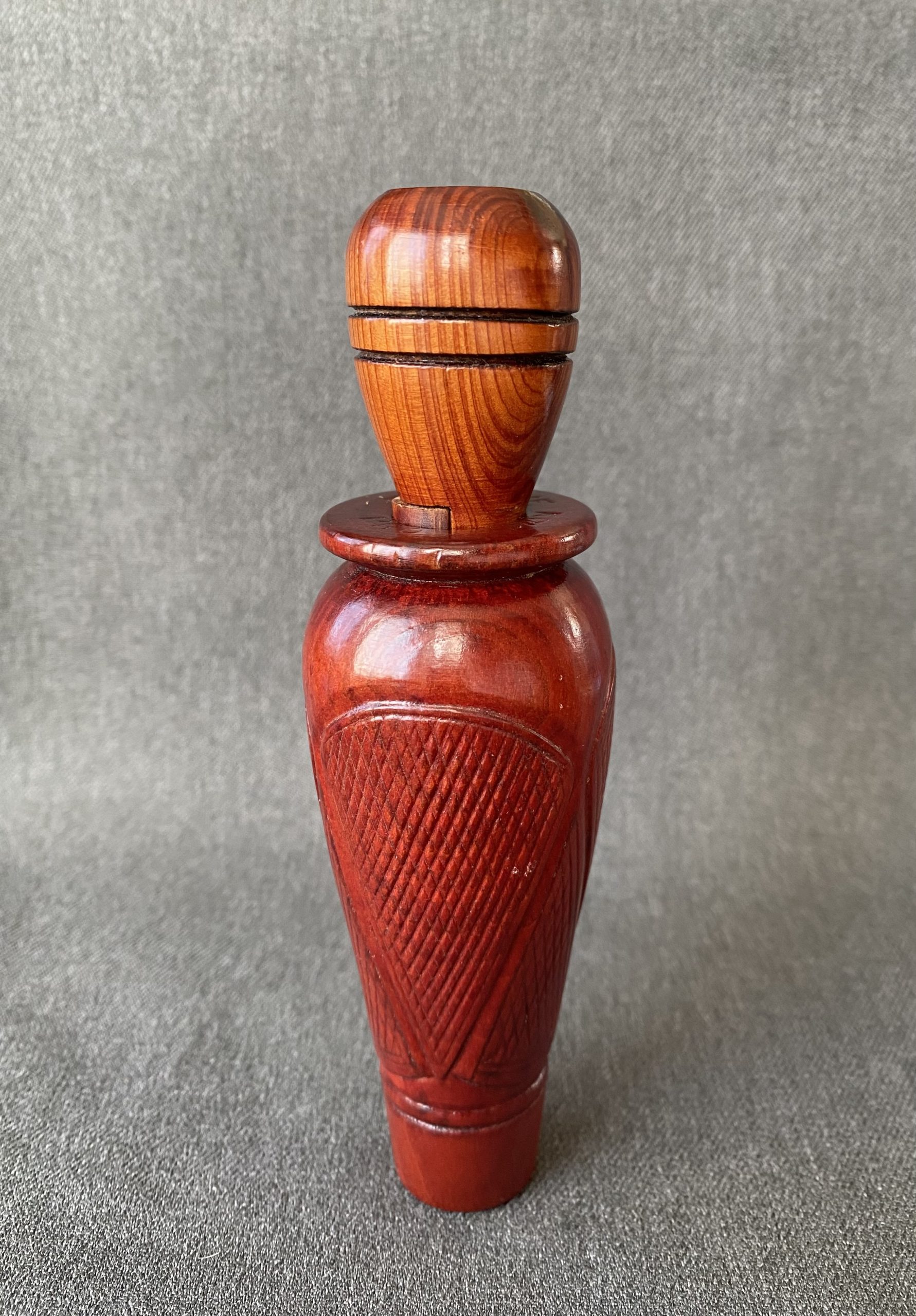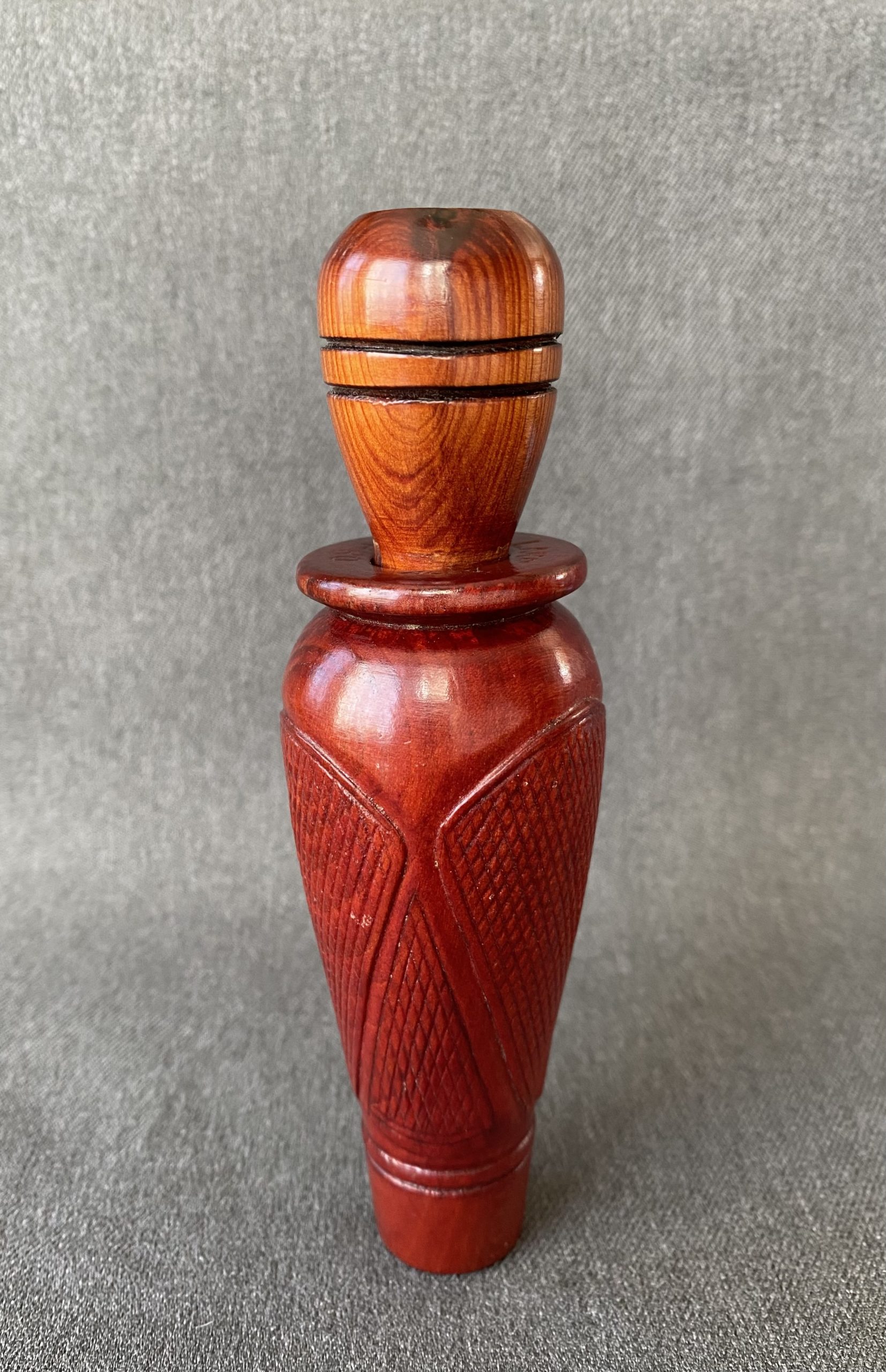 A beautiful three paneled checkered call from Lowell Polston. The call is Reelfoot style and has a brass reed.