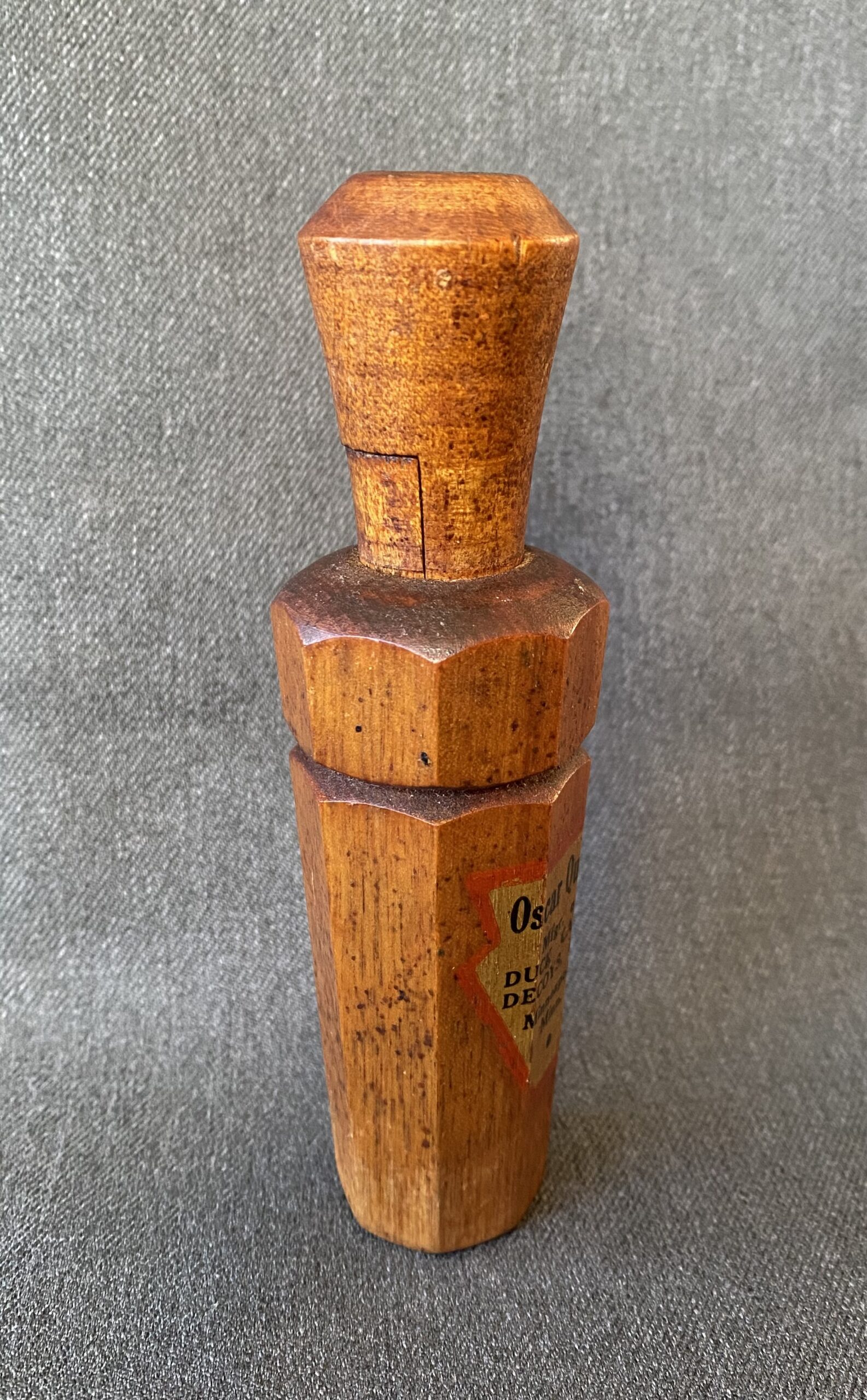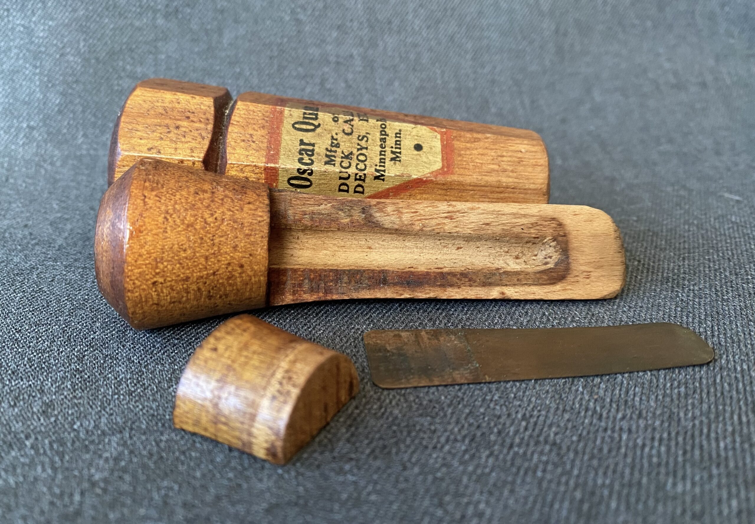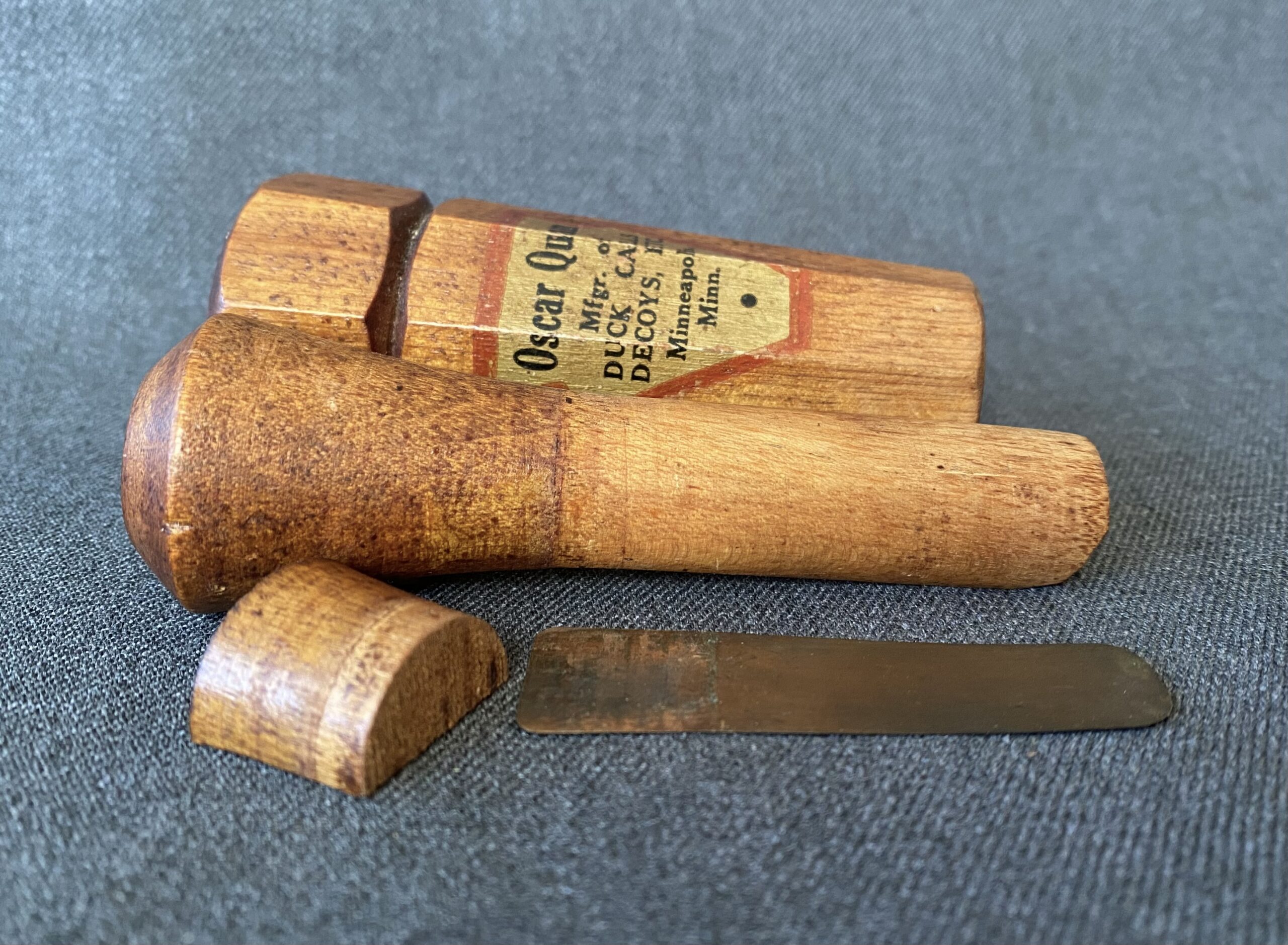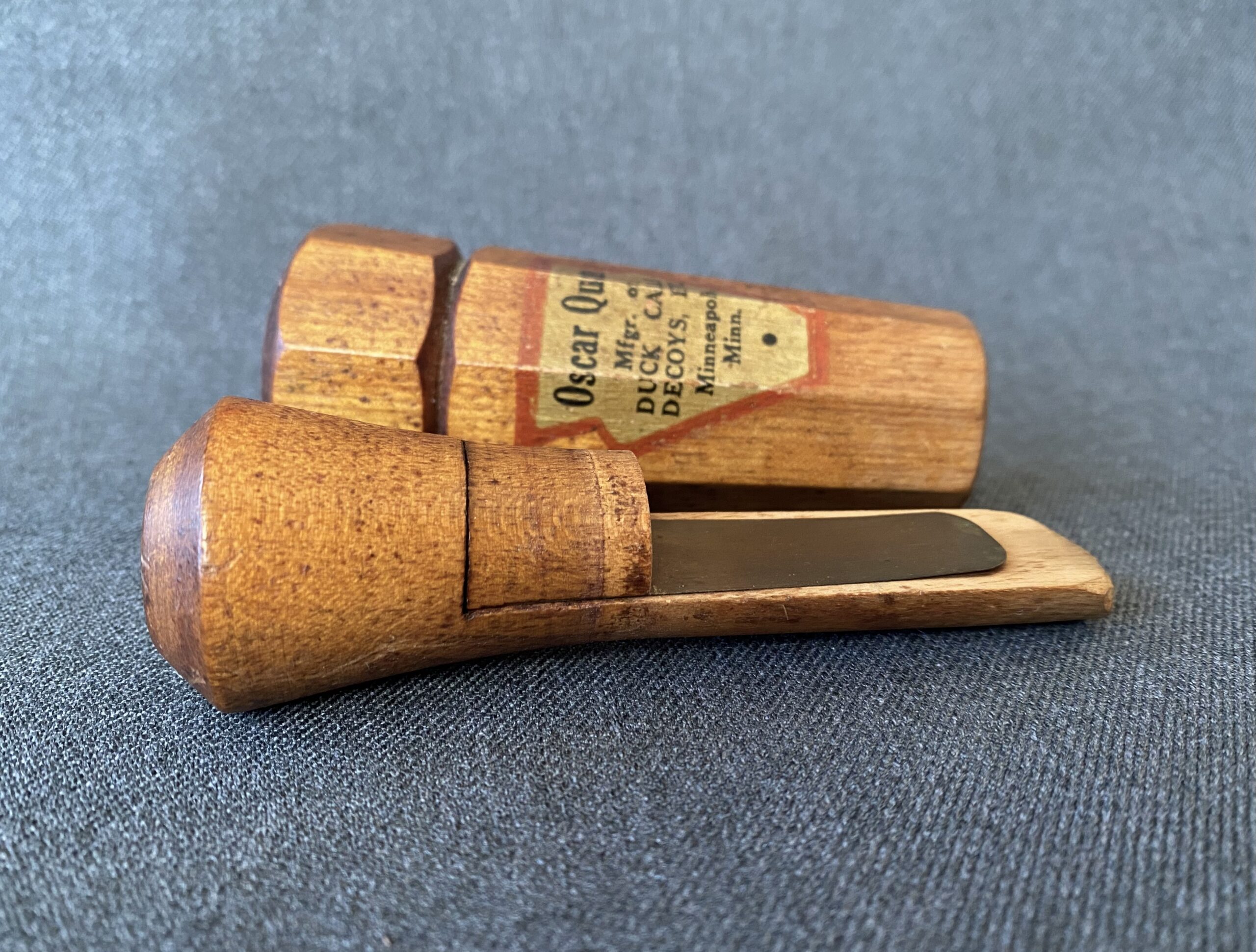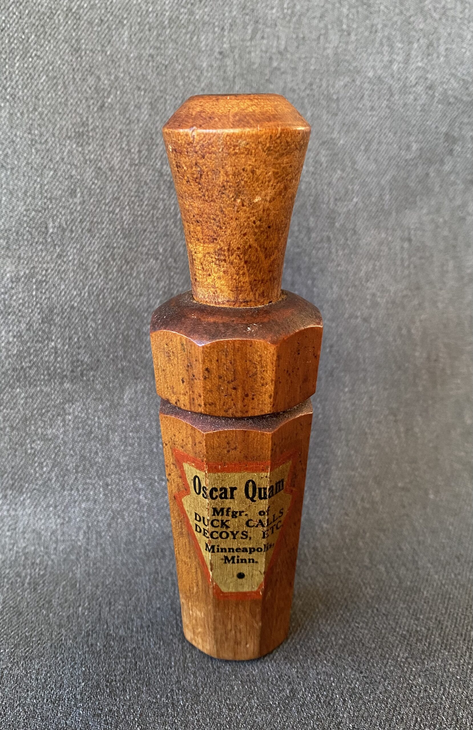 Water label: Oscar, Quam, Mfgr. of Duck Calls, Decoys, Minneapolis, Minn.