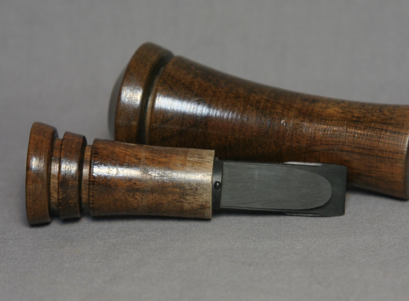 A walnut call in wonderful condition from Rip Fanning, an exceptional maker. The call has a unique plastic reed and has a great sound!