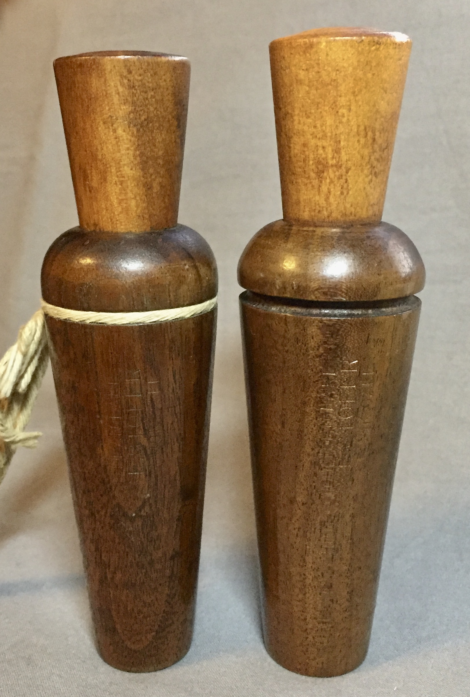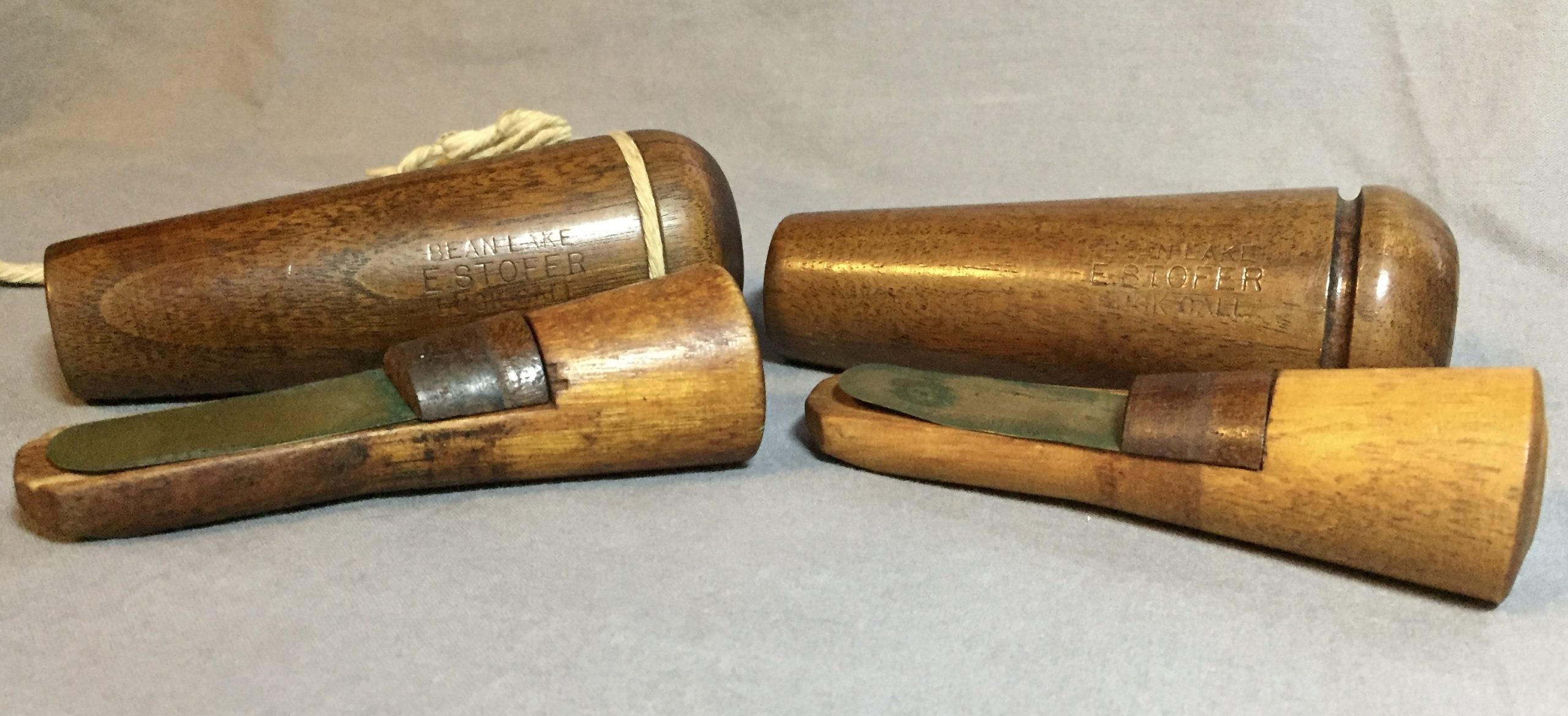 A nice pair of E Stofer duck calls, Reelfoot style.
