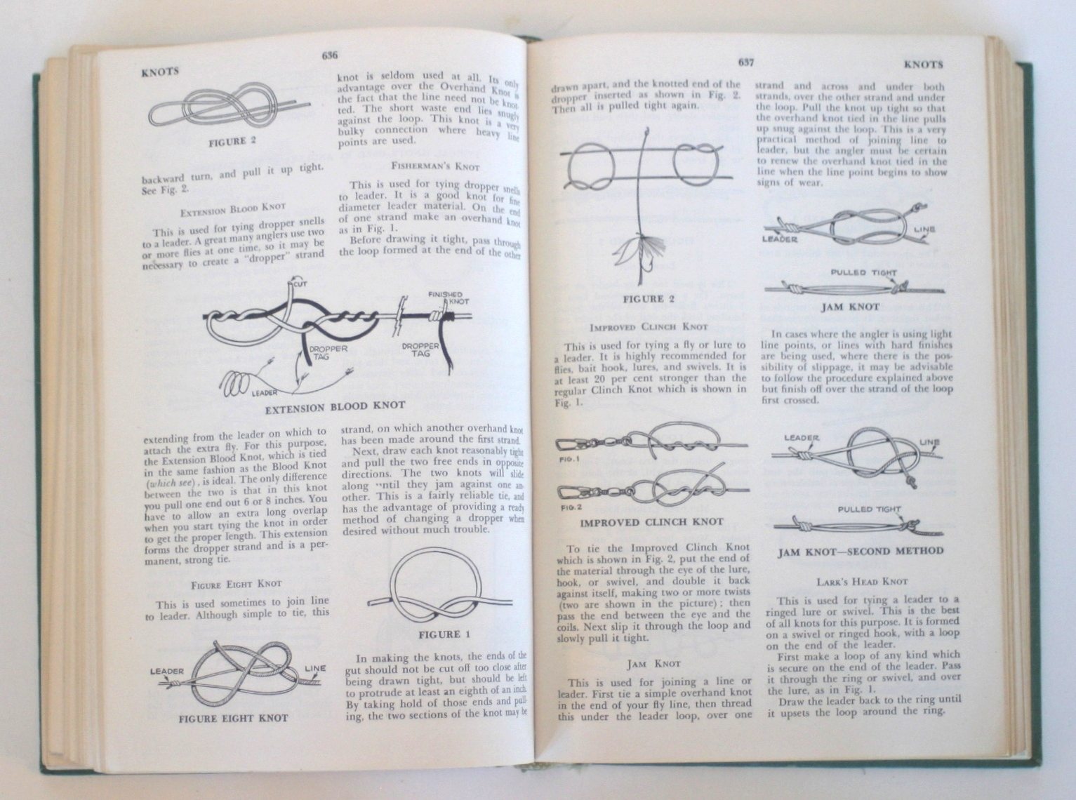 The Wise Fishermen’s Encyclopedia, an encyclopedia handbook for fishermen covering the game fish of the world and how to catch them. A complete encyclopedia on all aspects of fishing, making bamboo rods, reels, species of fish, casting, flies, knots, bait, fresh and salt water tackle, lines, trolling, etc. Full of color illustrations, and drawings to illustrate terms.