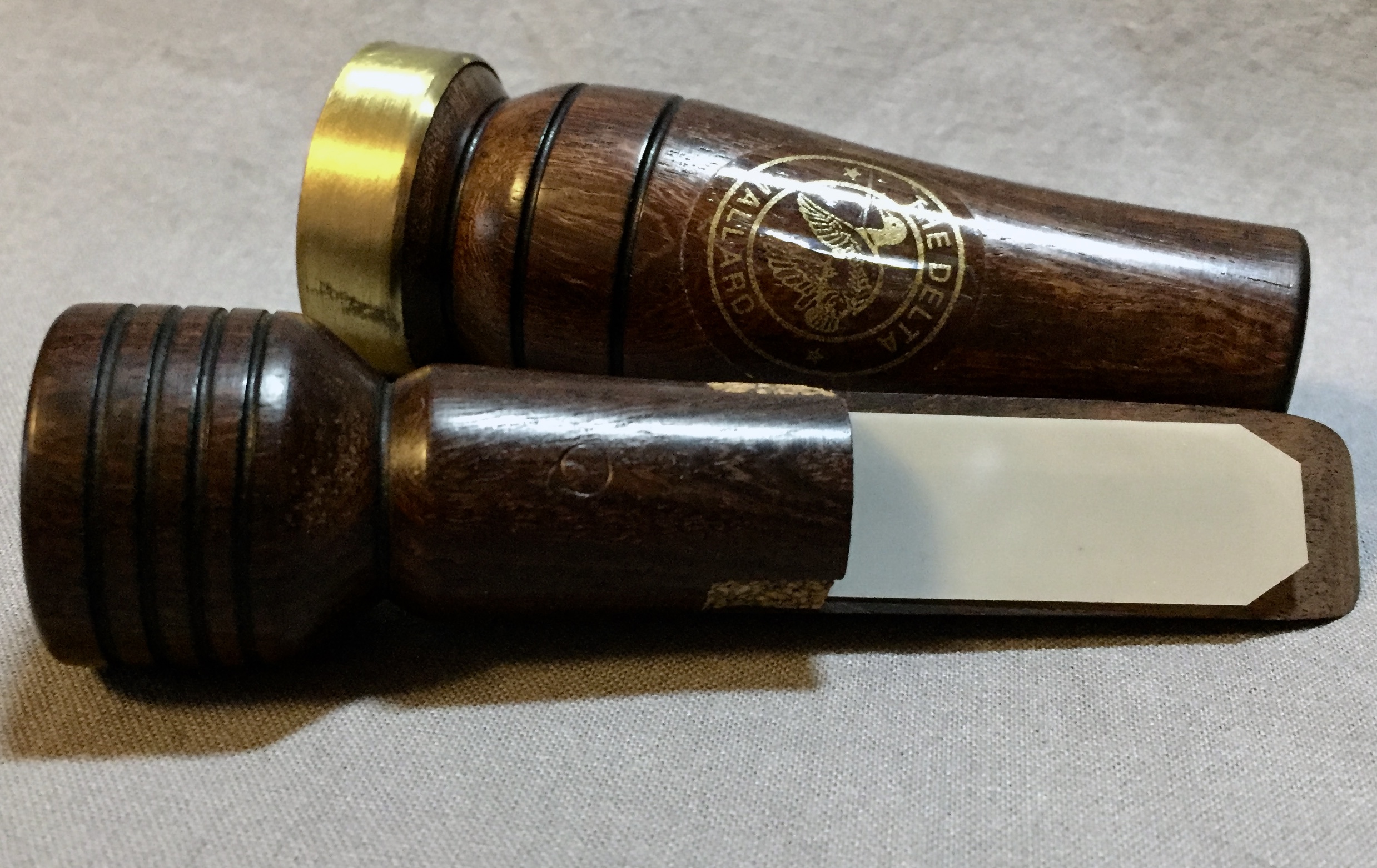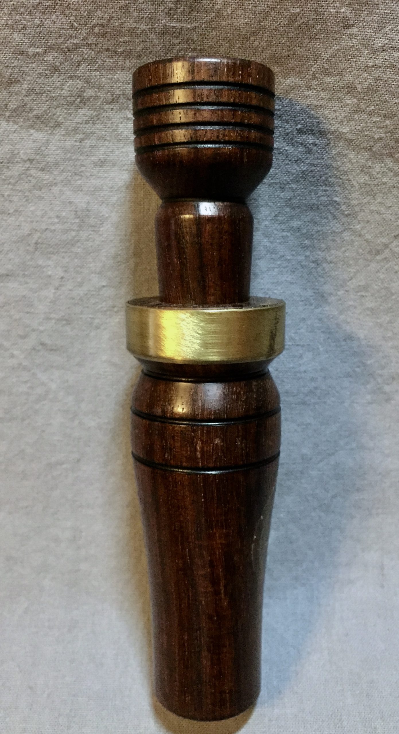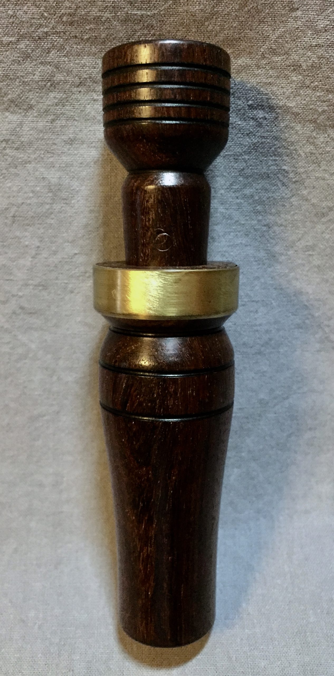 A nice rosewood call from Thurman McCann. The call is Arkansas style with a plastic reed.
