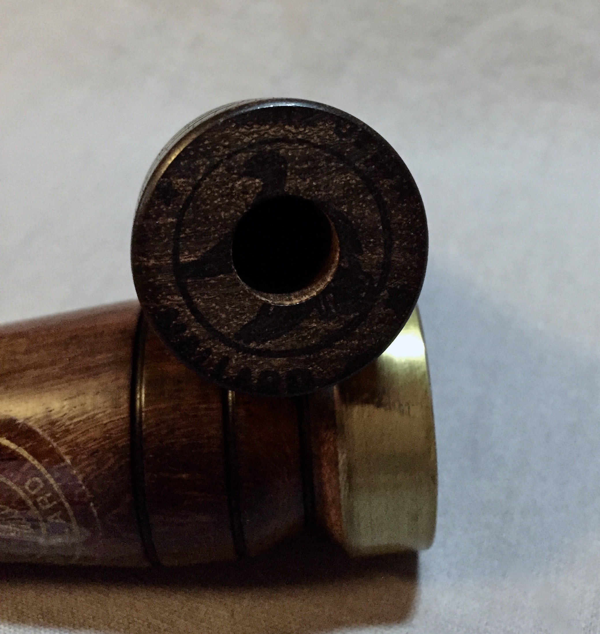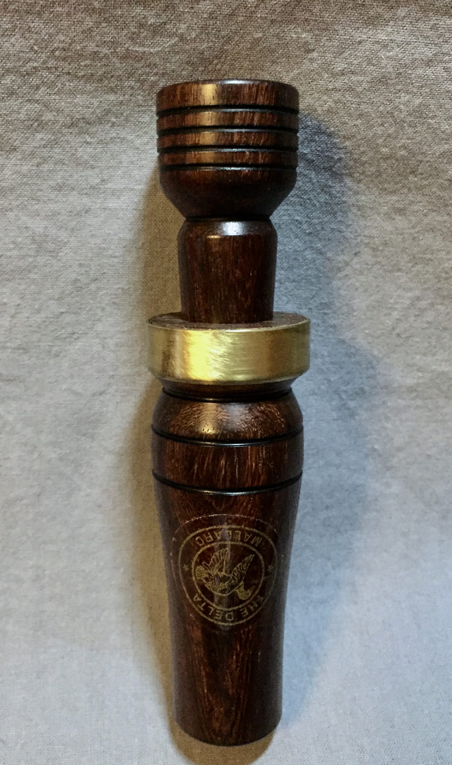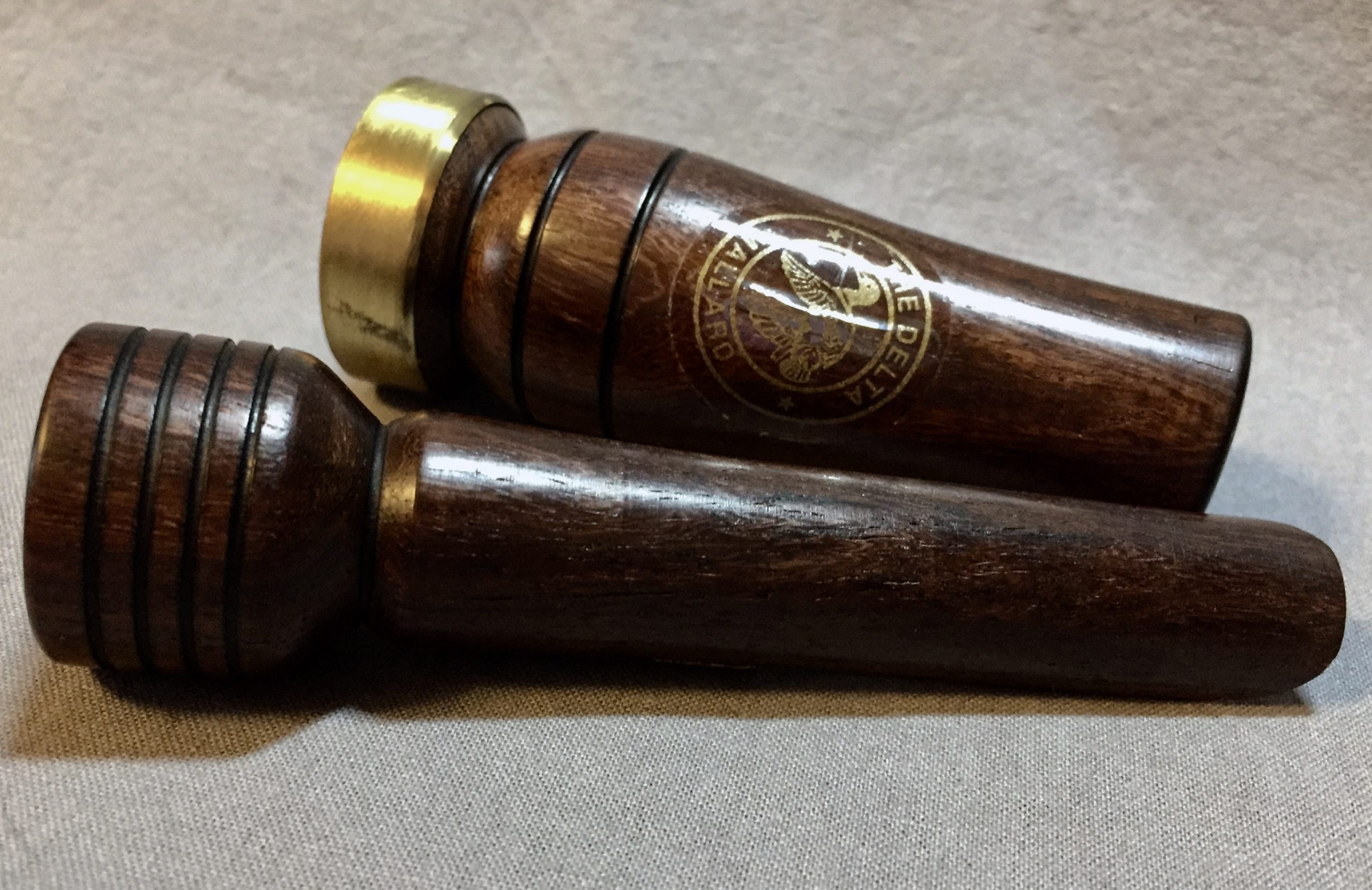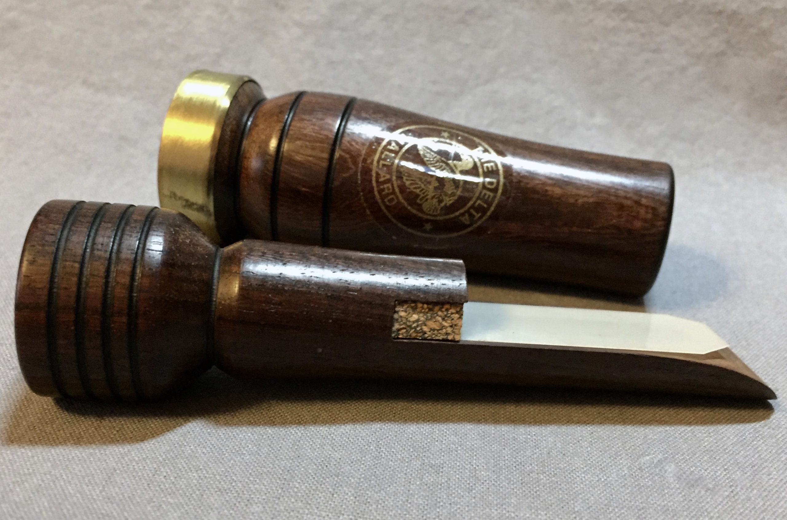 A nice rosewood call from Thurman McCann. The call is Arkansas style with a plastic reed.
