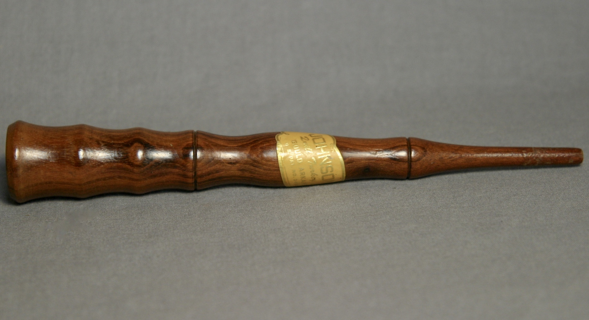 On gold label: Johnson’s Quill Turkey Call, Gould, Arkansas, U.S. Pat. No. 3419996