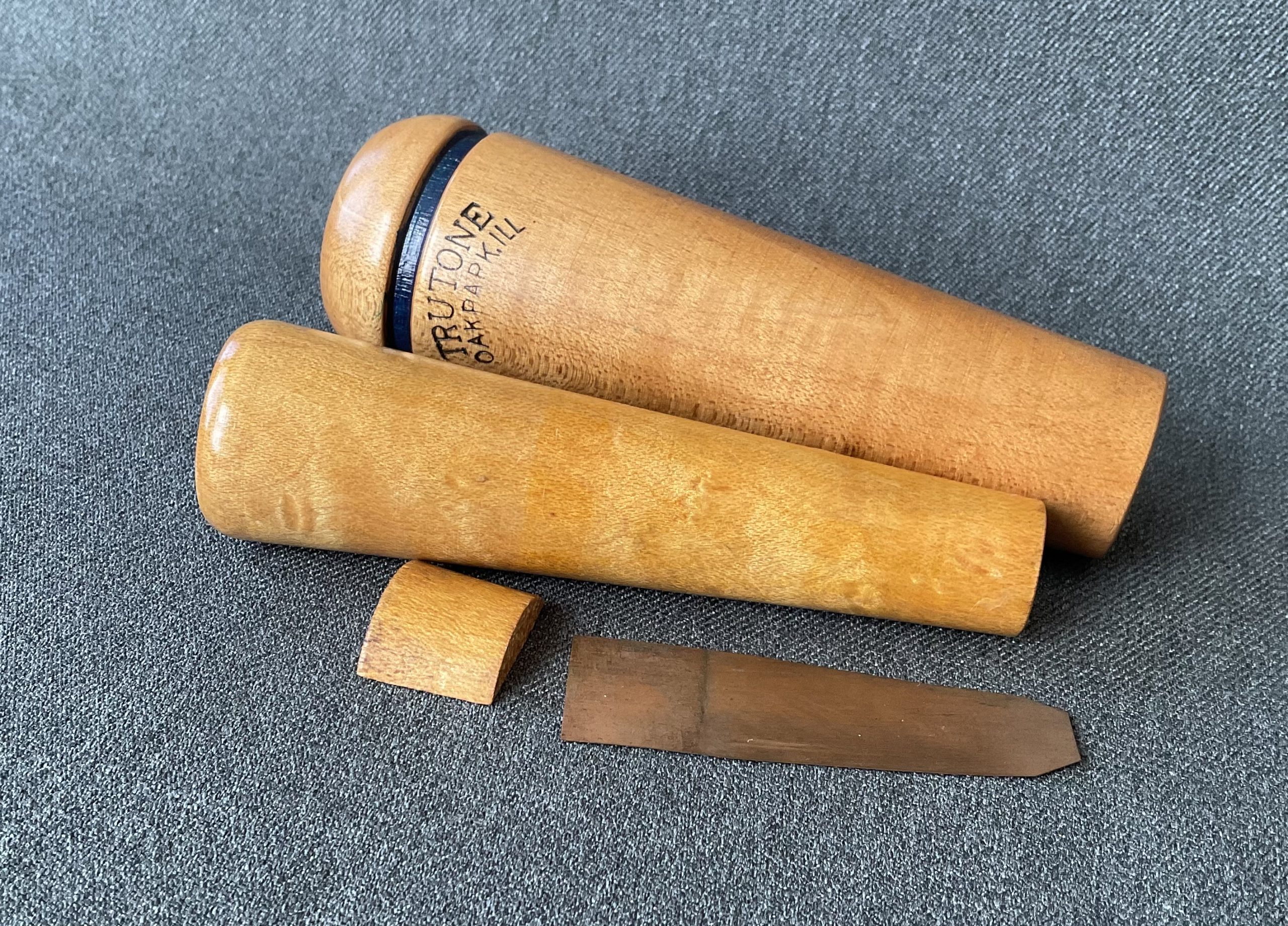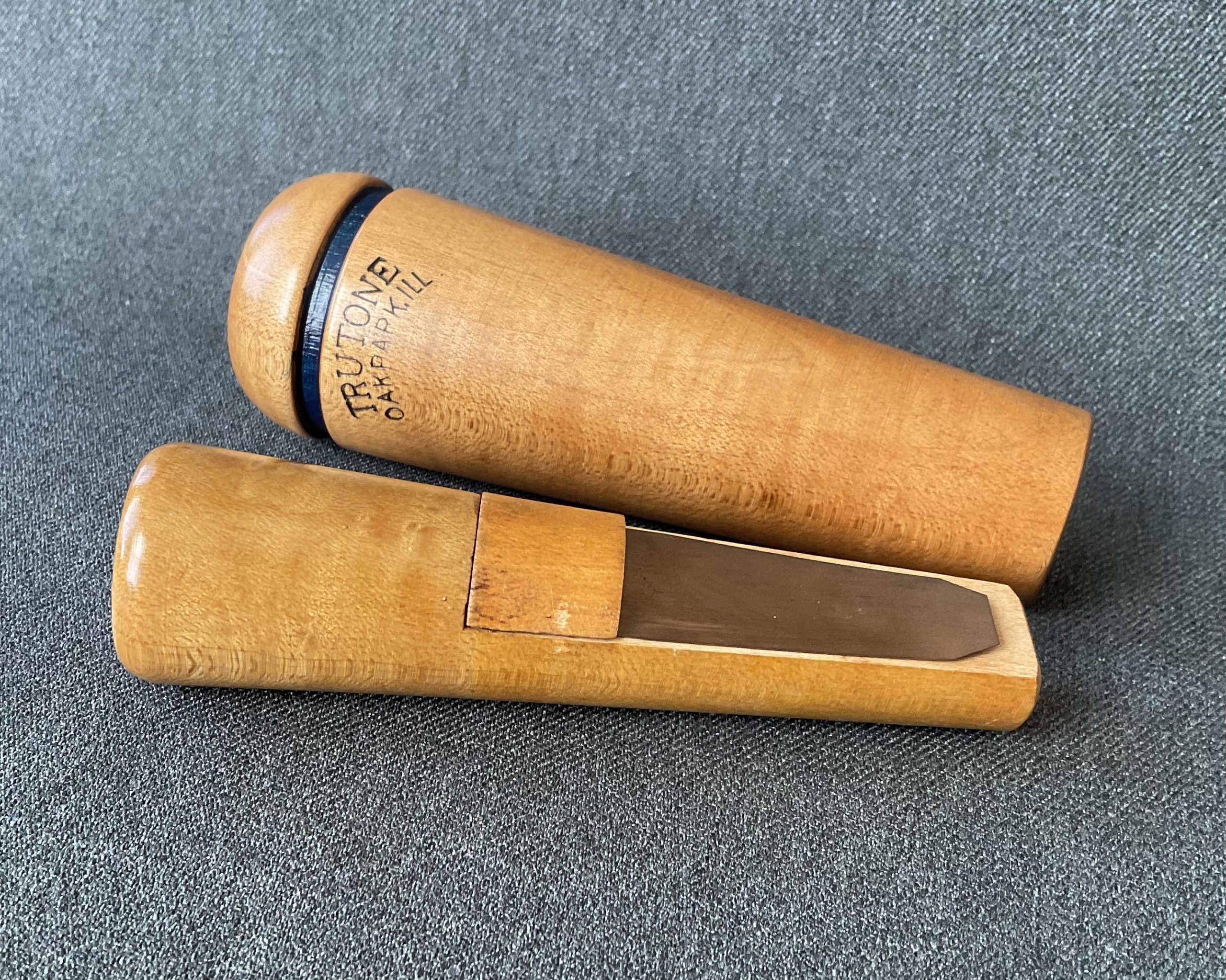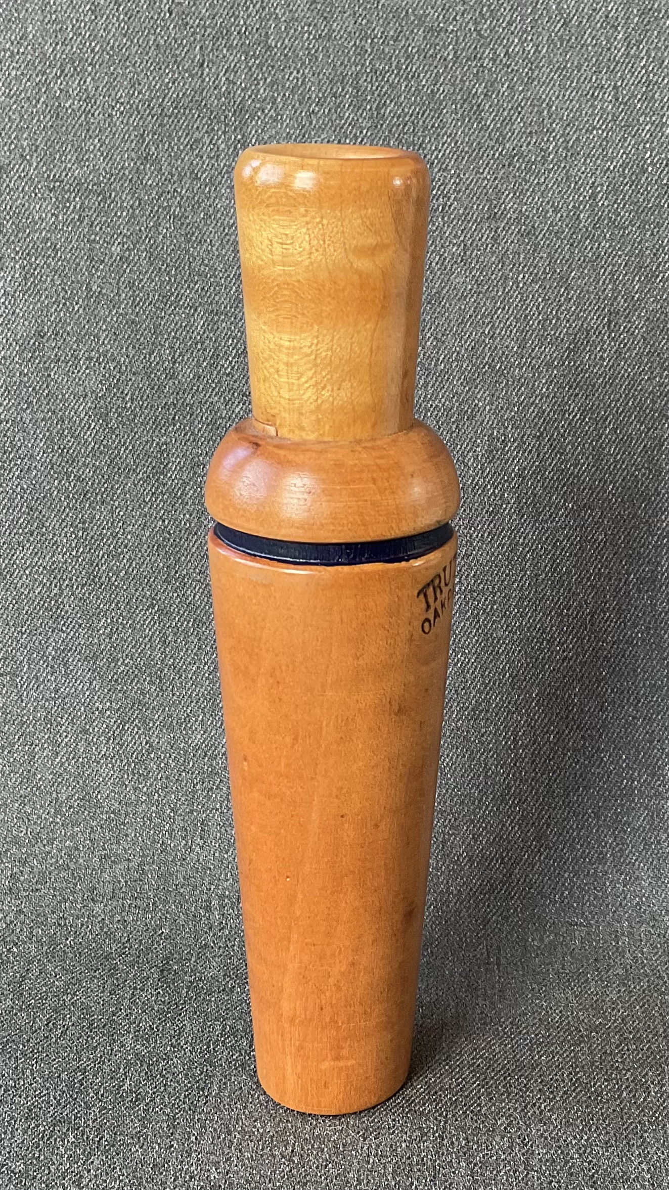 A very nice, rare Reelfoot style TruTone call. The call has a burled walnut stopper and has a black lanyard ring.