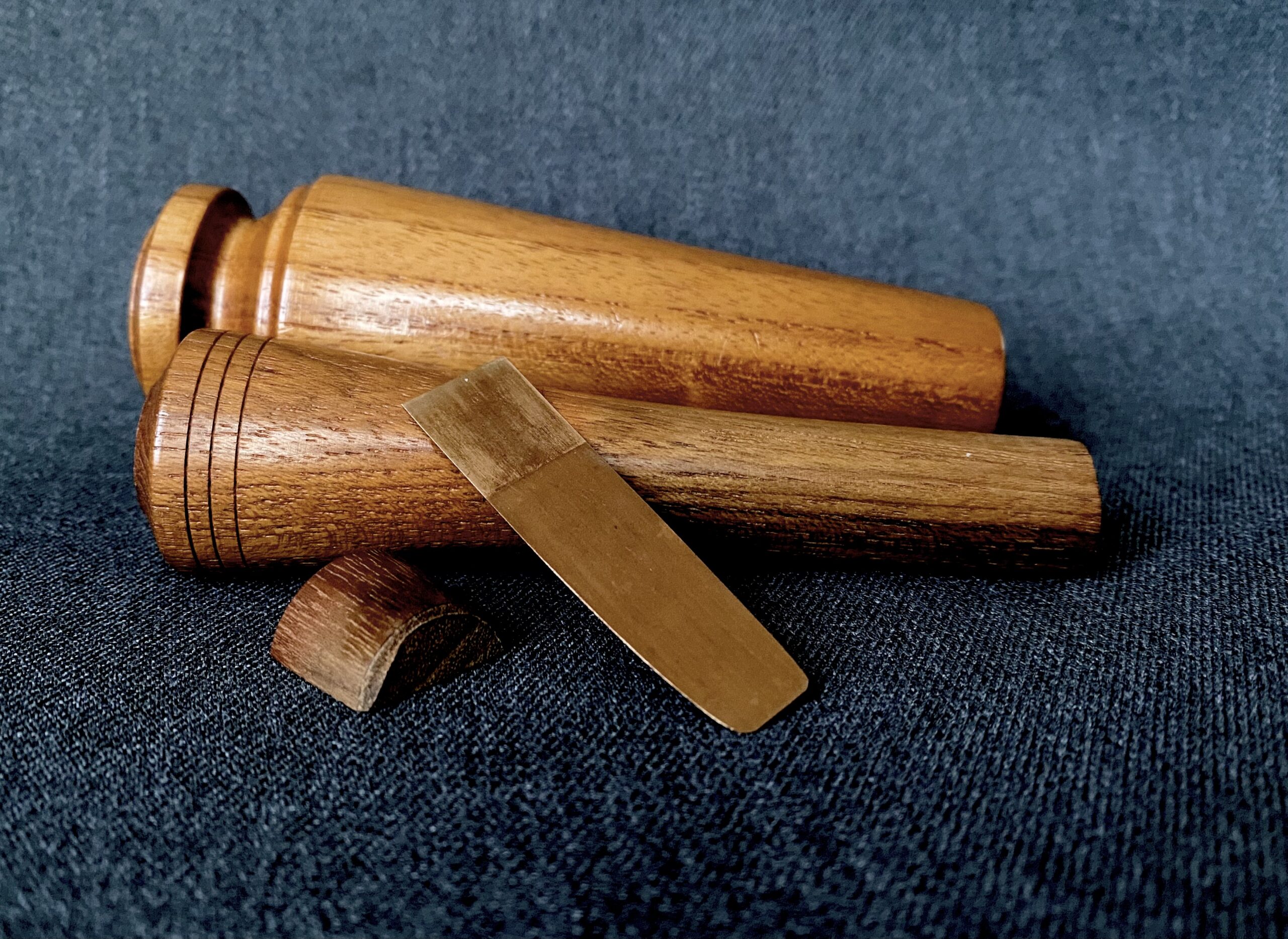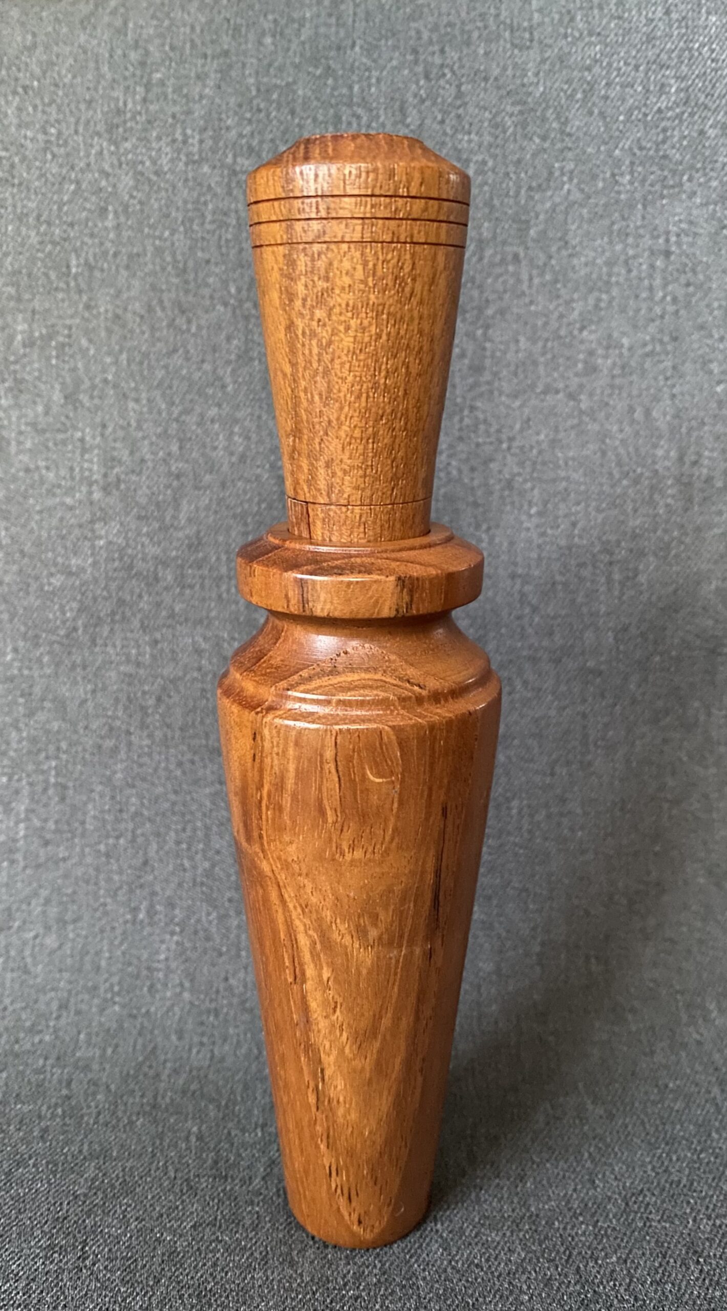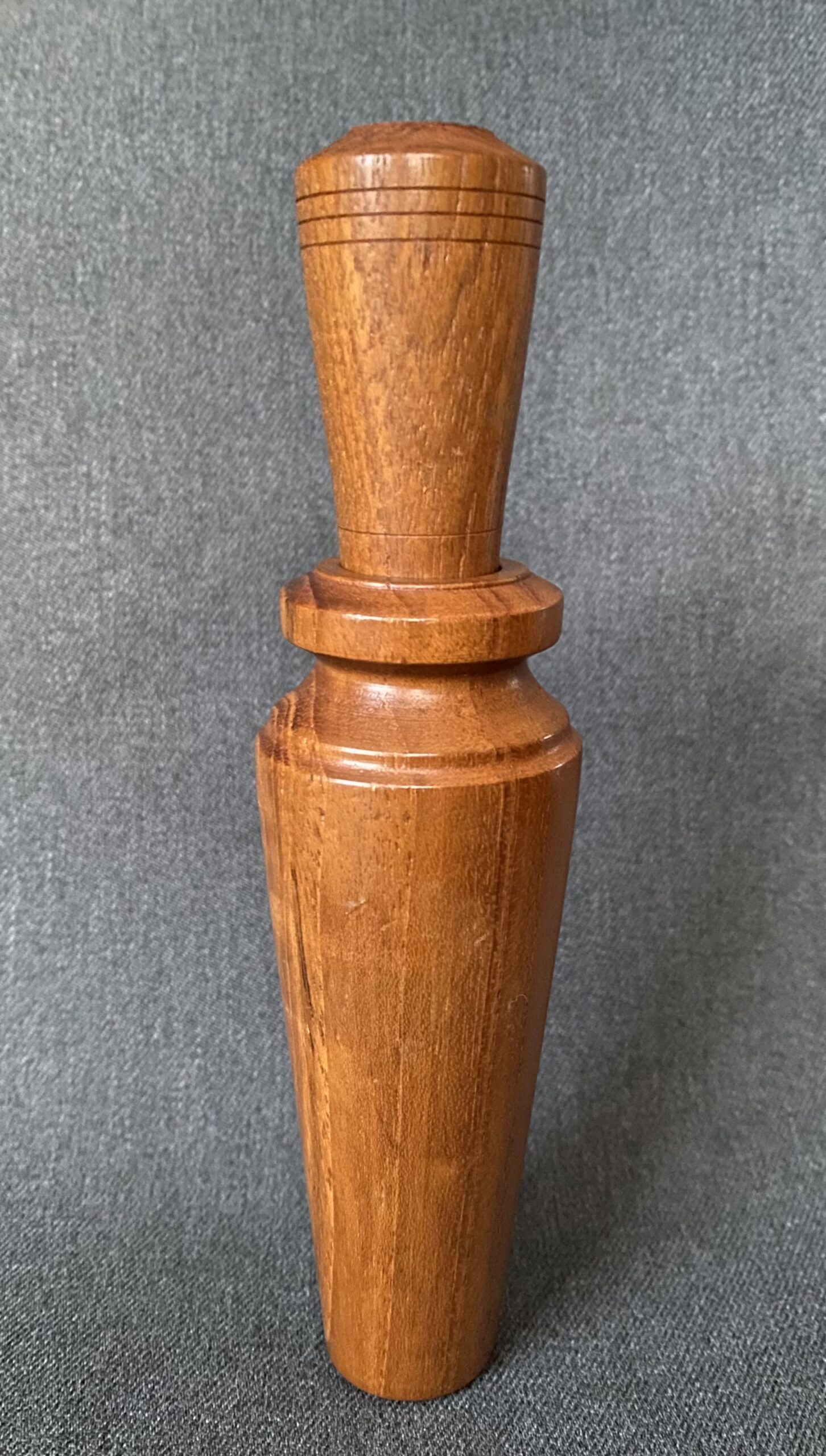 This is a nice call from Perry Wade . The call is Arkansas style with a black plastic reed.